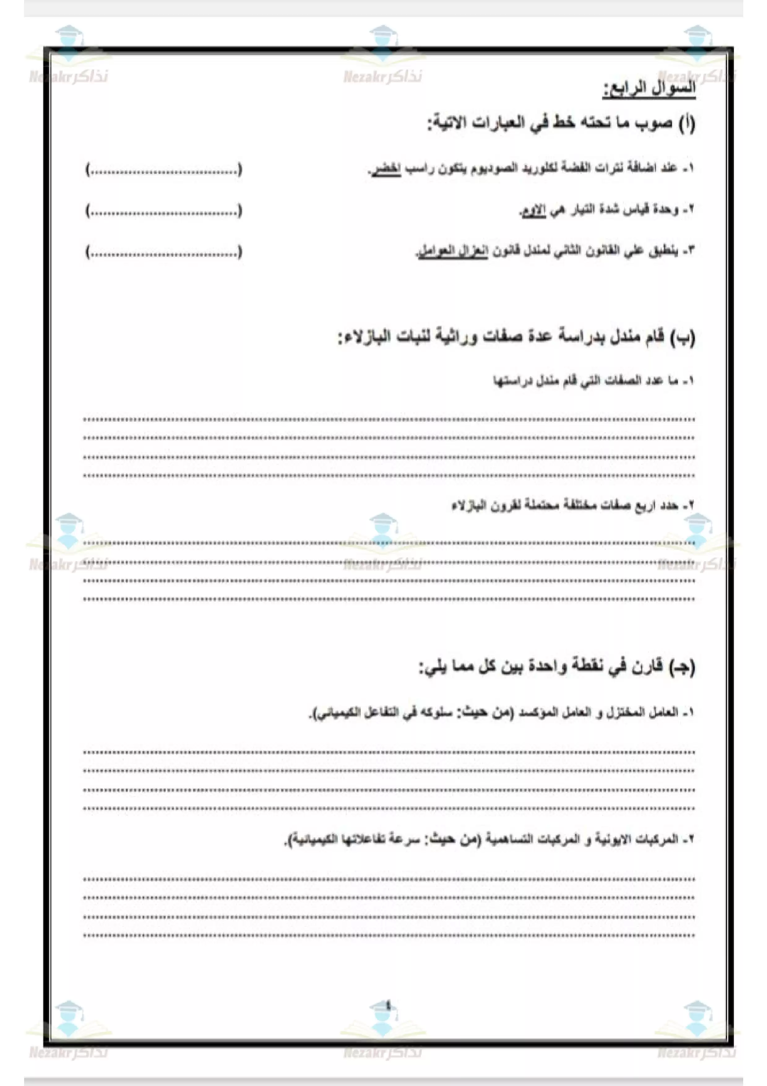 صفحة 4 من 4 صفحة من ملف: نموذج اختبار بوكلت استرشادي في العلوم للصف الثالث الاعدادي محافظة الجيزة ترم ثاني 2025 - Nezakr