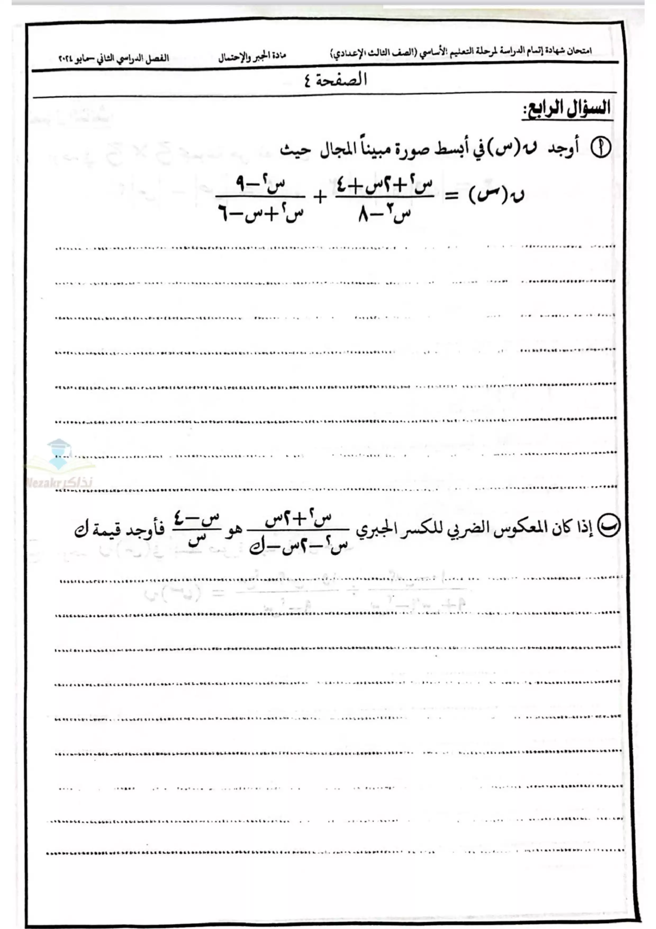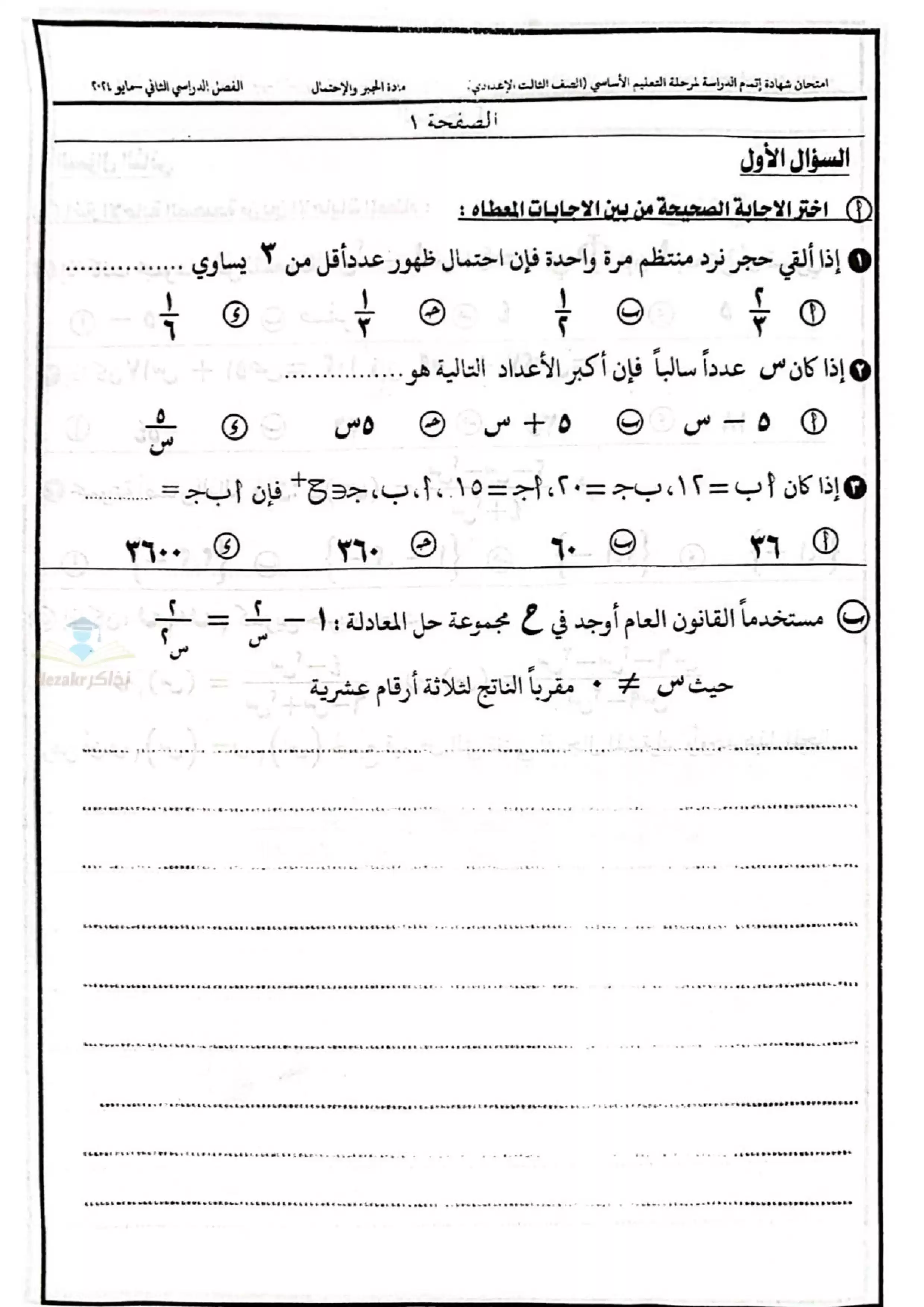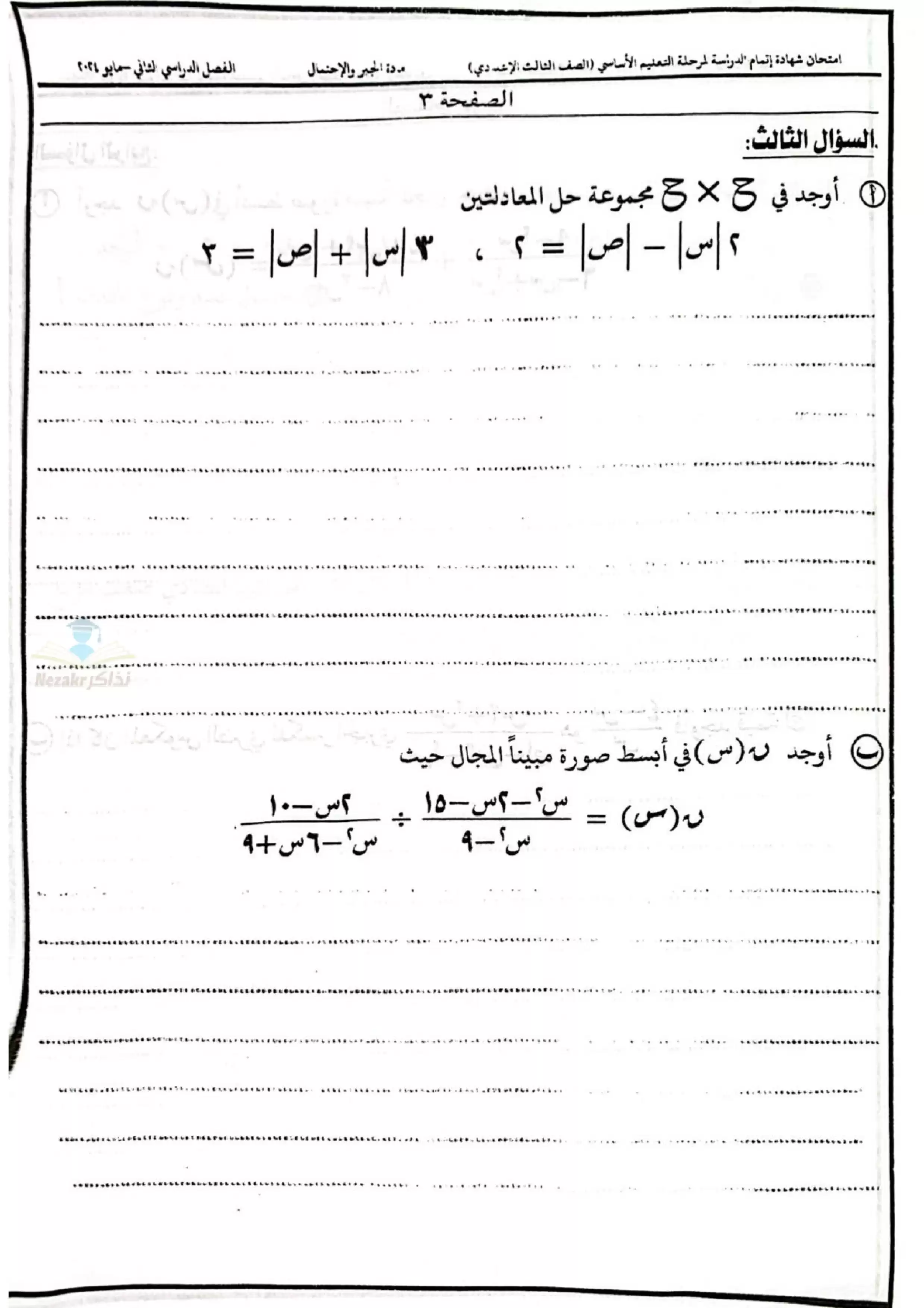 | بيانات الملف: (نموذج اختبار بوكلت استرشادي في الجبر للصف الثالث الاعدادي محافظة الدقهلية ترم ثاني 2025 - Nezakr) | |