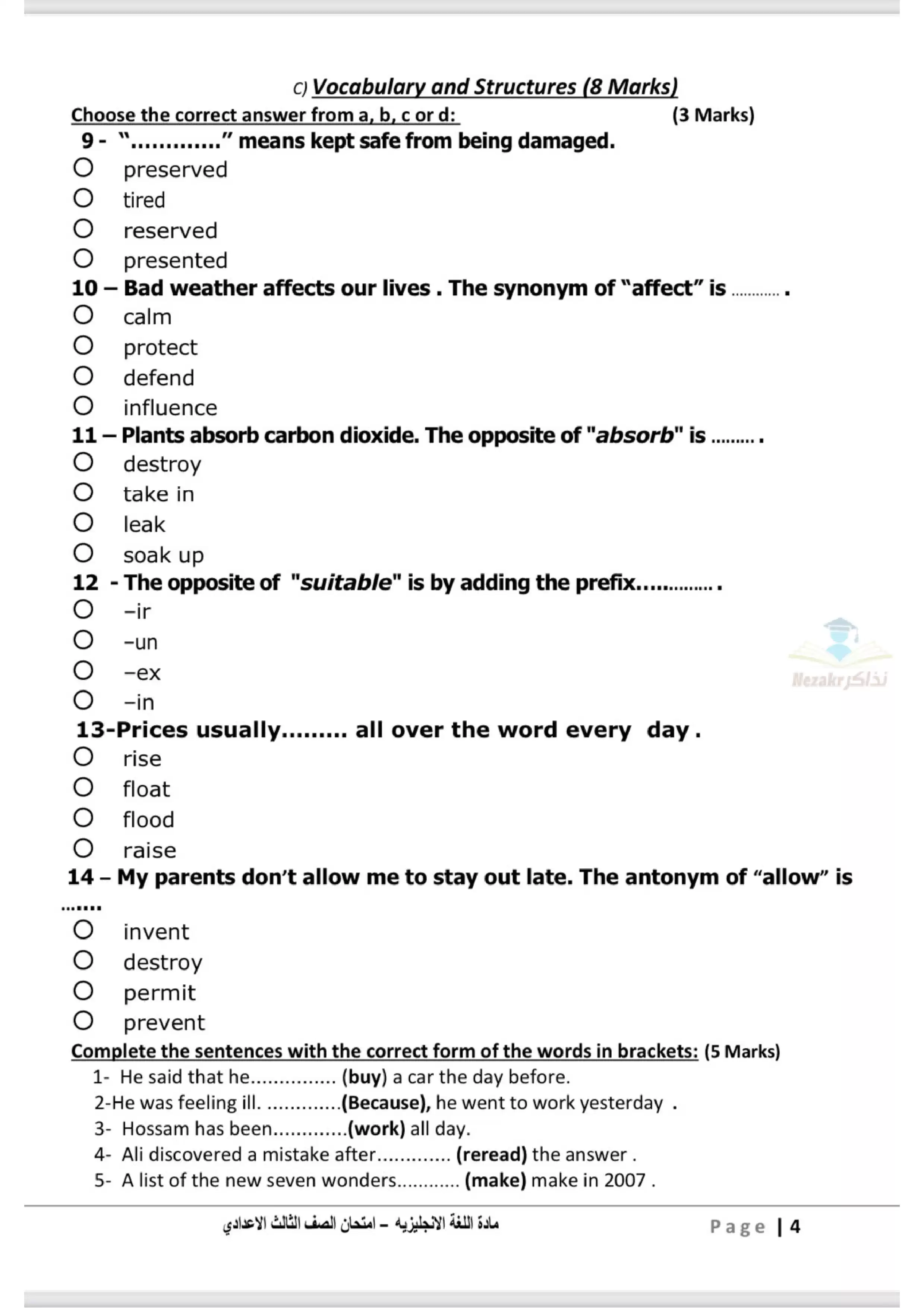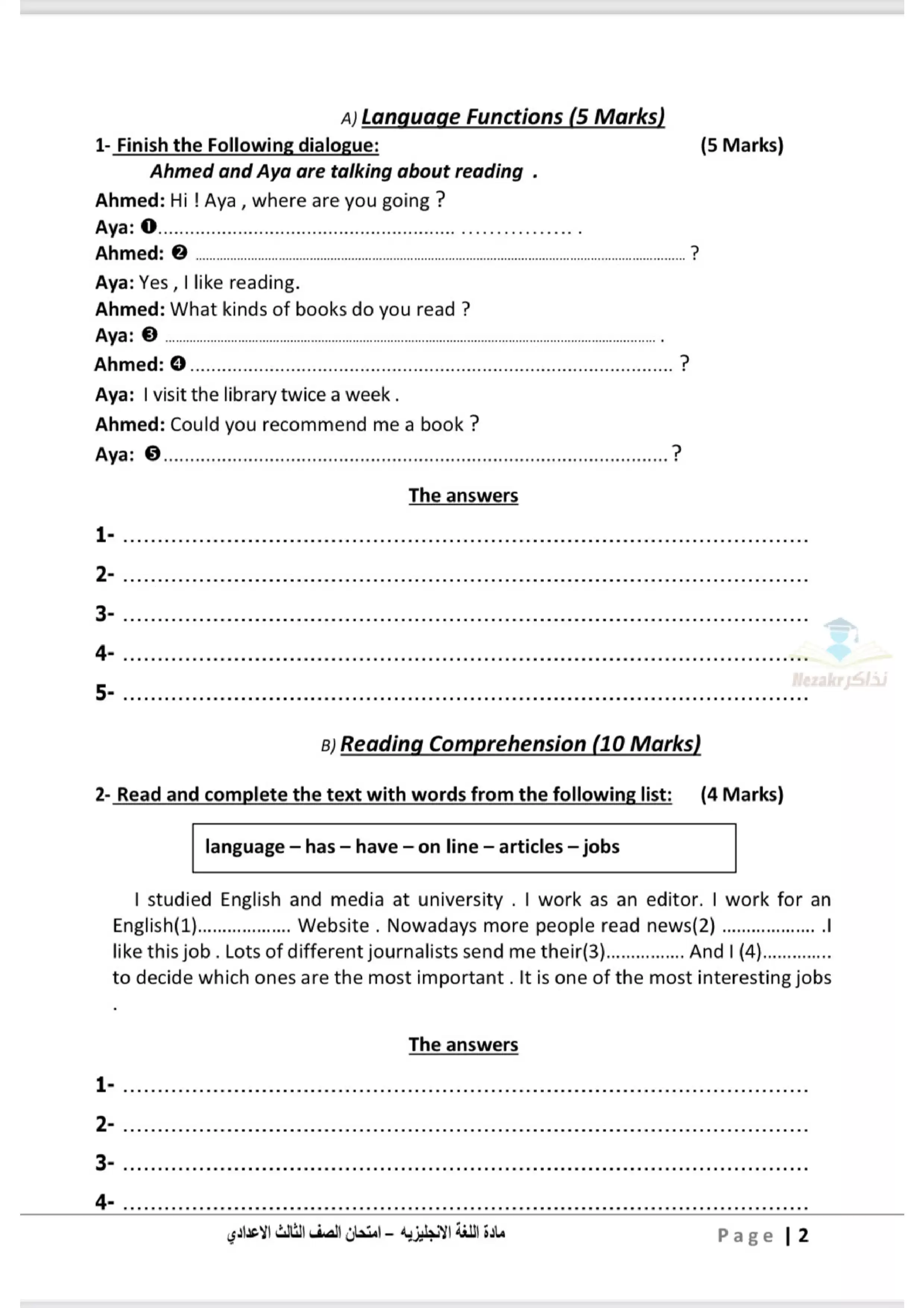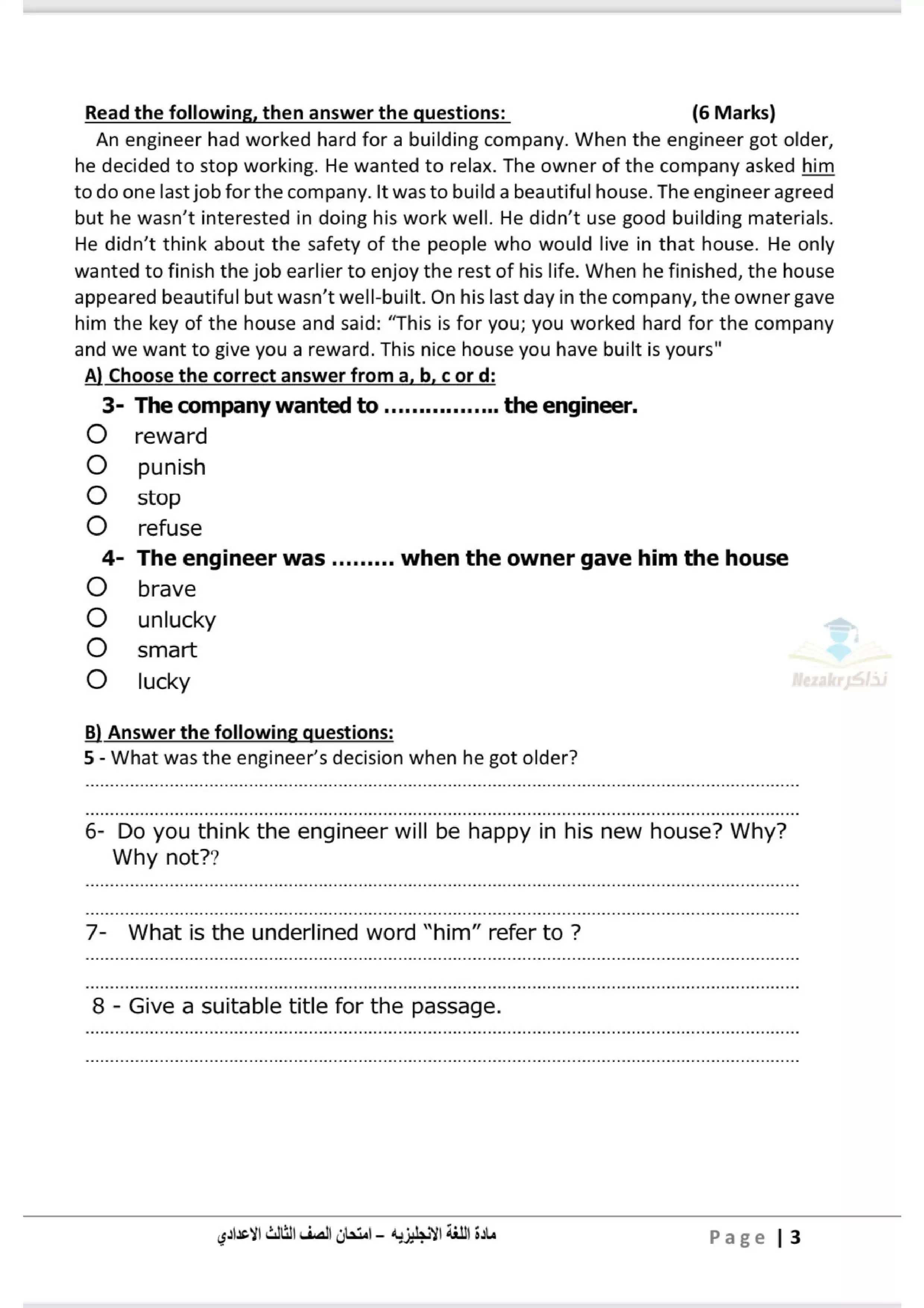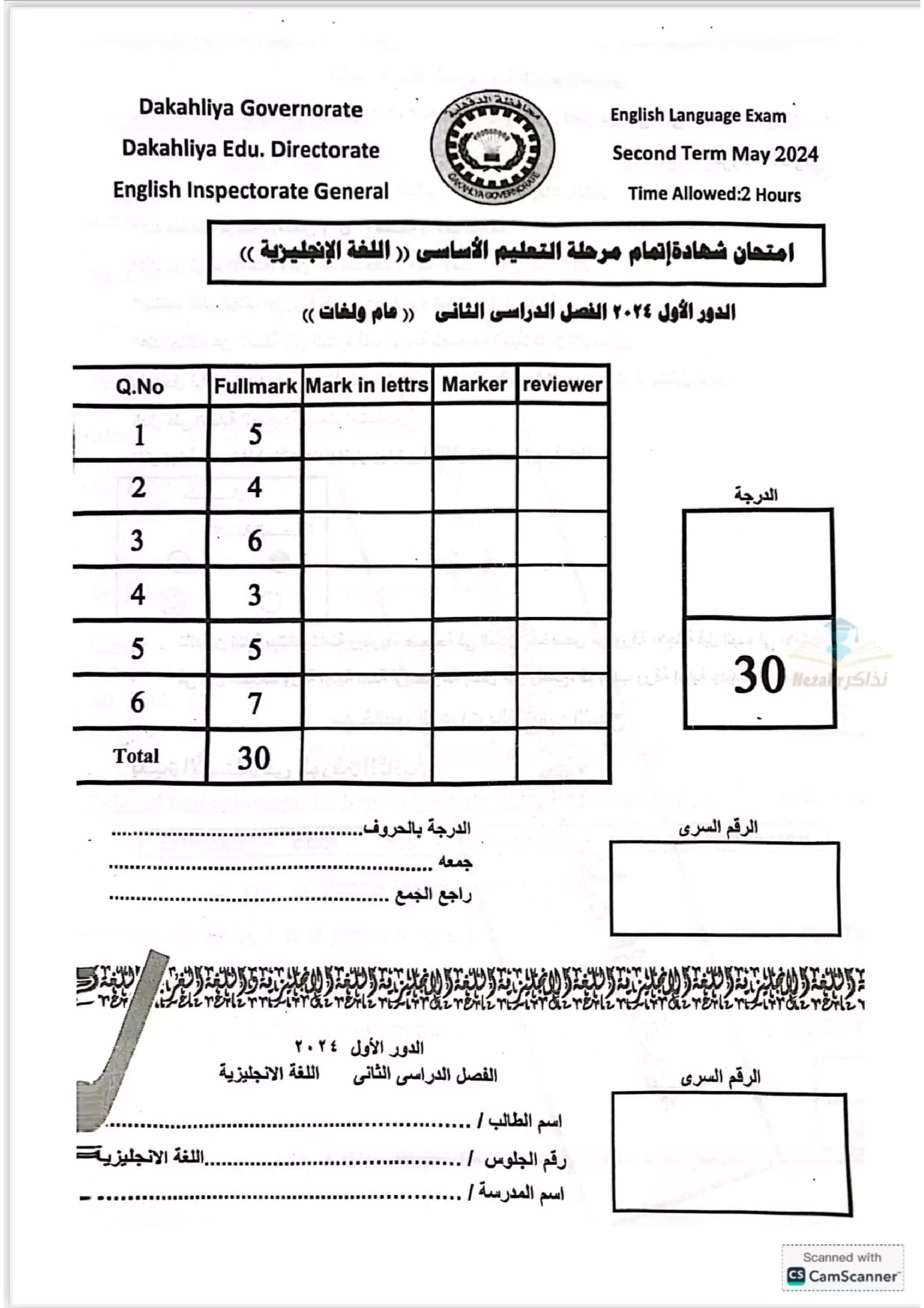 | بيانات الملف: (نموذج اختبار بوكلت استرشادي في اللغة الإنجليزية English للصف الثالث الاعدادي محافظة الدقهلية ترم ثاني 2025 - Nezakr) | |