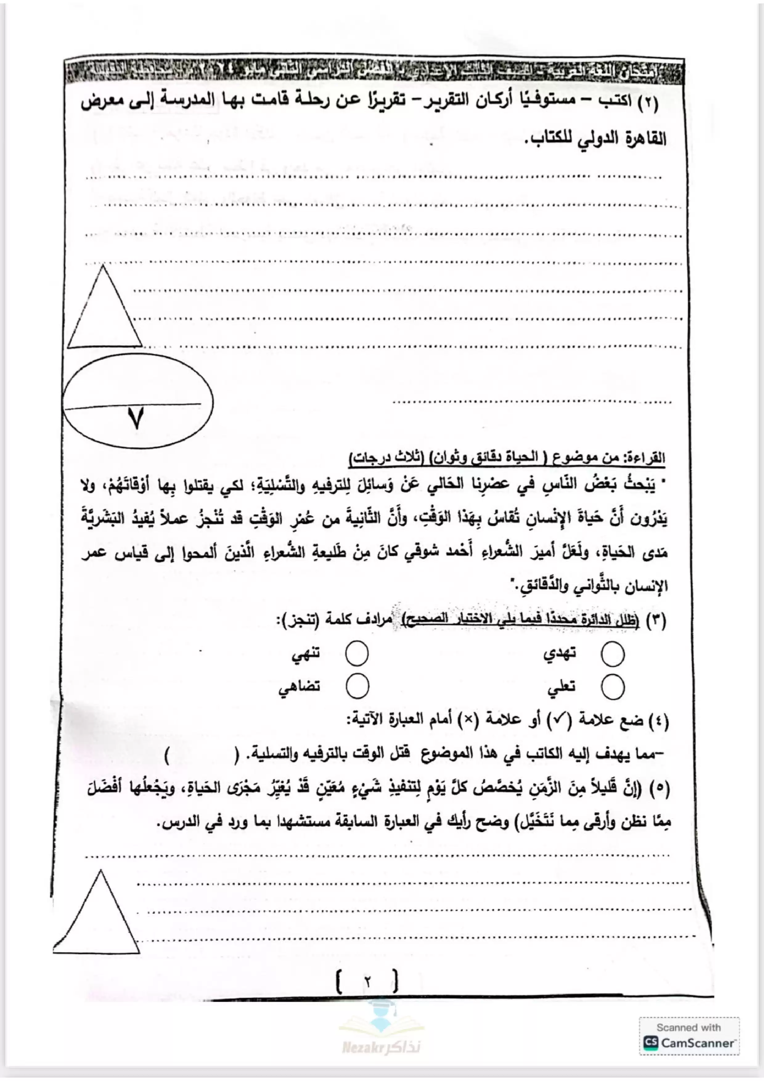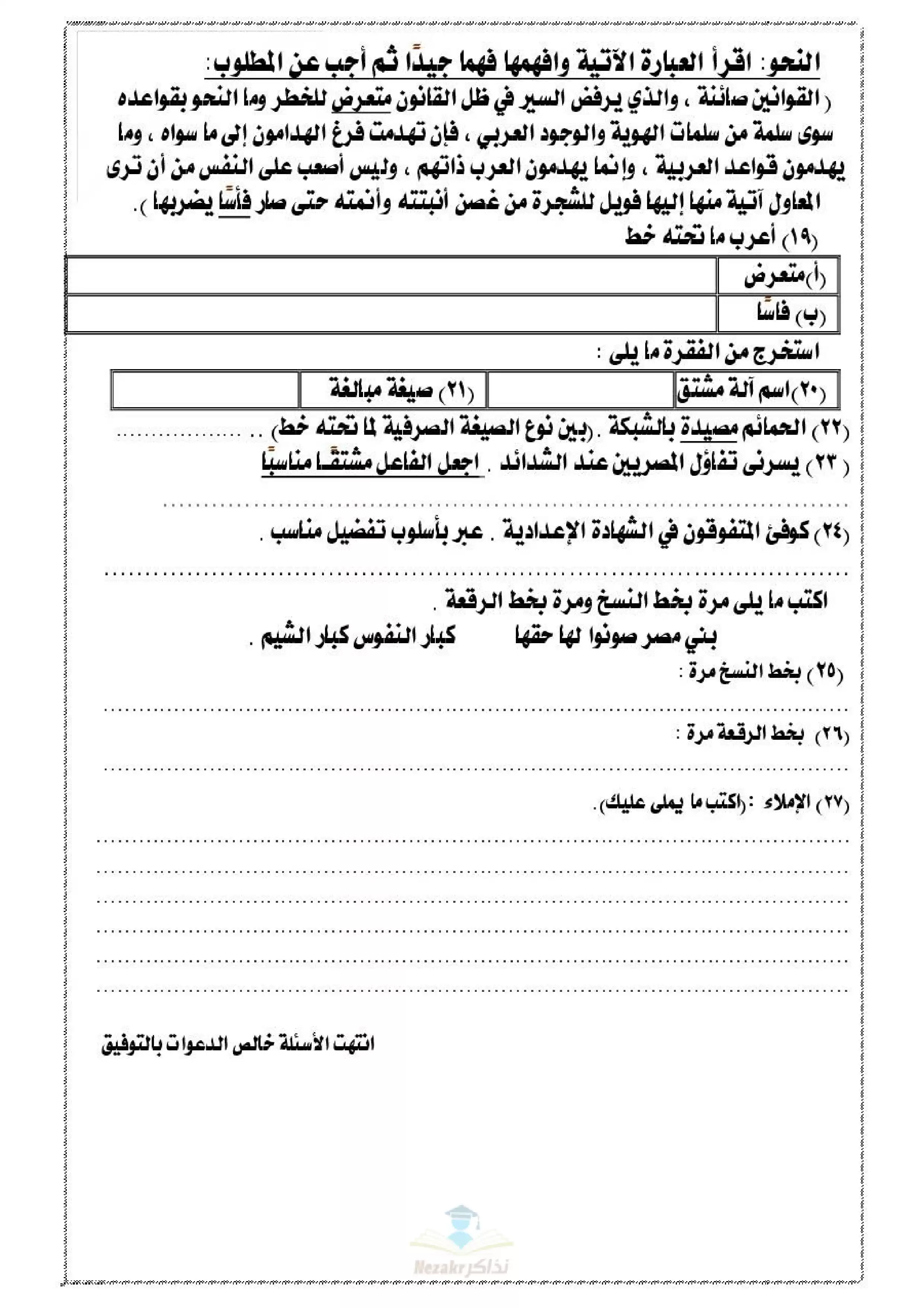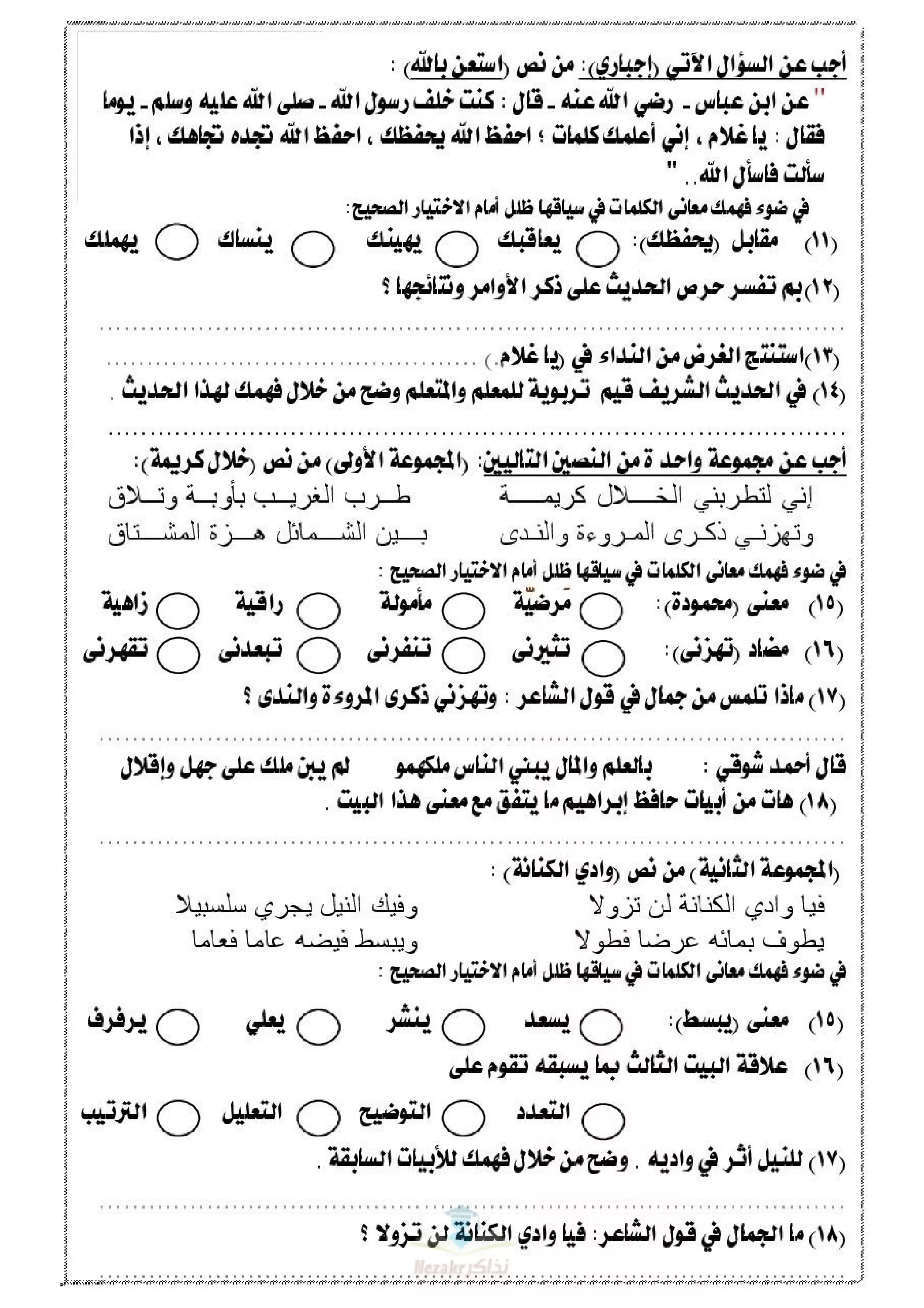| بيانات الملف: (نموذج اختبار بوكلت استرشادي في العربي للصف الثالث الاعدادي محافظة الدقهلية ترم ثاني 2025 - Nezakr) | |