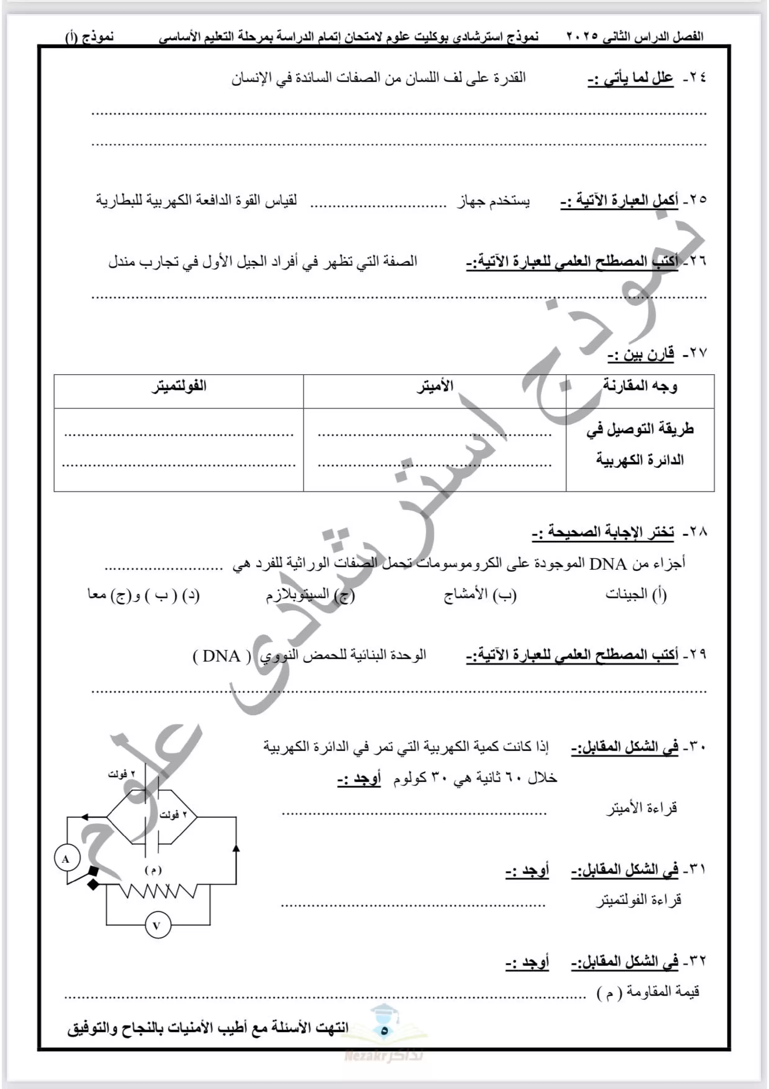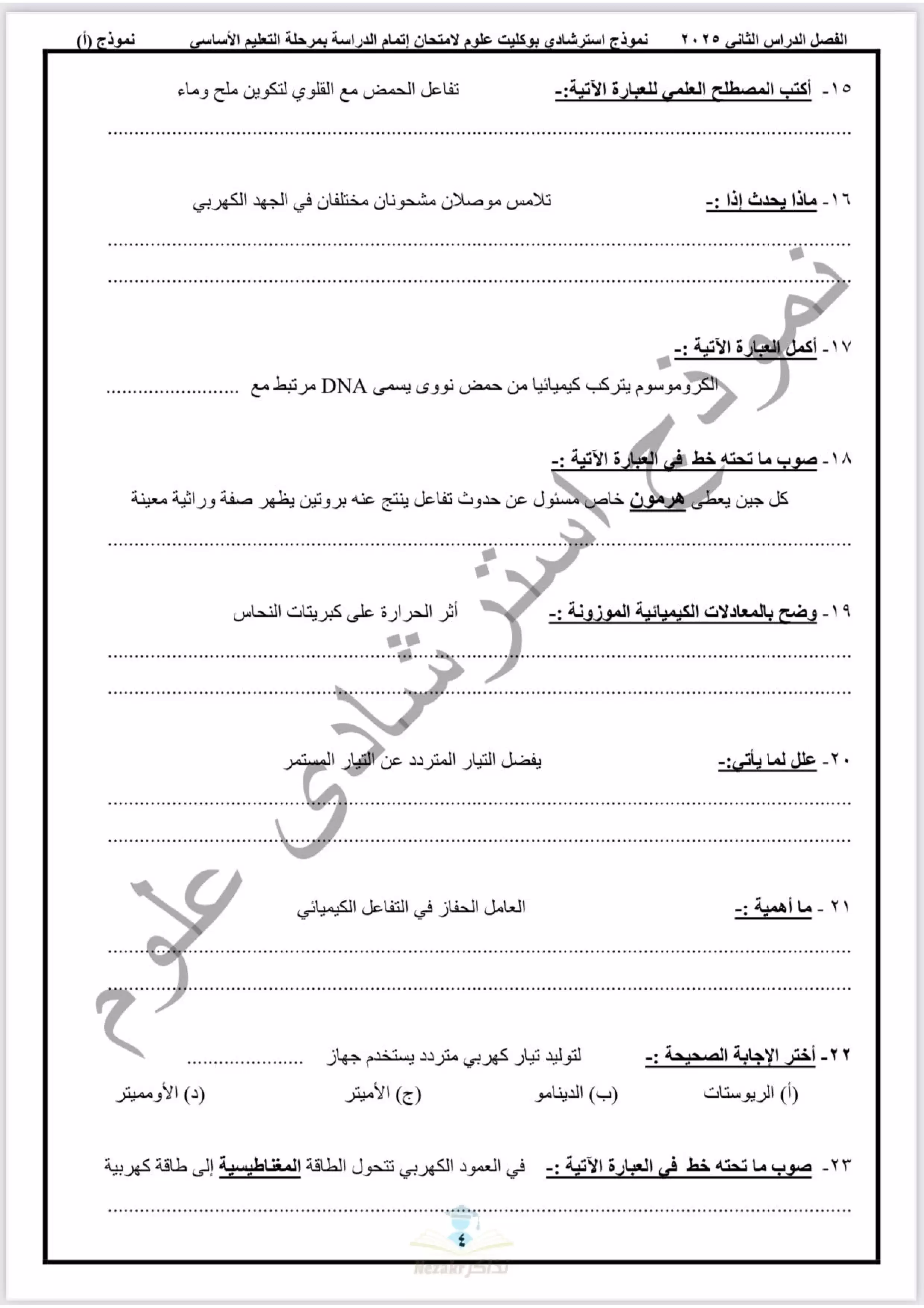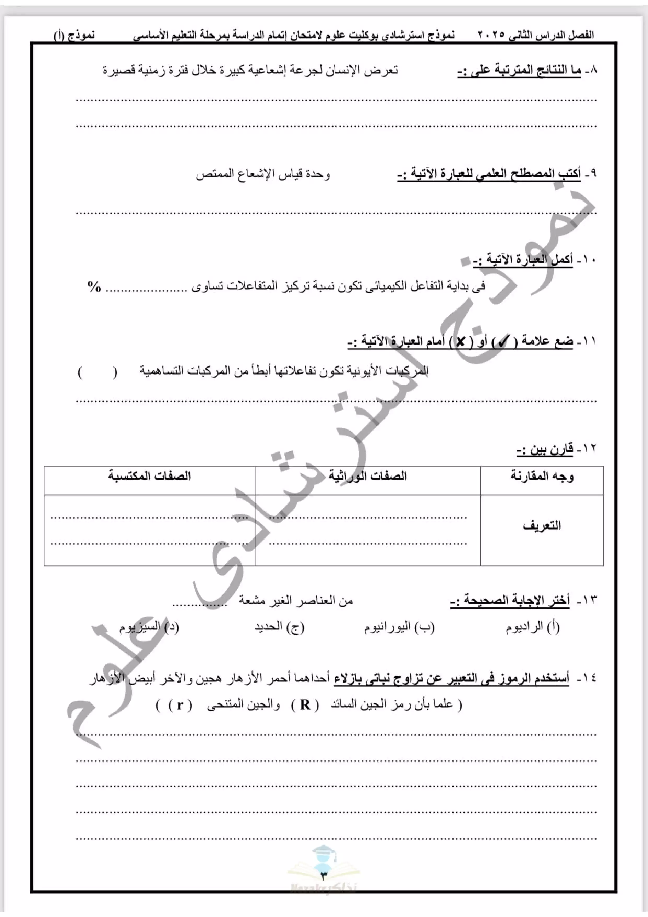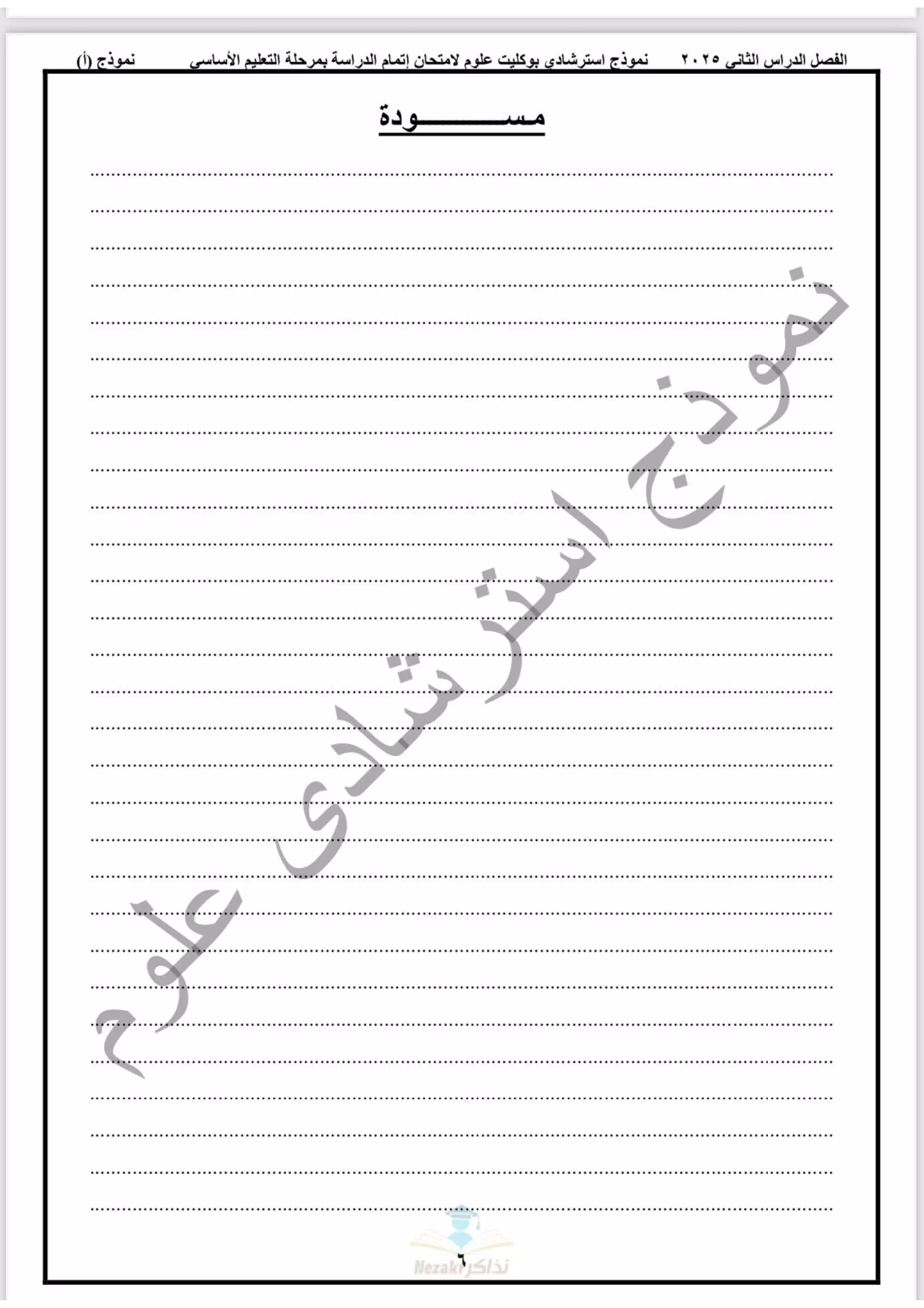 | بيانات الملف: (نموذج اختبار بوكلت استرشادي في العلوم للصف الثالث الاعدادي محافظة السويس ترم ثاني 2025 - Nezakr) | |