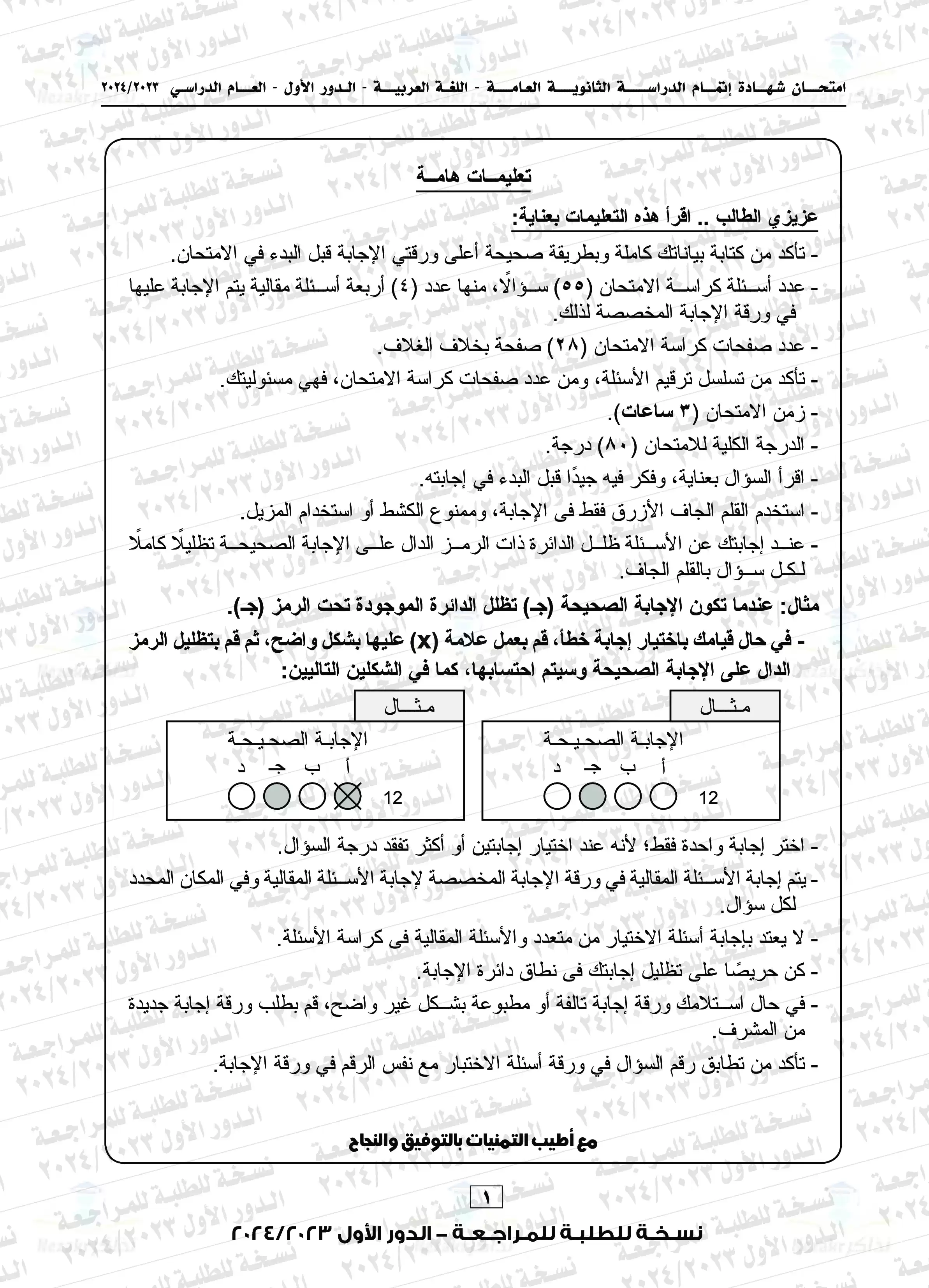 يحتوي الملف المرفق على نموذج امتحان الوزارة الرسمي في مادة اللغة العربية للثانوية العامة الدور الأول 2024، من موقع وزارة التربية والتعليم، ويضم الملف كافة الأسئلة الواردة في امتحان عربي الثانوية العامة الدور الأول 2024، كما يضم نموذج إجابة رسمي من وزارة التربية والتعليم لأسئلة امتحان اللغة العربية الدور الأول 2024، ليتمكن الطلاب من مراجعة إجاباتهم ومعرفة الأخطاء التي وقعوا فيها وتصويب هذه الأخطاء.