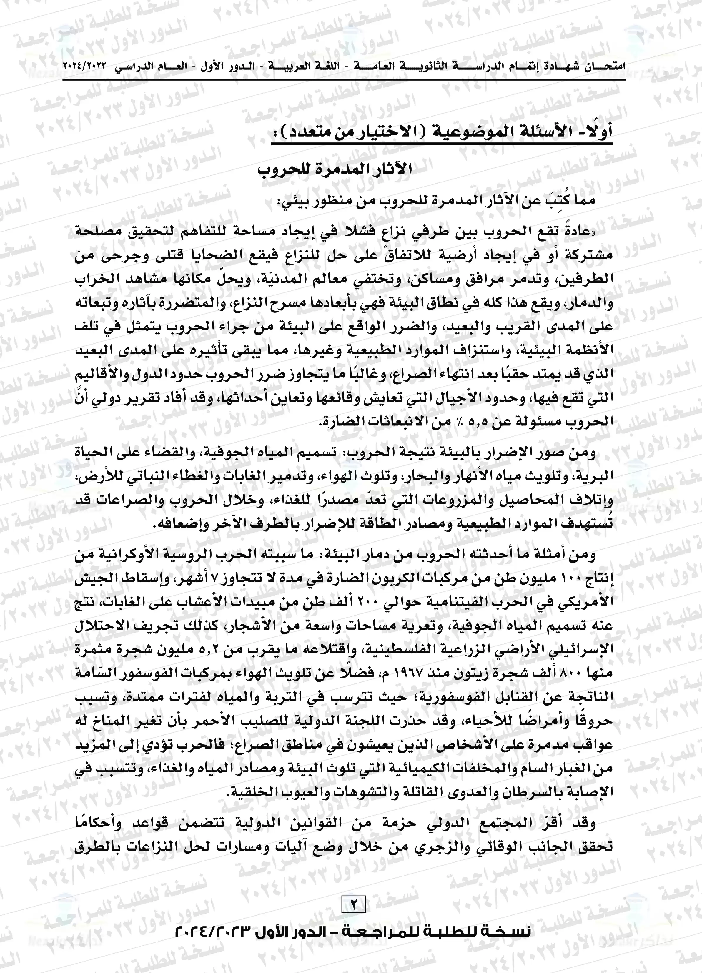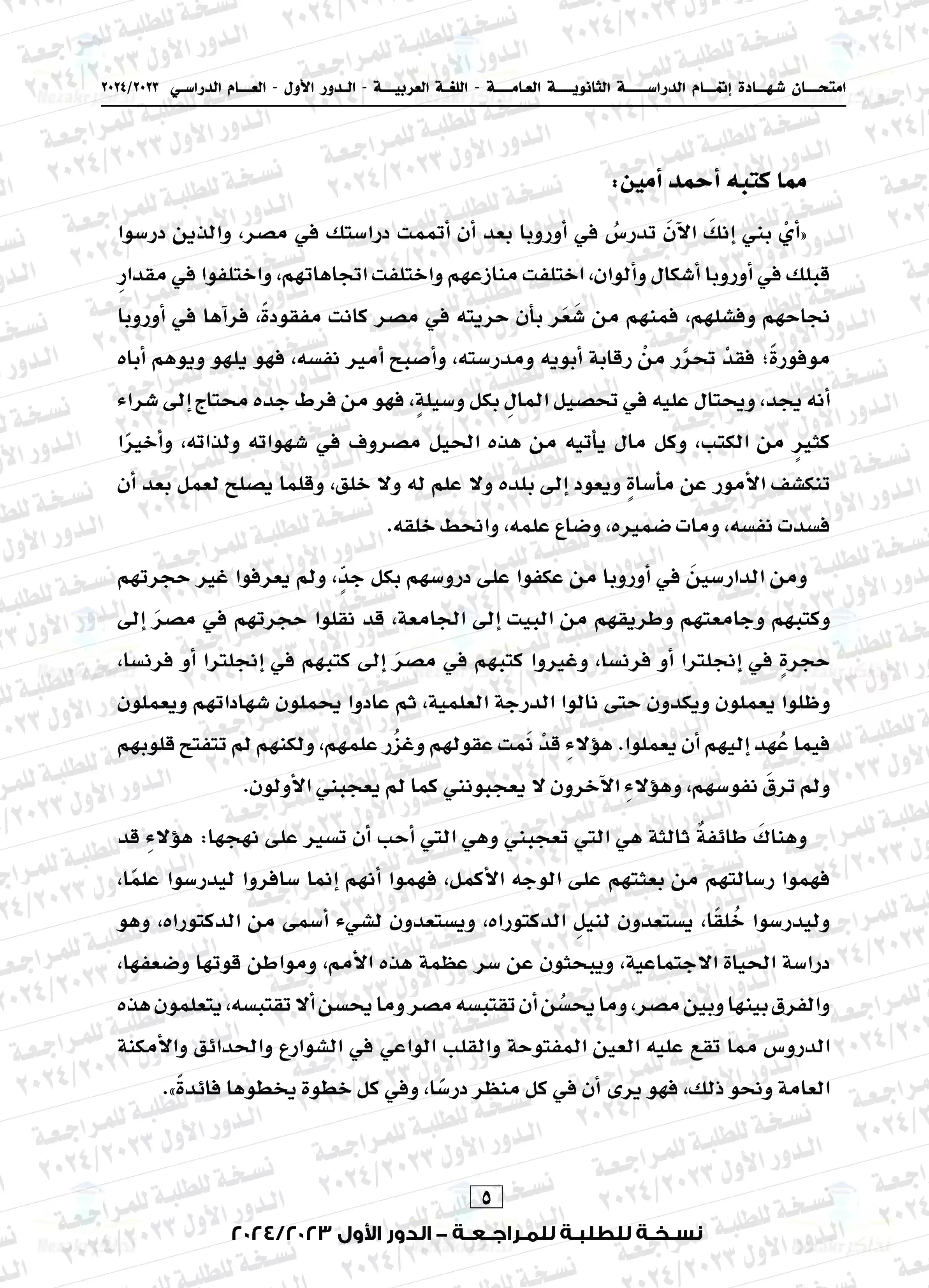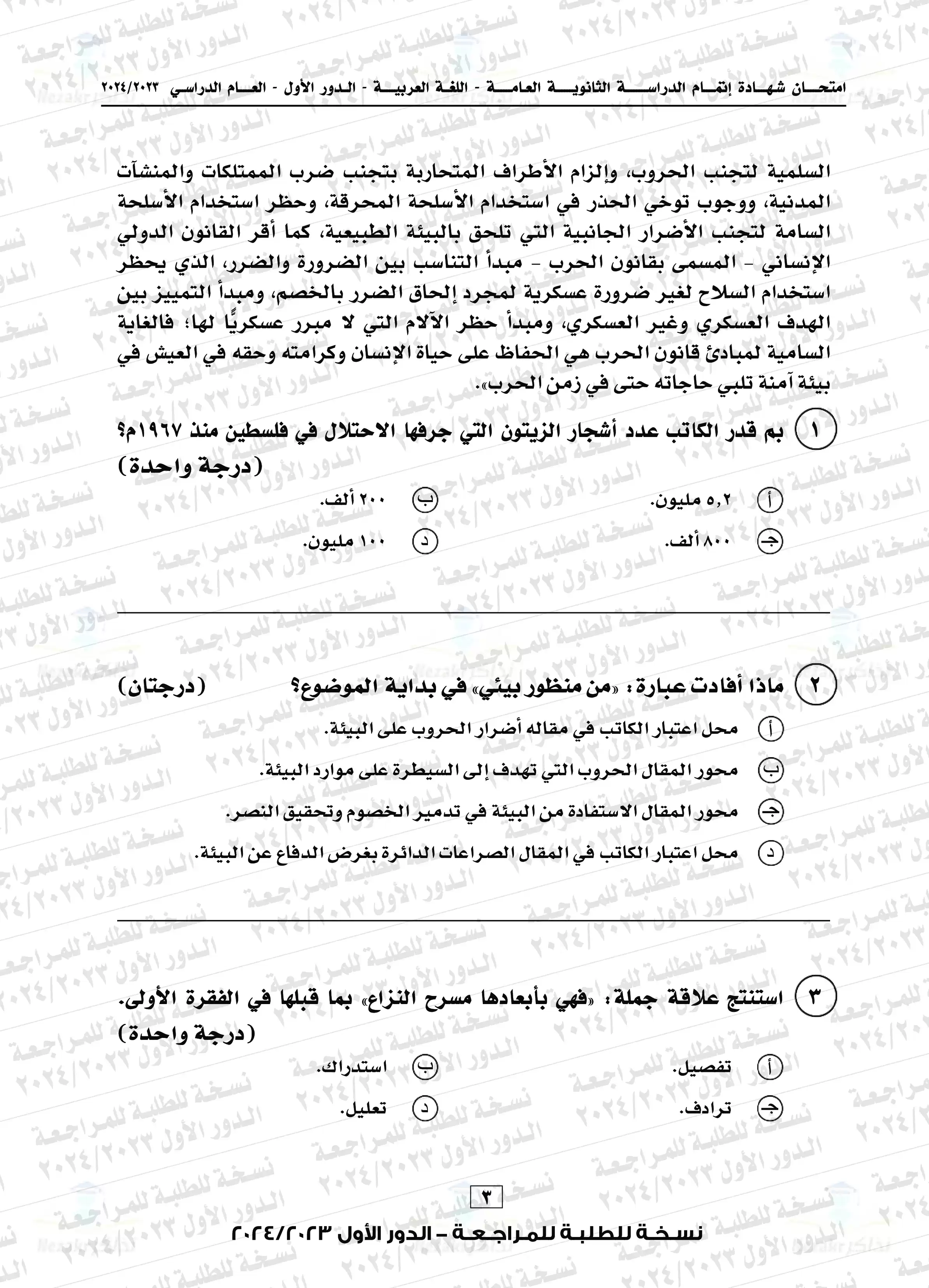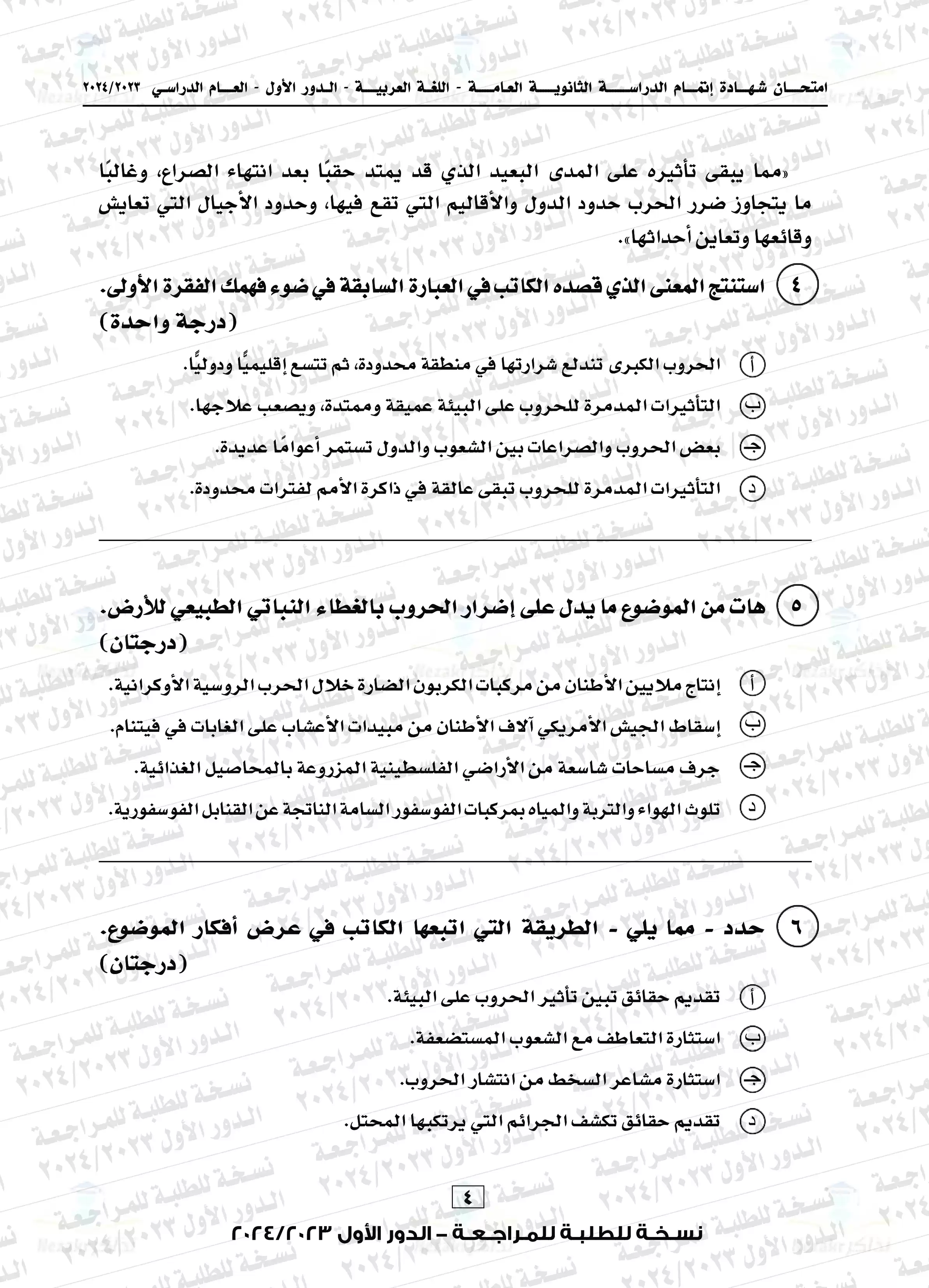 يتضمن المقال امتحان العربي الخاص بالشهادة الثانوية العامة المصرية للدور الأول للعام الدراسي 2023-2024م، وهو امتحان يتزايد معدل البحث عليه نظراً لما تضمنه من أفكار مميزة ورائعة أعجبت الطلاب والمعلمين ولكونه امتحان متزن ومميز، نضعه بين أيديكم بصيغة PDF وبجودة عالية ومميزة للتحميل مجاناً أو للتصفح أو الطباعة.