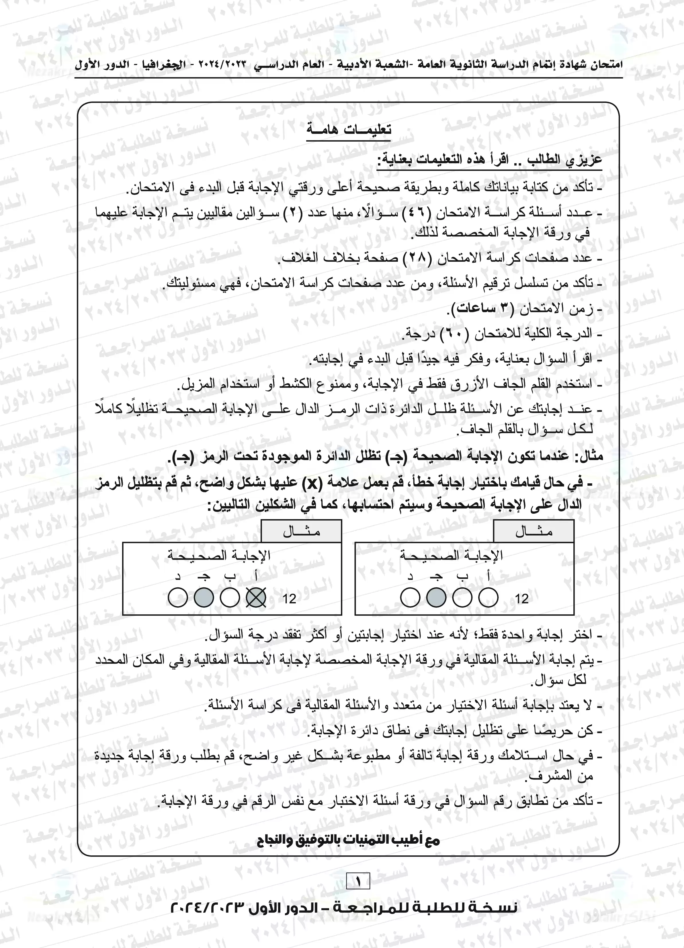 يتضمن المقال امتحان الجغرافيا الخاص بالشهادة الثانوية العامة المصرية للدور الأول للعام الدراسي 2023-2024م، وهو امتحان يتزايد معدل البحث عليه نظراً لما تضمنه من أفكار مميزة ورائعة أعجبت الطلاب والمعلمين ولكونه امتحان متزن ومميز، نضعه بين أيديكم بصيغة PDF وبجودة عالية ومميزة للتحميل مجاناً أو للتصفح أو الطباعة.