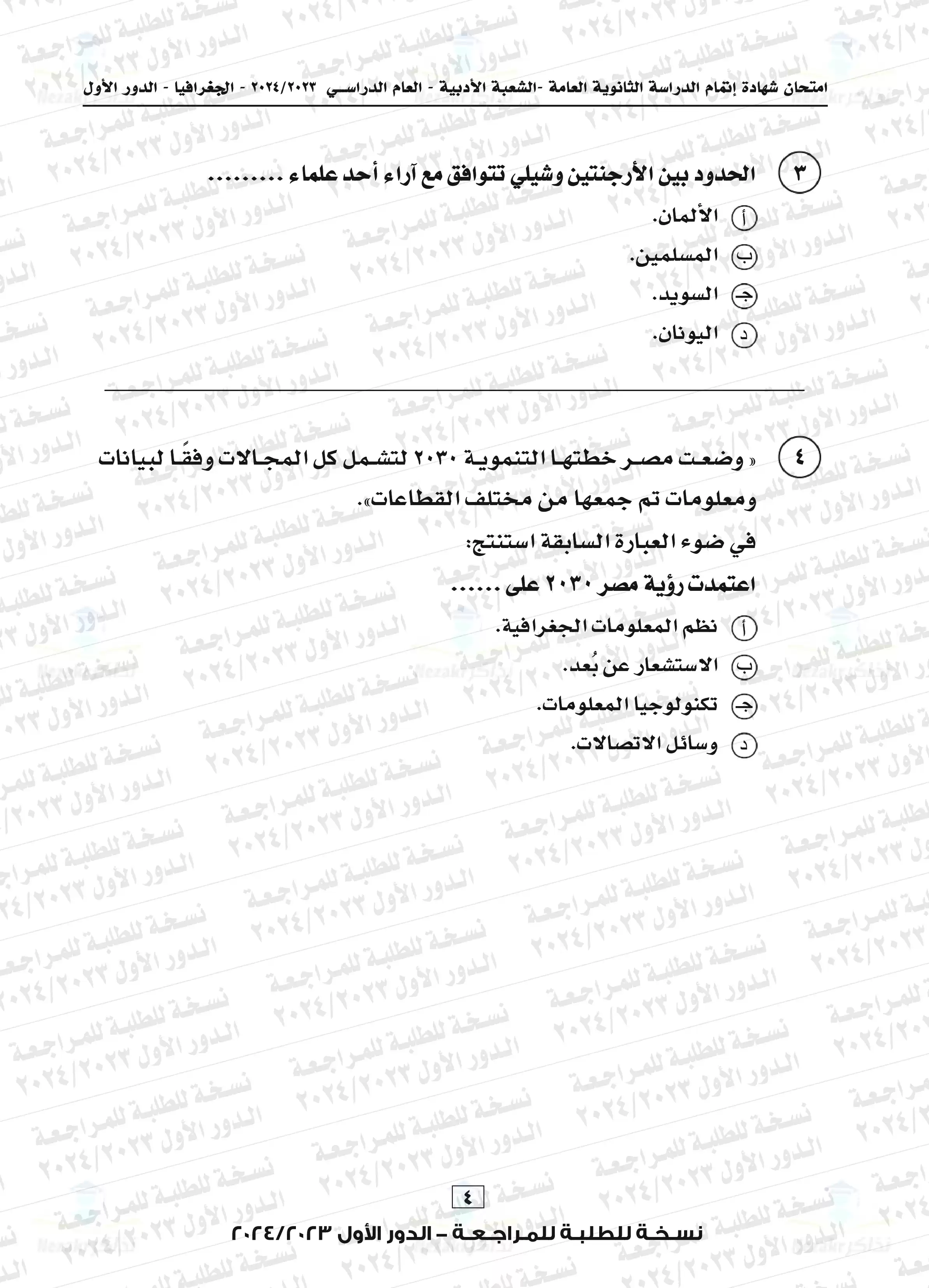 | بيانات الملف: (امتحان الجغرافيا للثانوية العامة الدور الأول 2024 مع نموذج الإجابة الرسمي - Nezakr) | |