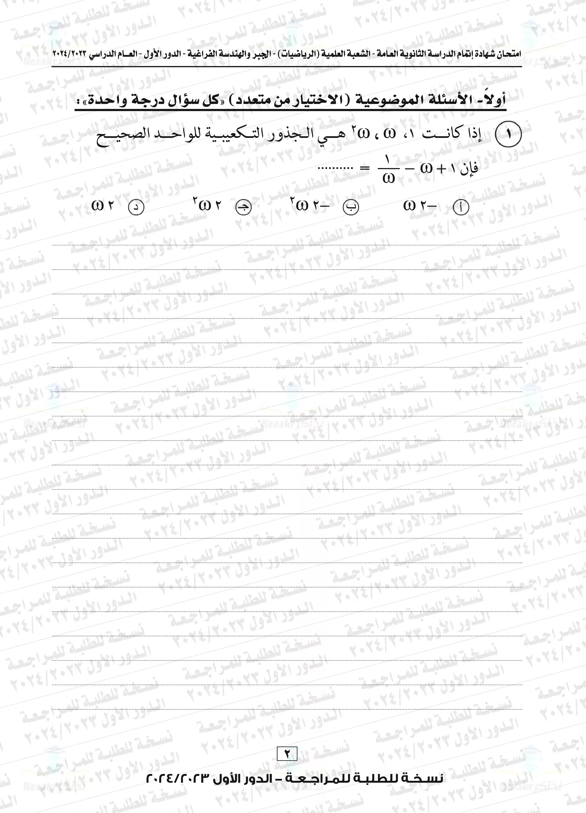 صفحة 2 من 29 صفحة من ملف: امتحان الجبر والهندسة الفراغية للثانوية العامة الدور الأول 2024 مع نموذج الإجابة الرسمي - Nezakr