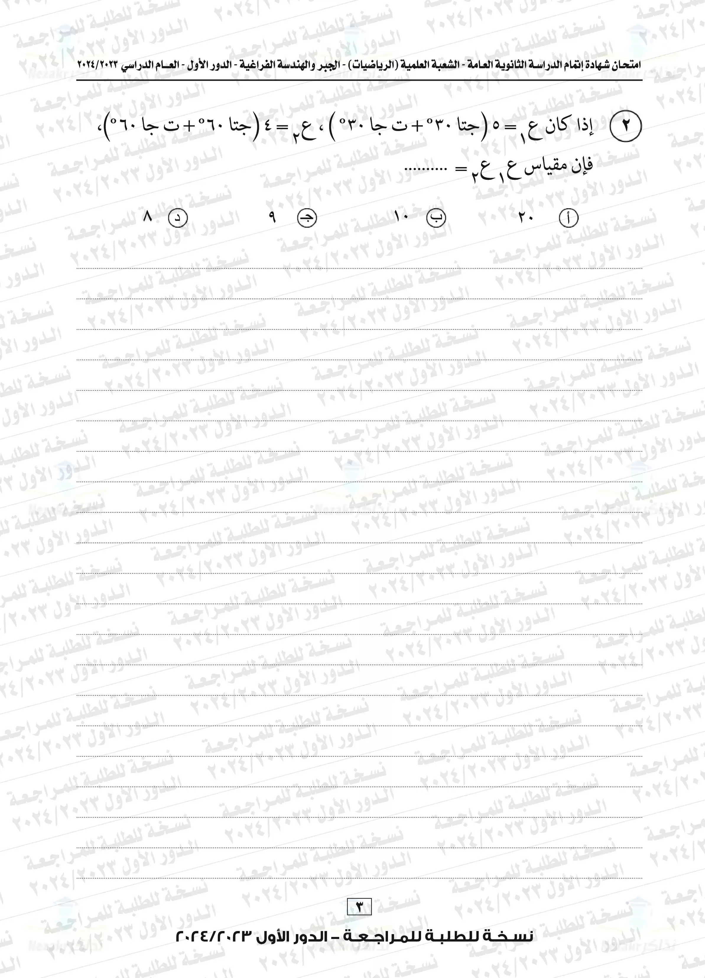 صفحة 3 من 29 صفحة من ملف: امتحان الجبر والهندسة الفراغية للثانوية العامة الدور الأول 2024 مع نموذج الإجابة الرسمي - Nezakr