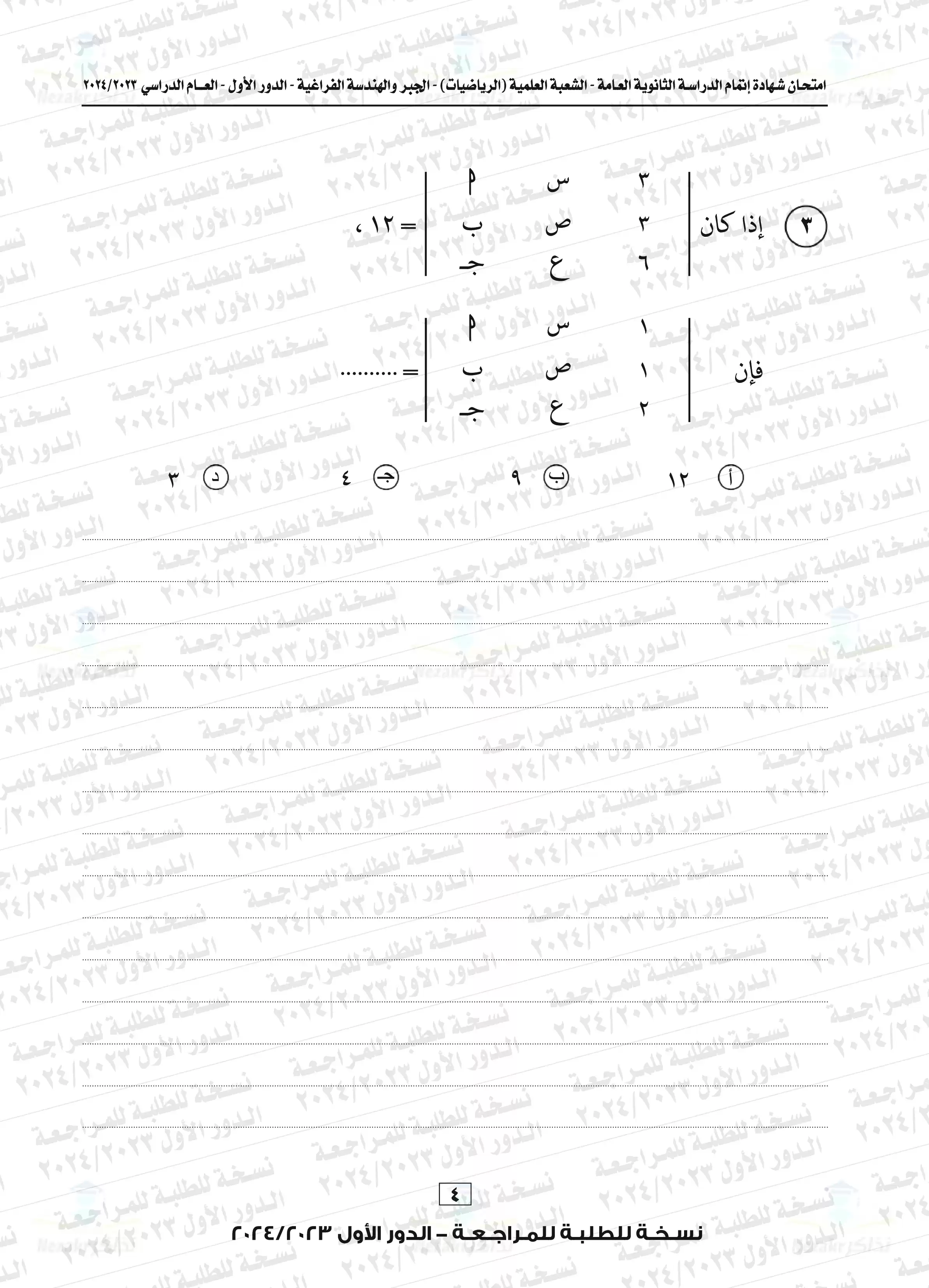 صفحة 4 من 29 صفحة من ملف: امتحان الجبر والهندسة الفراغية للثانوية العامة الدور الأول 2024 مع نموذج الإجابة الرسمي - Nezakr