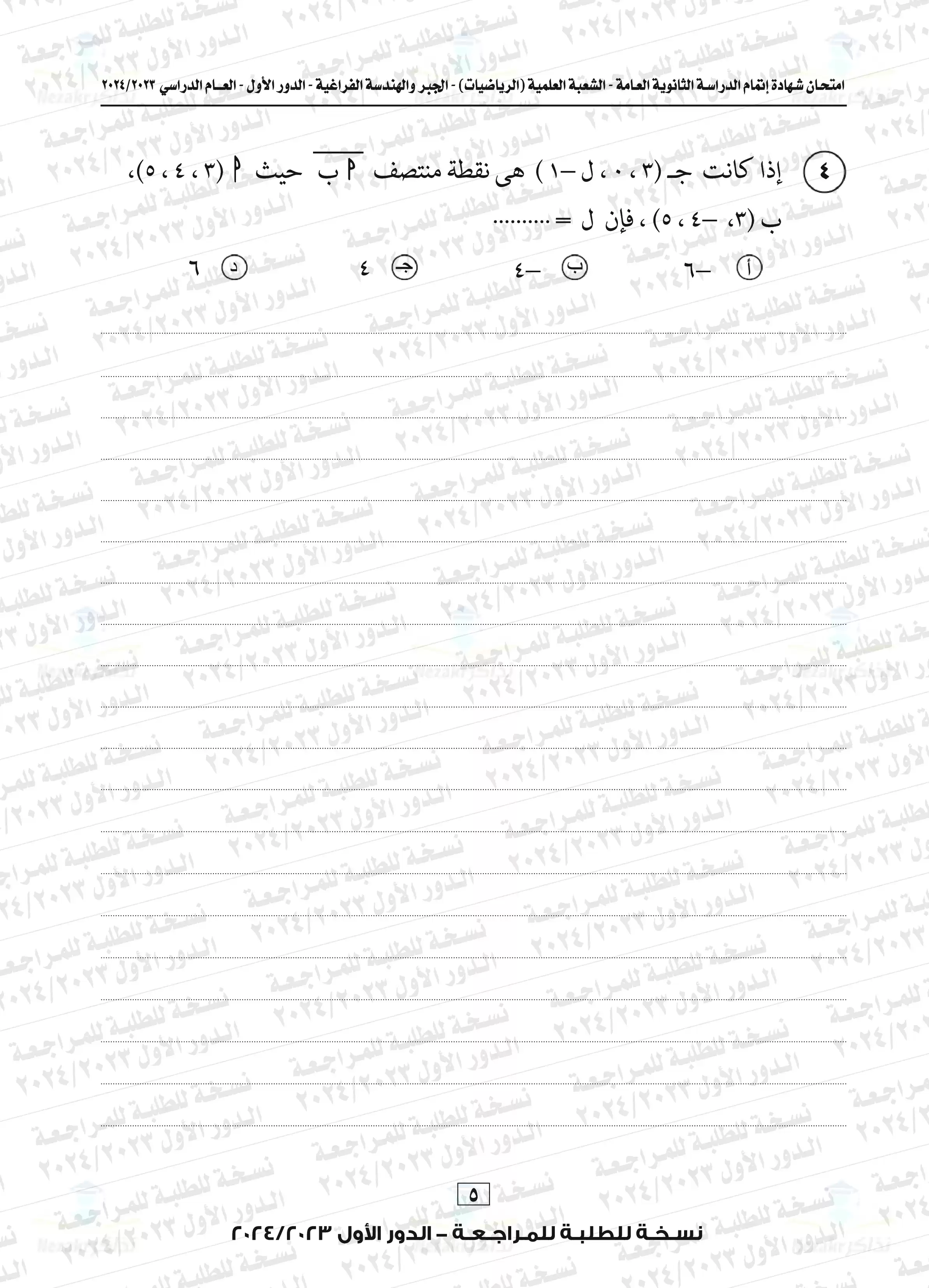 صفحة 5 من 29 صفحة من ملف: امتحان الجبر والهندسة الفراغية للثانوية العامة الدور الأول 2024 مع نموذج الإجابة الرسمي - Nezakr