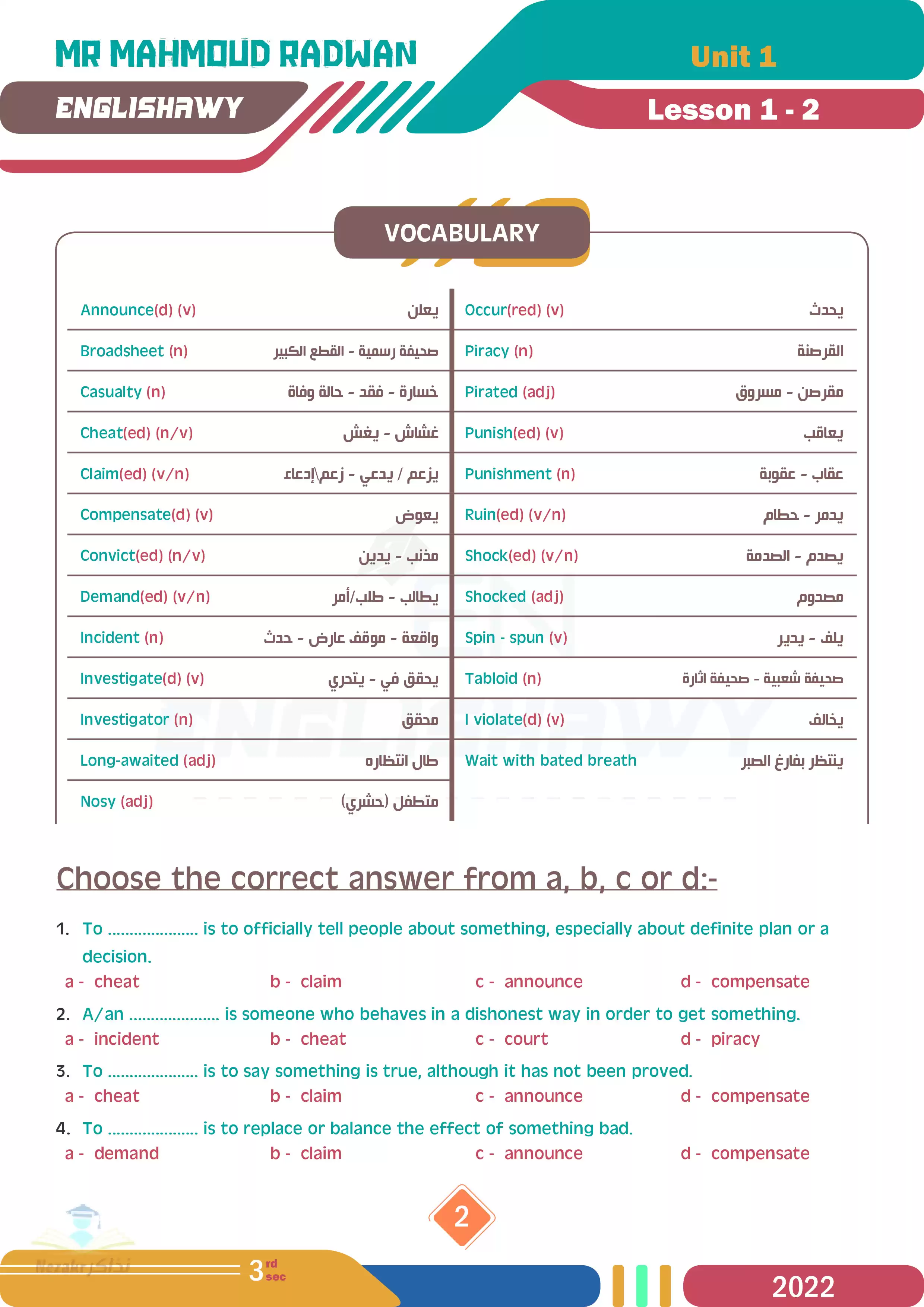 صفحة 2 من 337 صفحة من ملف: مذكرة انجلشاوي في اللغة الانجليزية للصف الثالث الثانوي مستر محمود رضوان - Nezakr