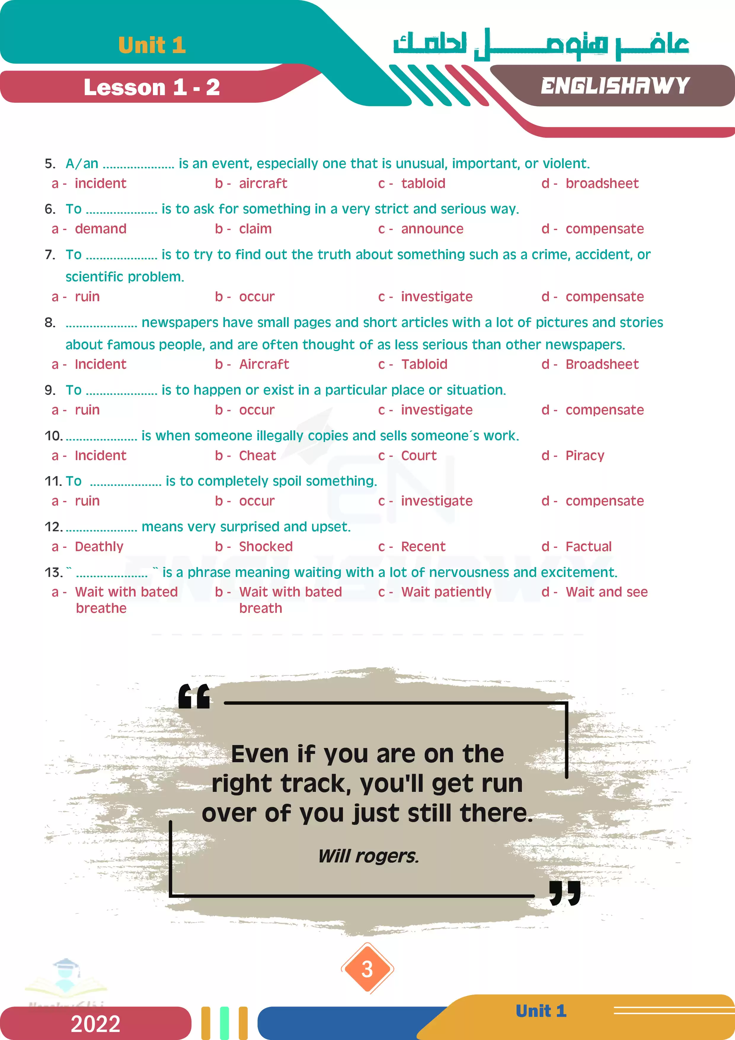 مذكرة إنجليشاوي في اللغة الإنجليزية للثانوية العامة