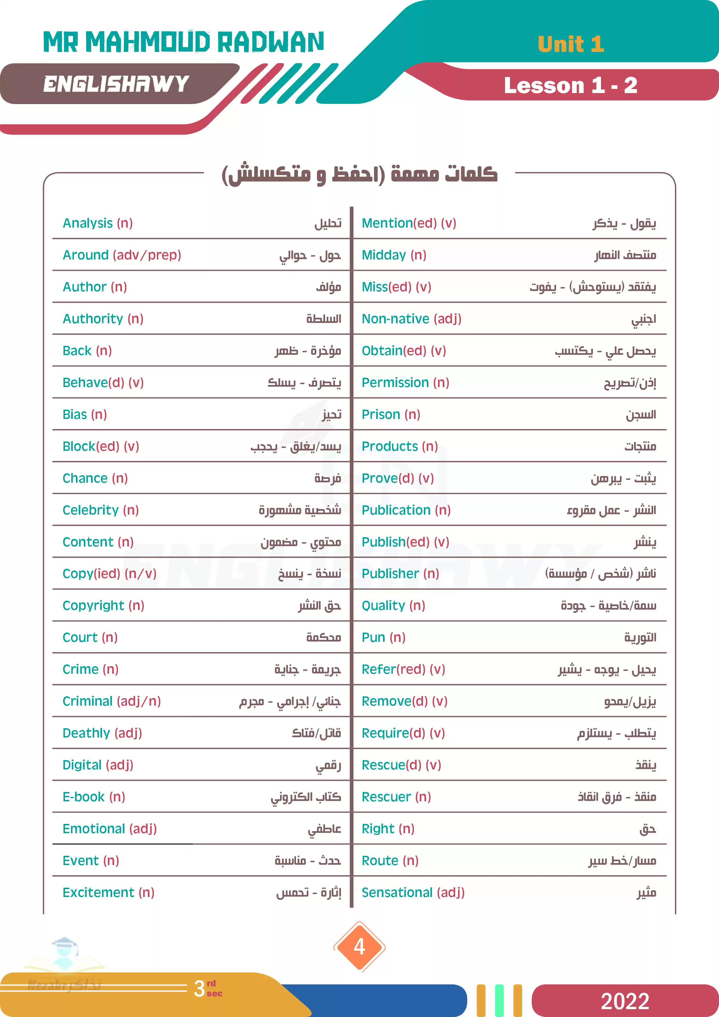 صفحة 4 من 337 صفحة من ملف: مذكرة انجلشاوي في اللغة الانجليزية للصف الثالث الثانوي مستر محمود رضوان - Nezakr