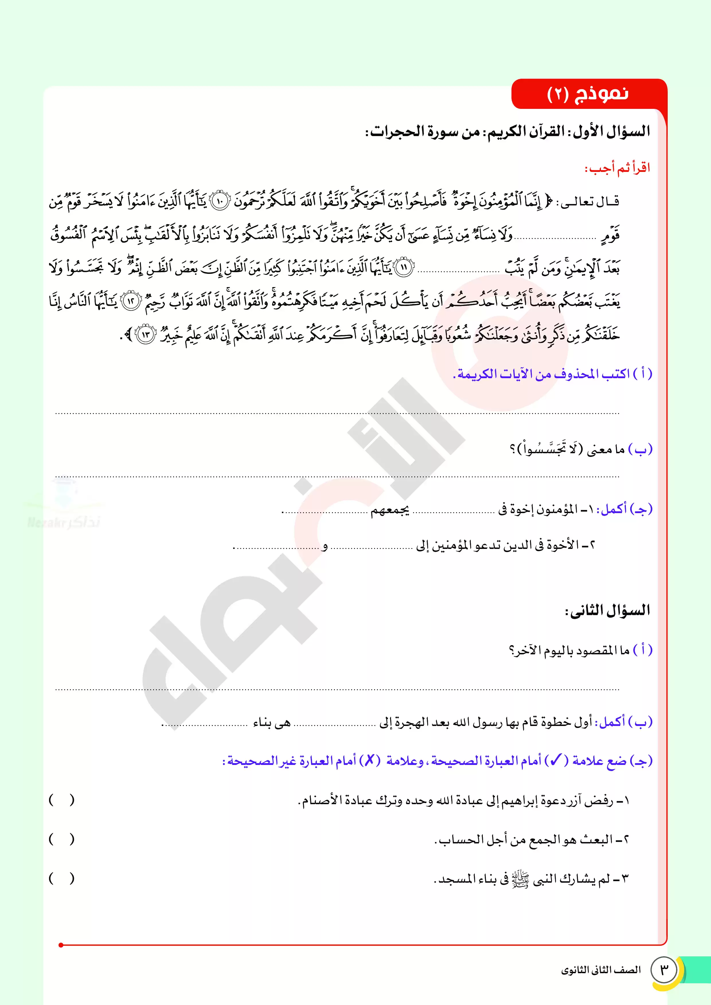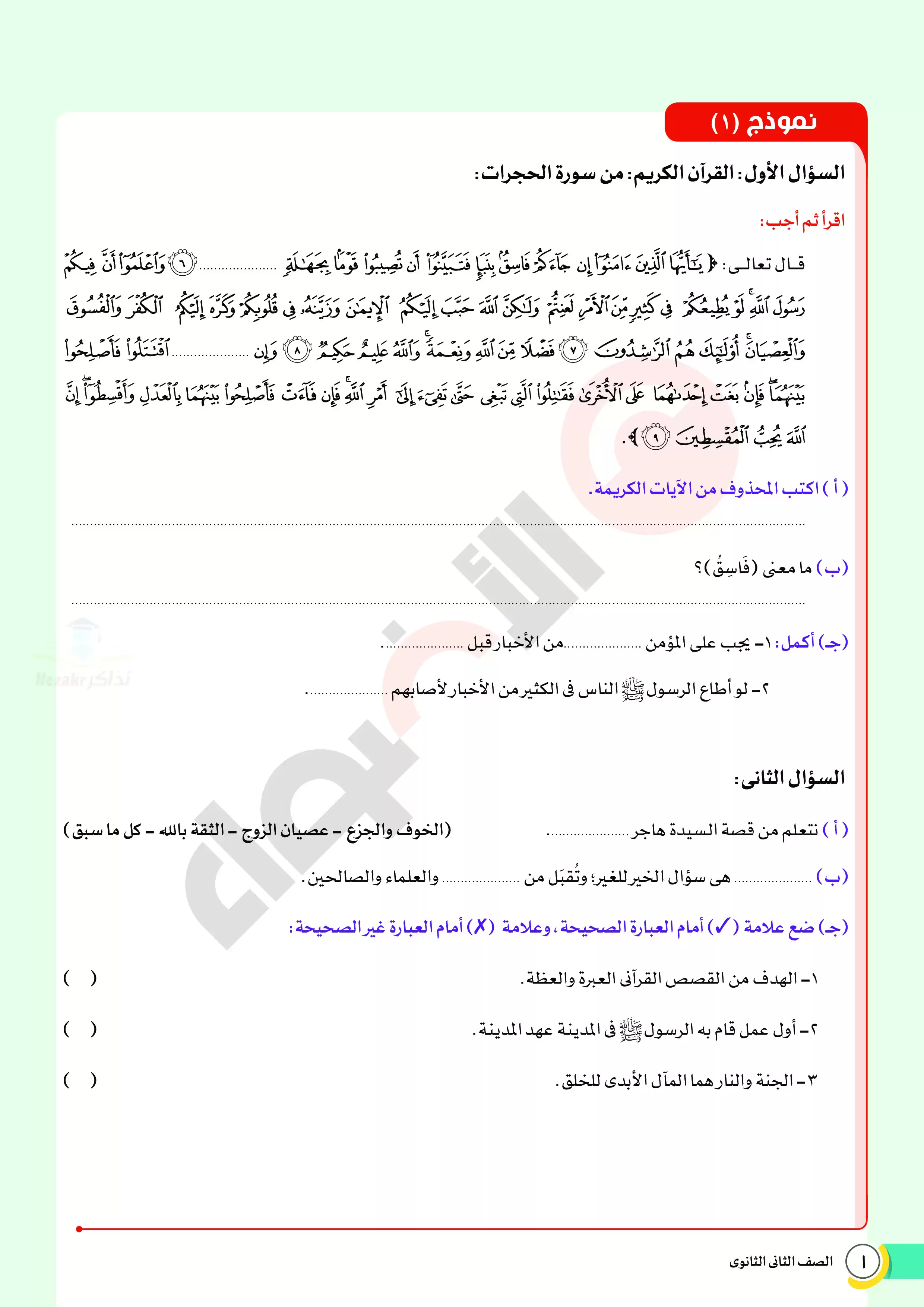 | بيانات الملف: (اختبارات الأضواء الاسترشادية في التربية الدينية الاسلامية للصف الثاني الثانوي مقرر أبريل 2025 بالاجابات - Nezakr) | |