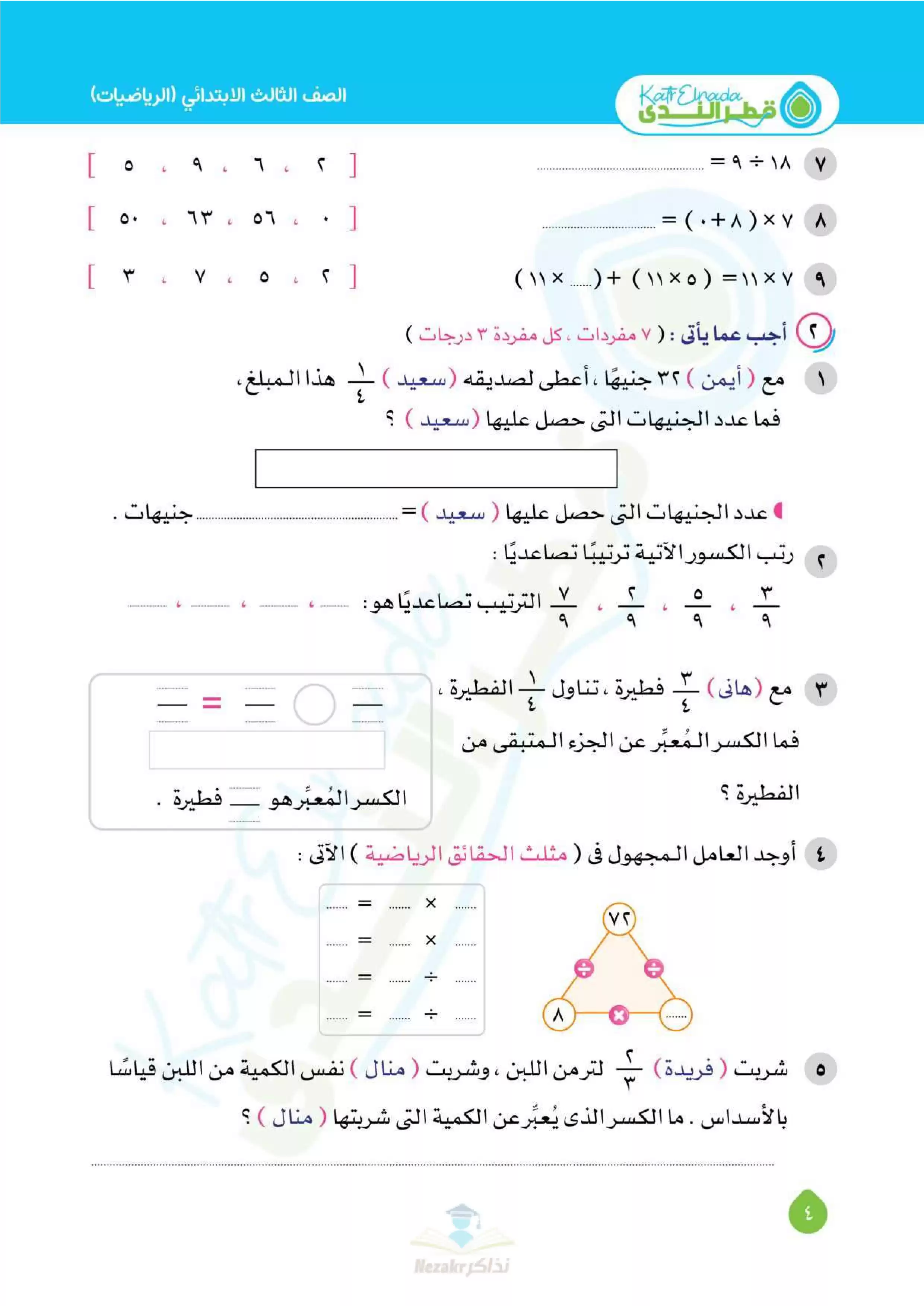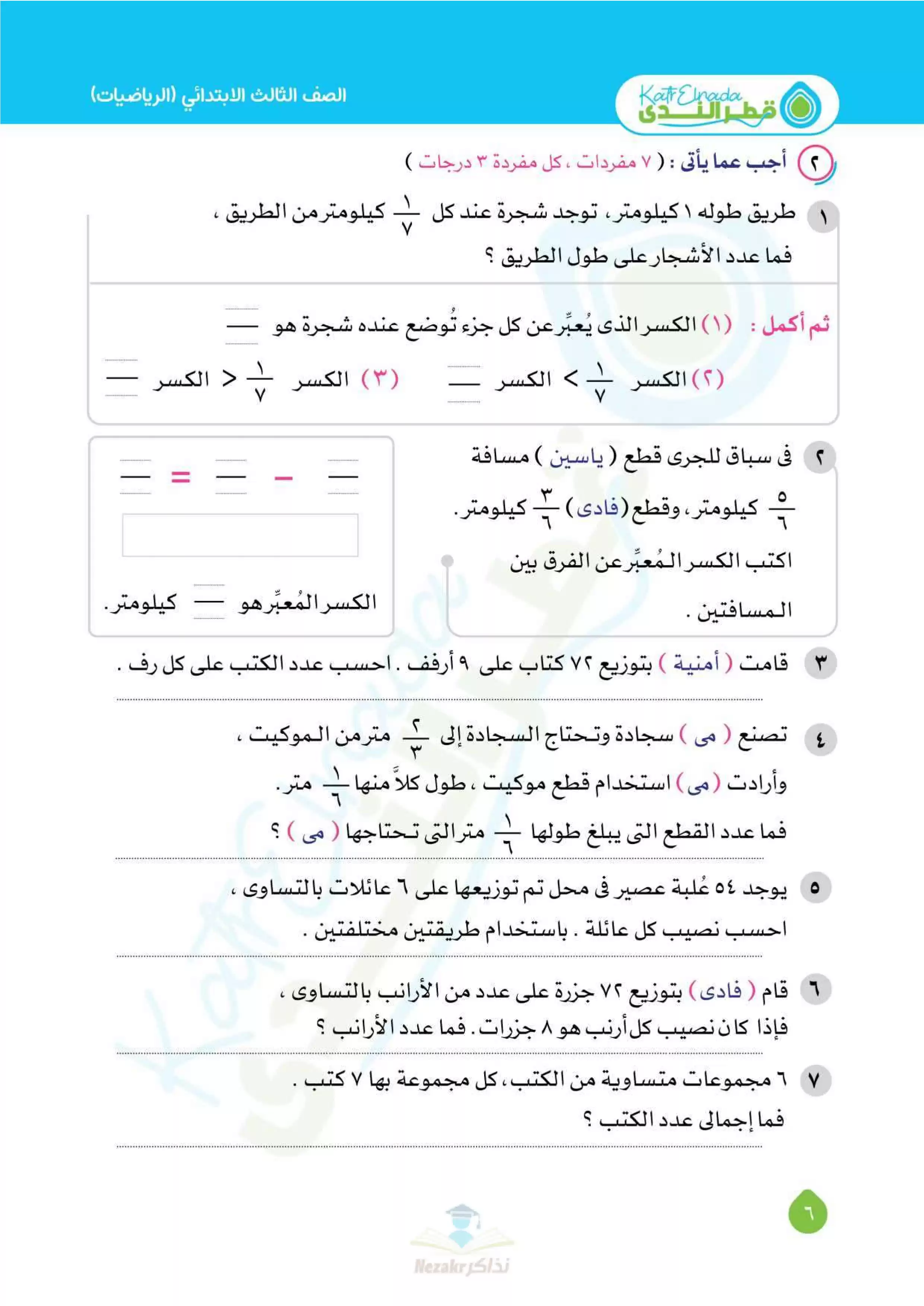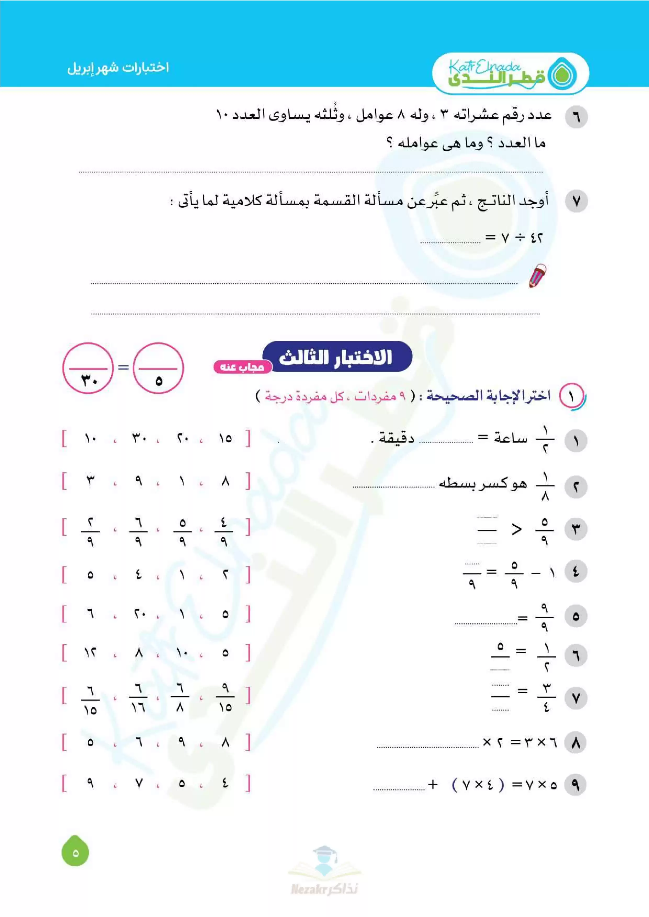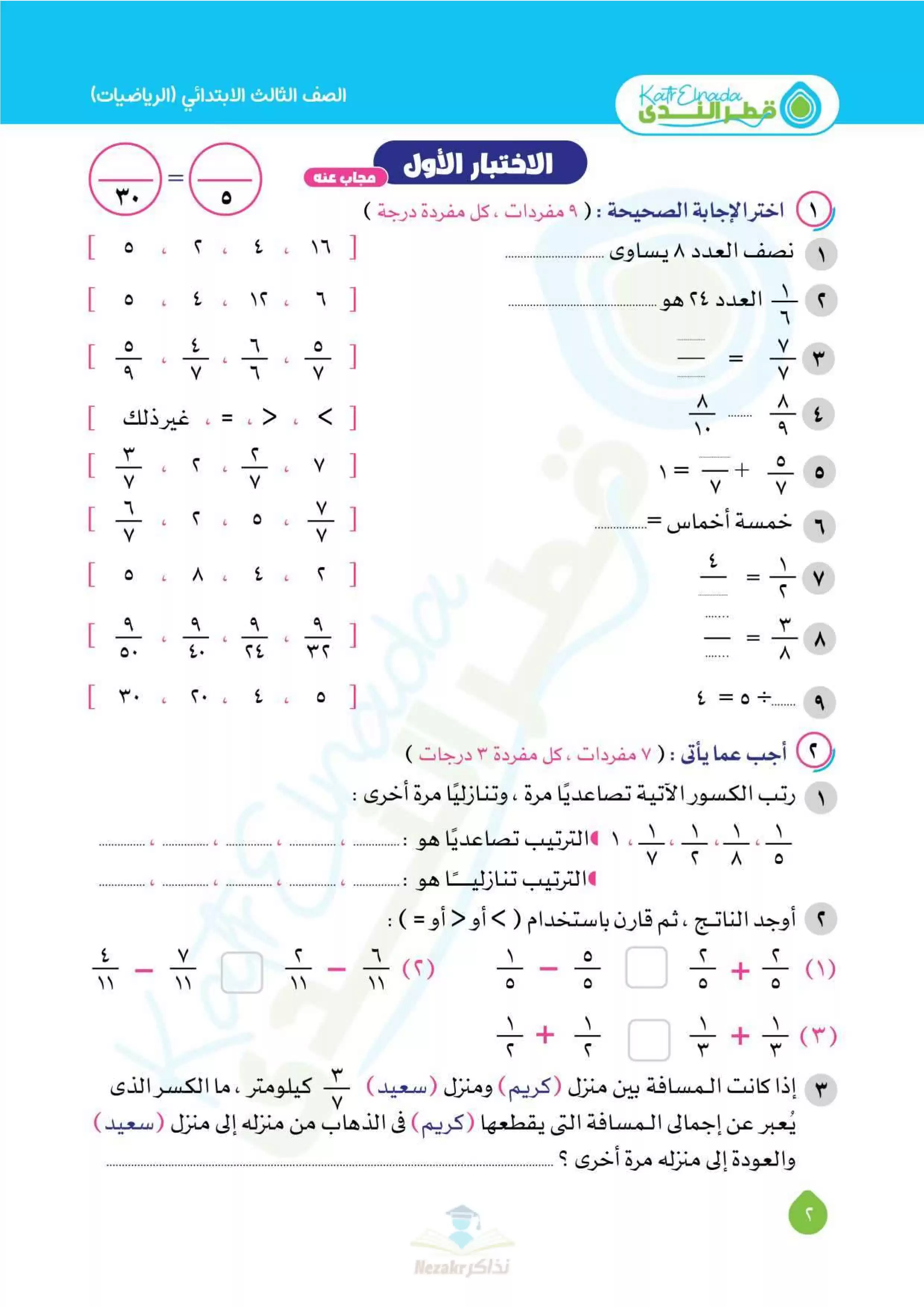 | بيانات الملف: (بالإجابات اختبارات قطر الندي في الحساب لتالتة ابتدائي امتحان ابريل 2025 - Nezakr) | |
