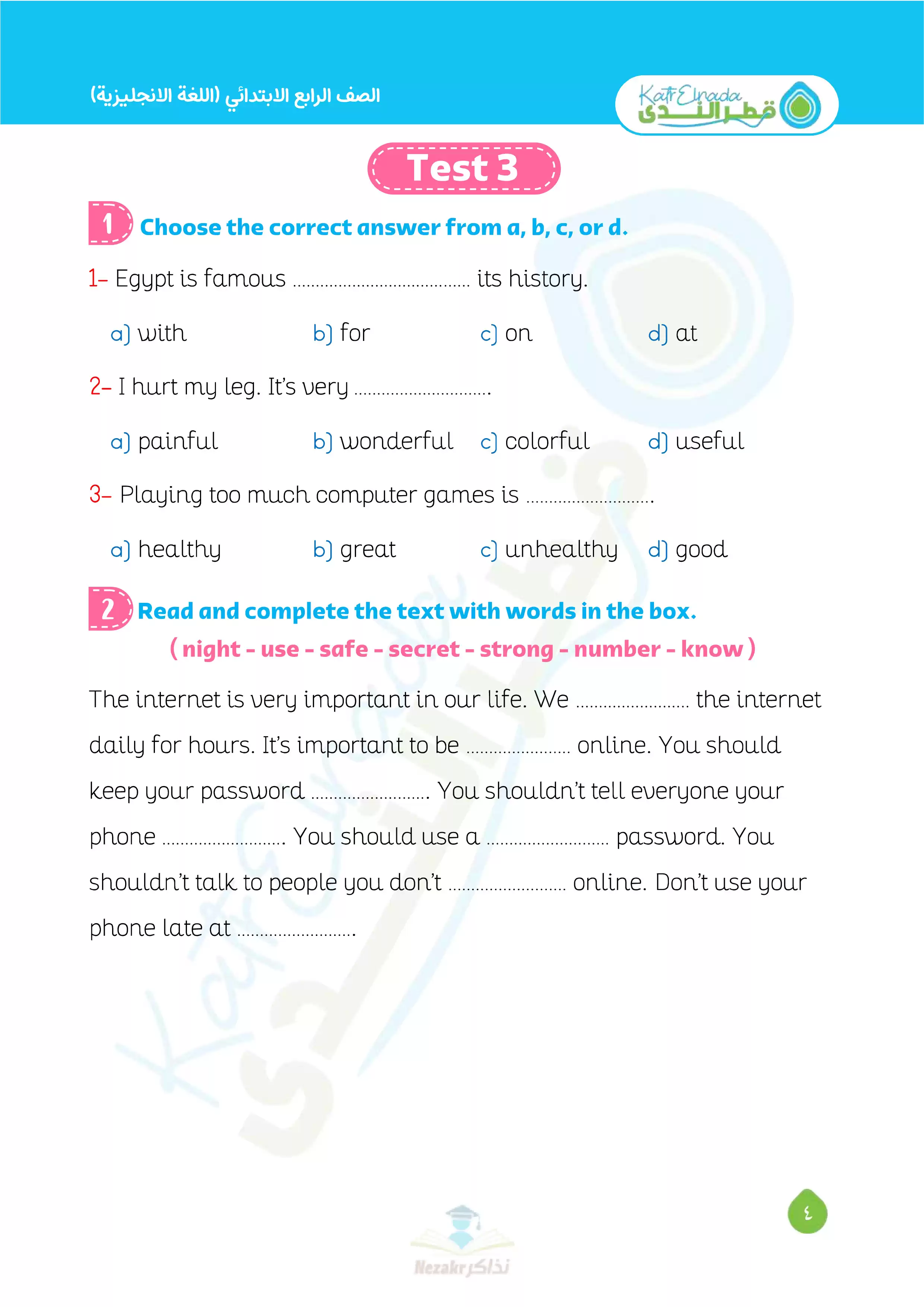 بيانات الملف: (بالإجابات اختبارات قطر الندي في الانجليزي لرابعة ابتدائي امتحان ابريل 2025 - Nezakr)