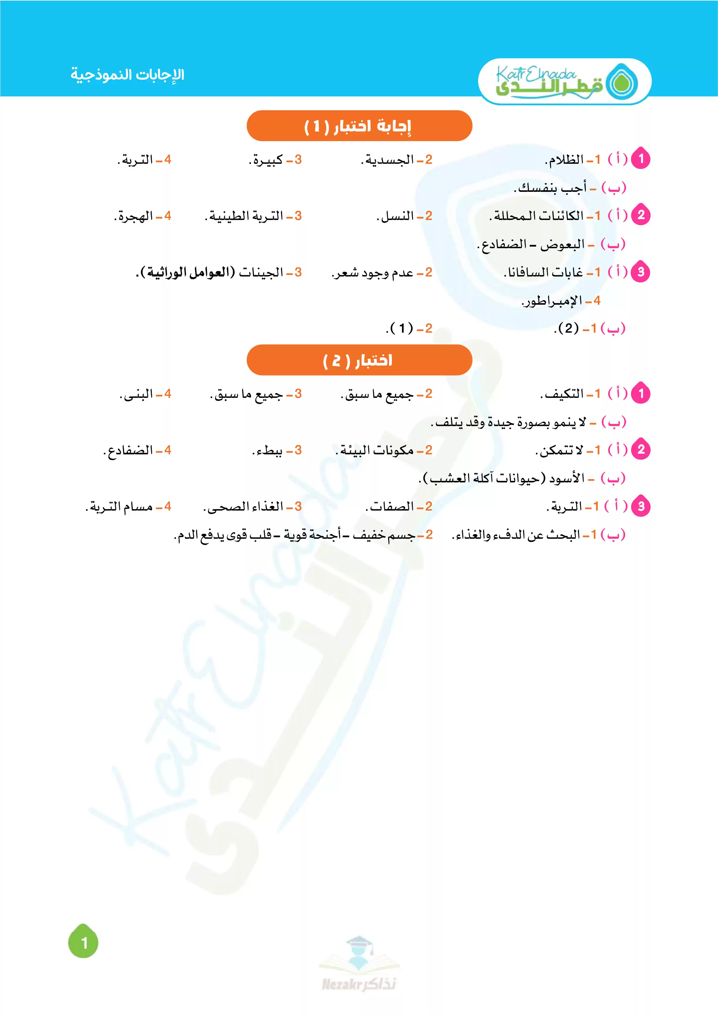 • نماذج اختبارات قطر الندى في العلوم للصف السادس الابتدائي على مقرر شهر أبريل