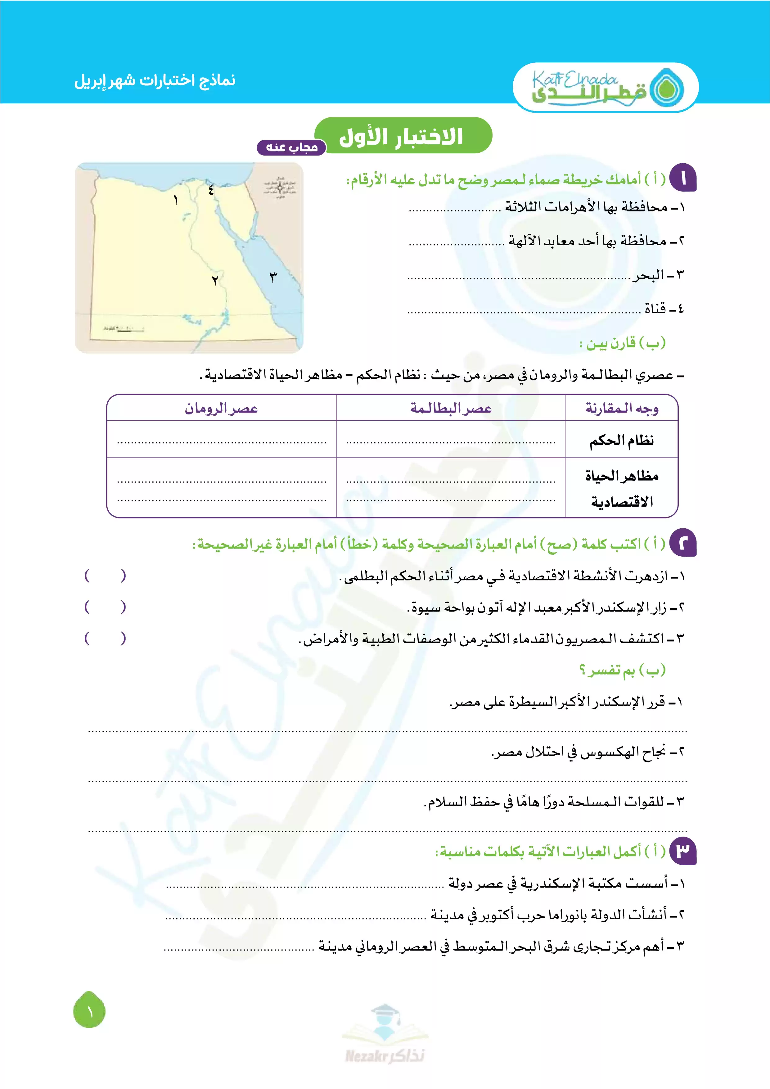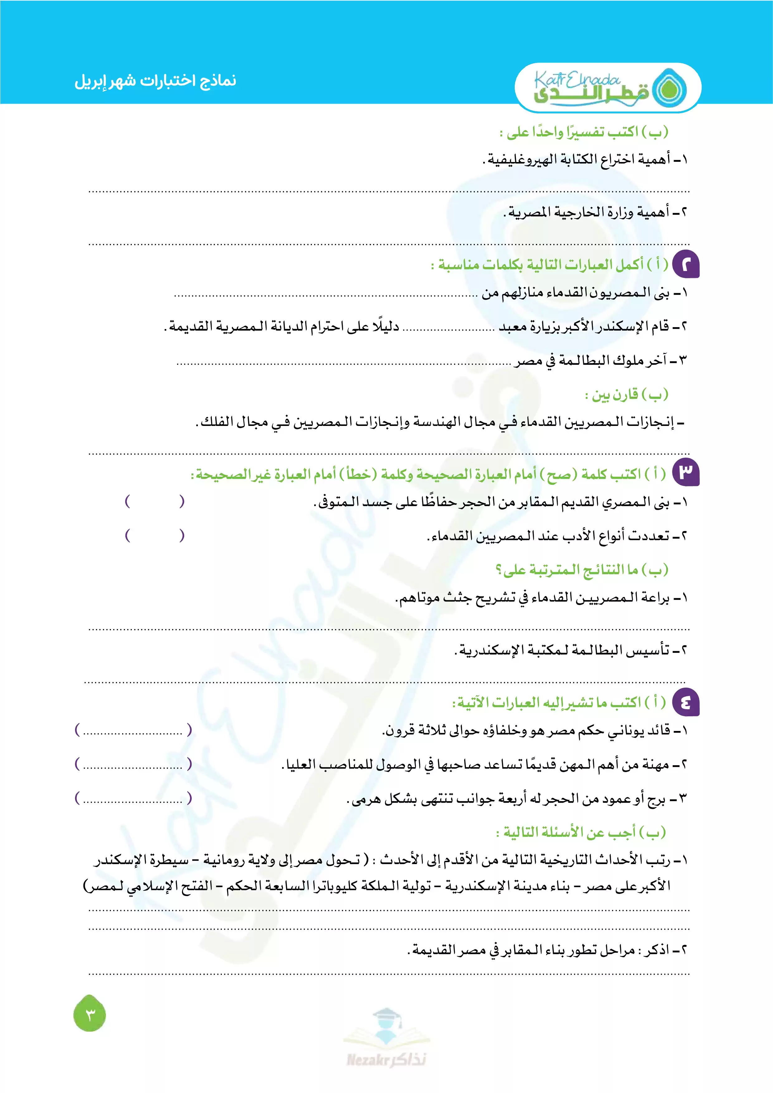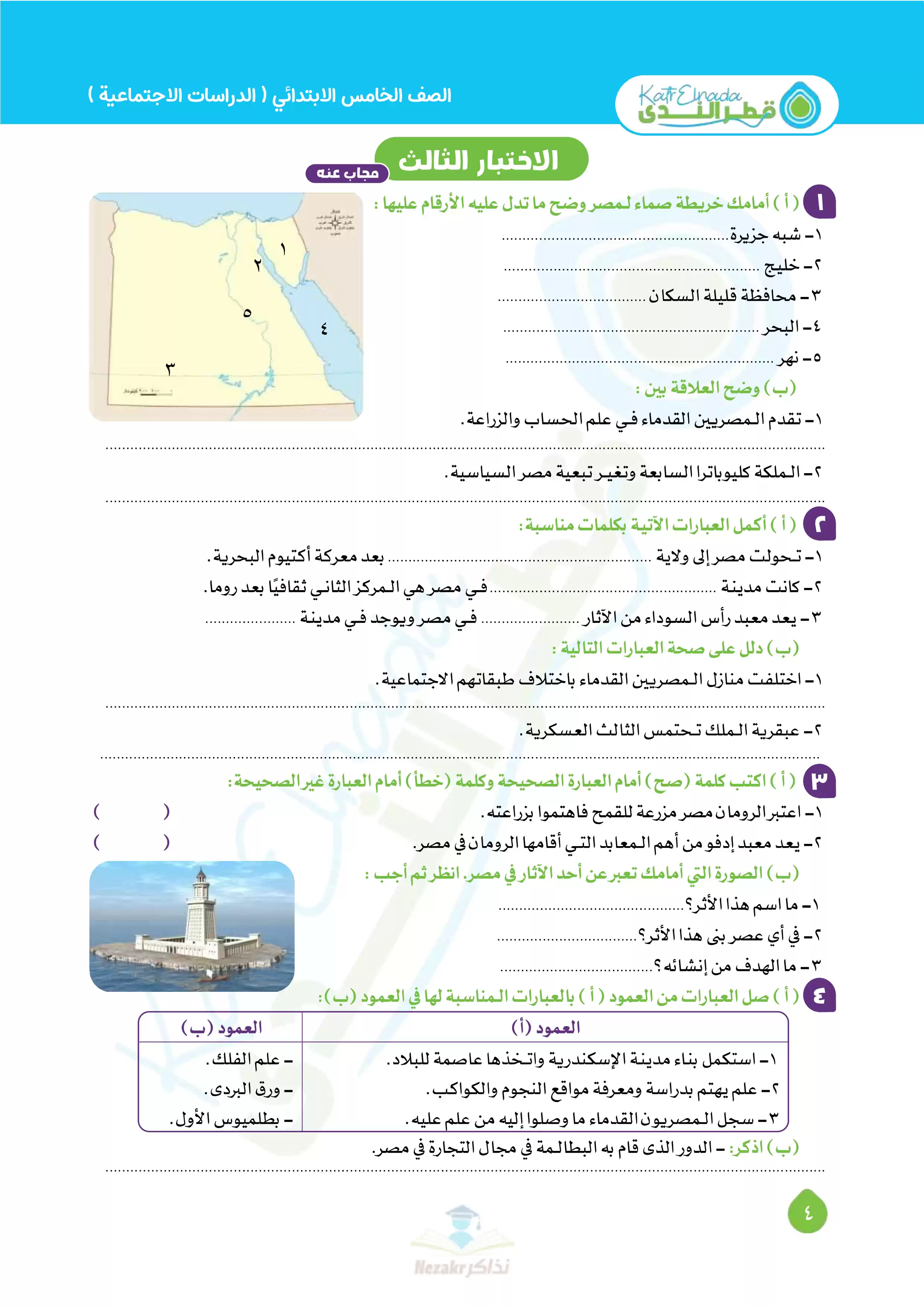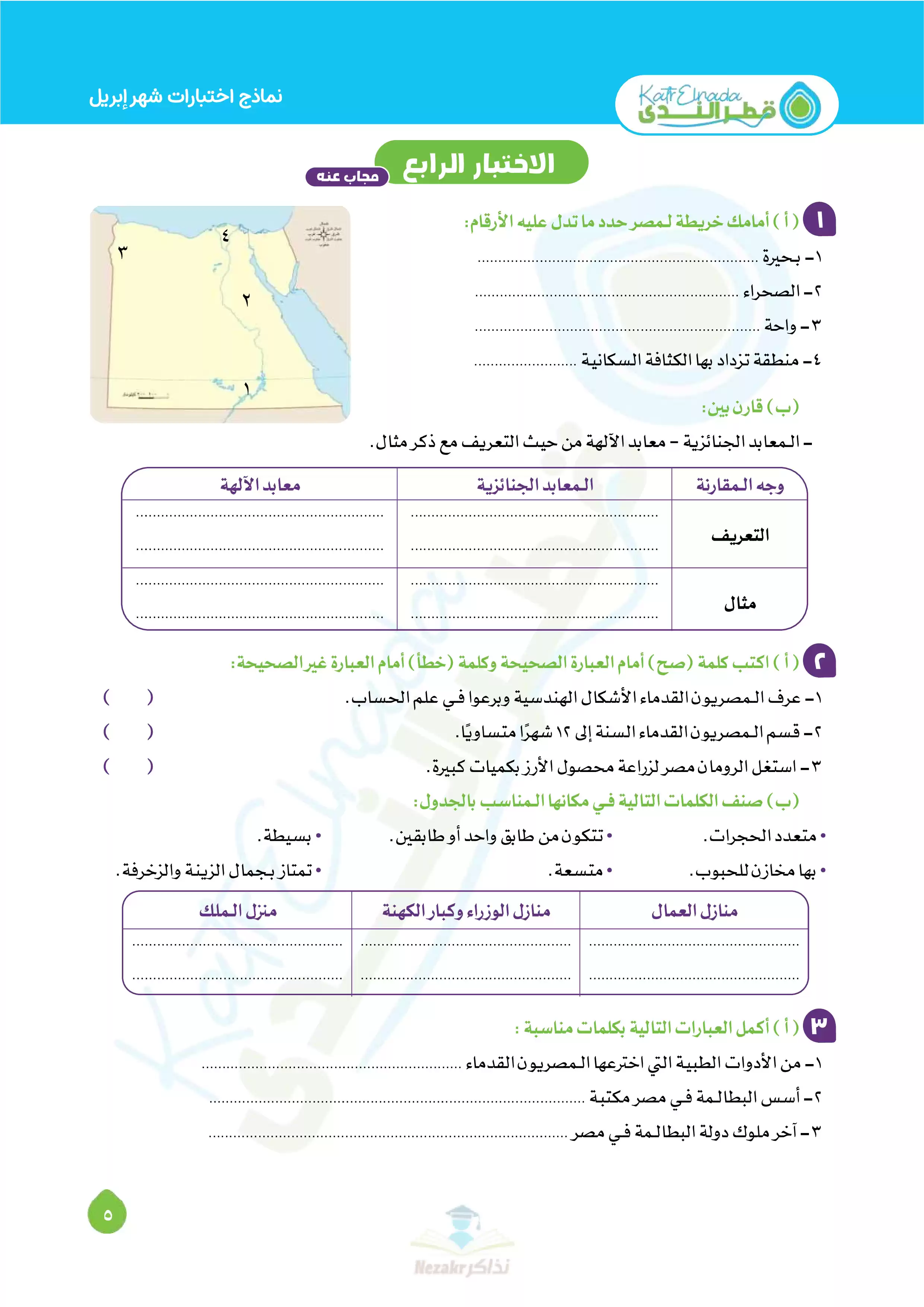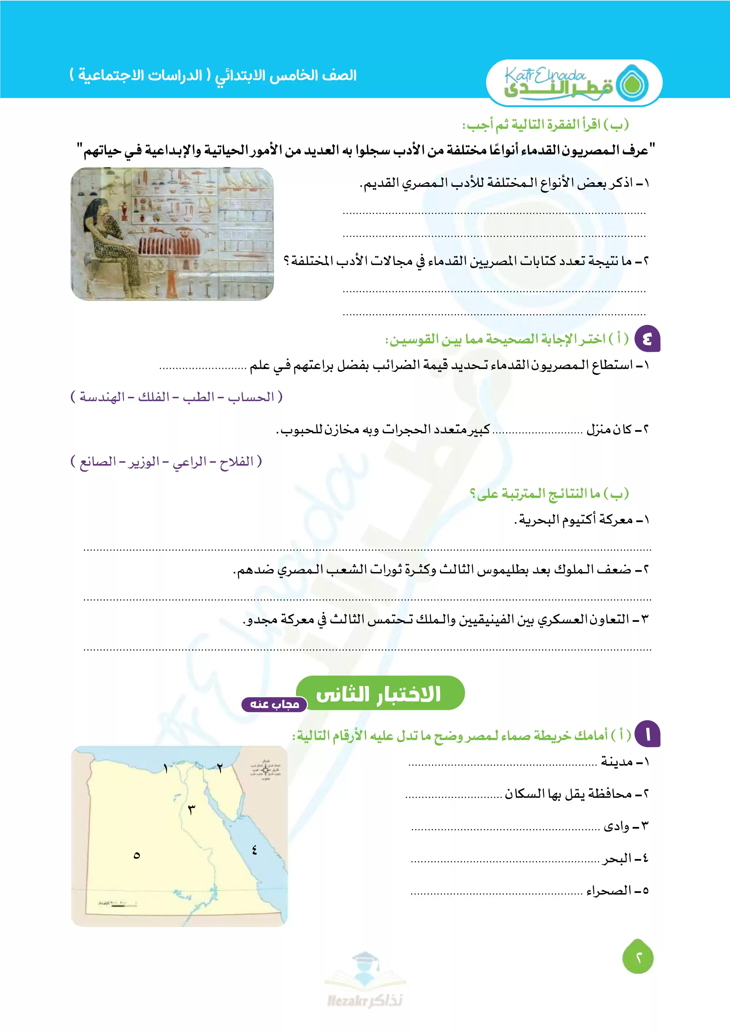 | بيانات الملف: (بالإجابات اختبارات قطر الندي في الدراسات الاجتماعية لخامسه ابتدائي امتحان ابريل 2025 - Nezakr) | |
