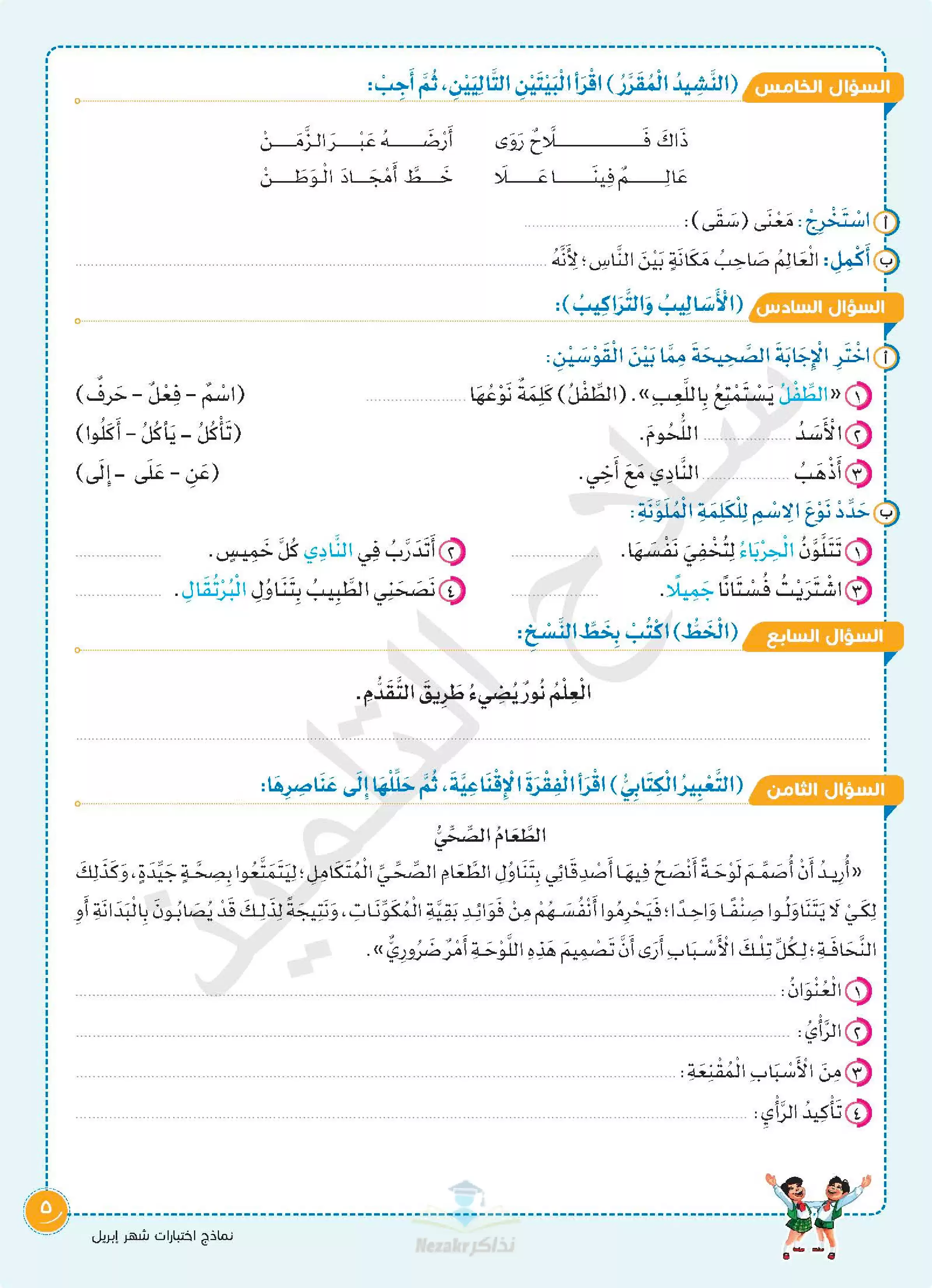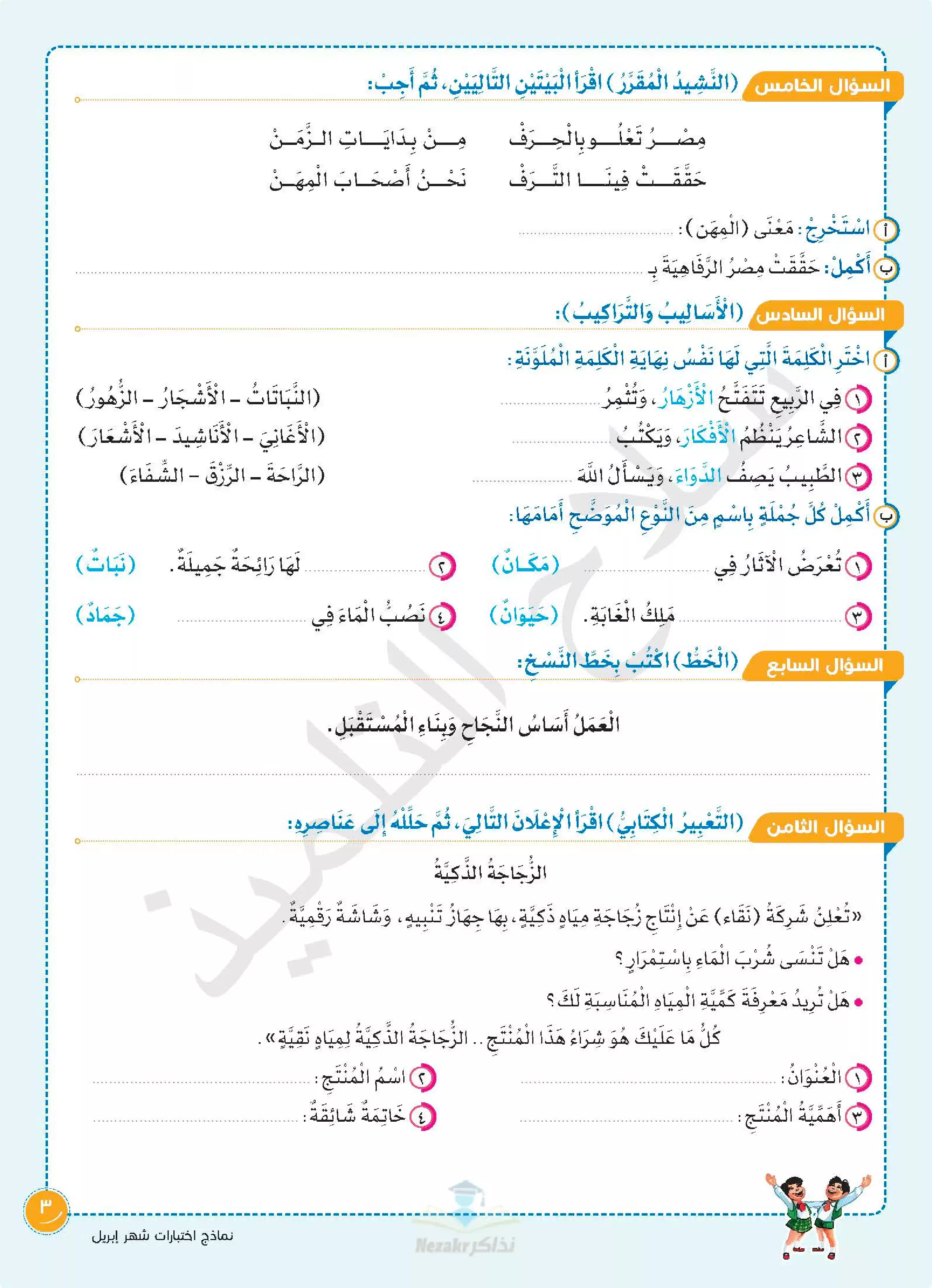 | بيانات الملف: (اختبارات سلاح التلميذ في جميع المواد للصف الثالث الابتدائي لشهر أبريل مع إجاباتها النموذجية - Nezakr) | |