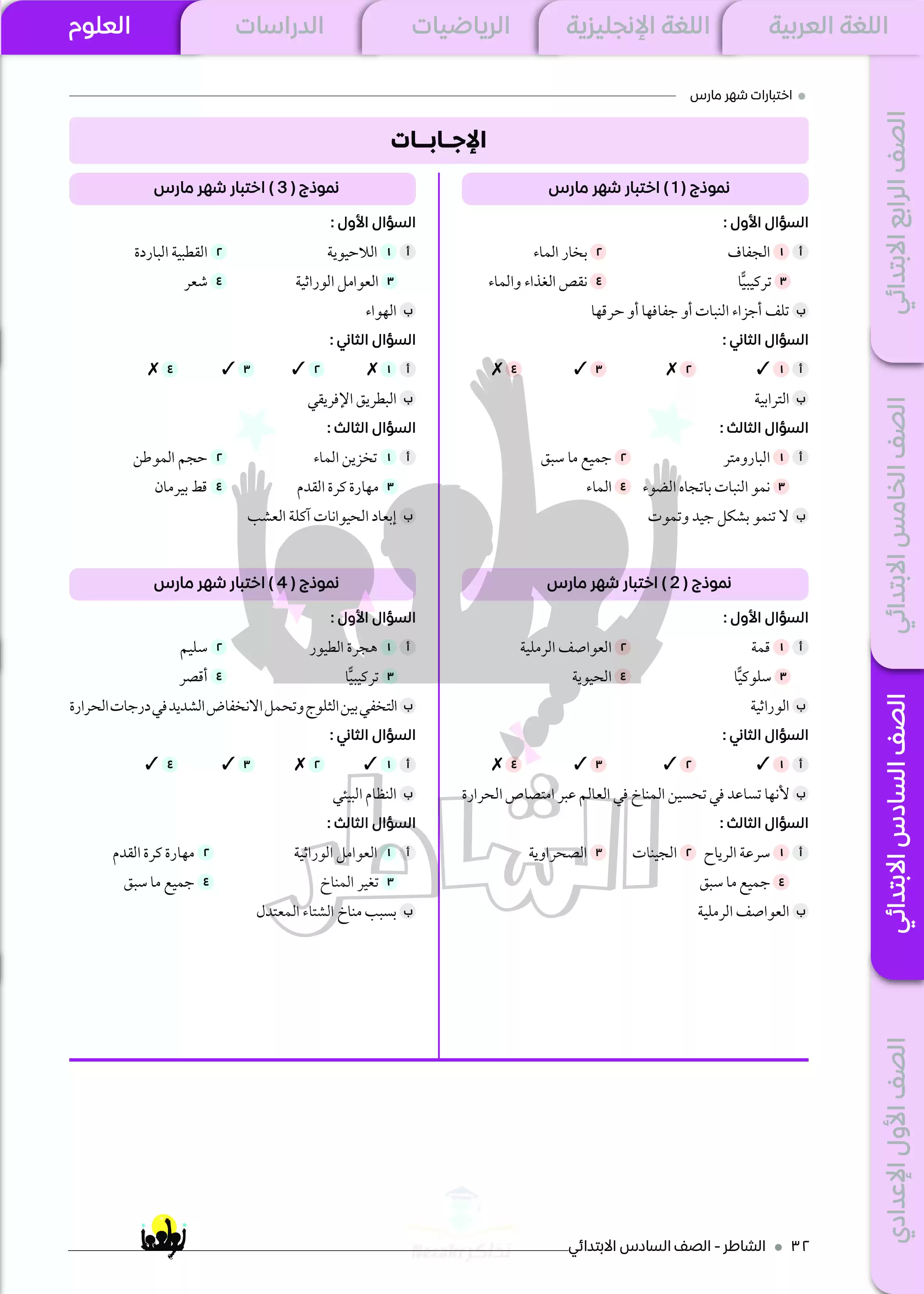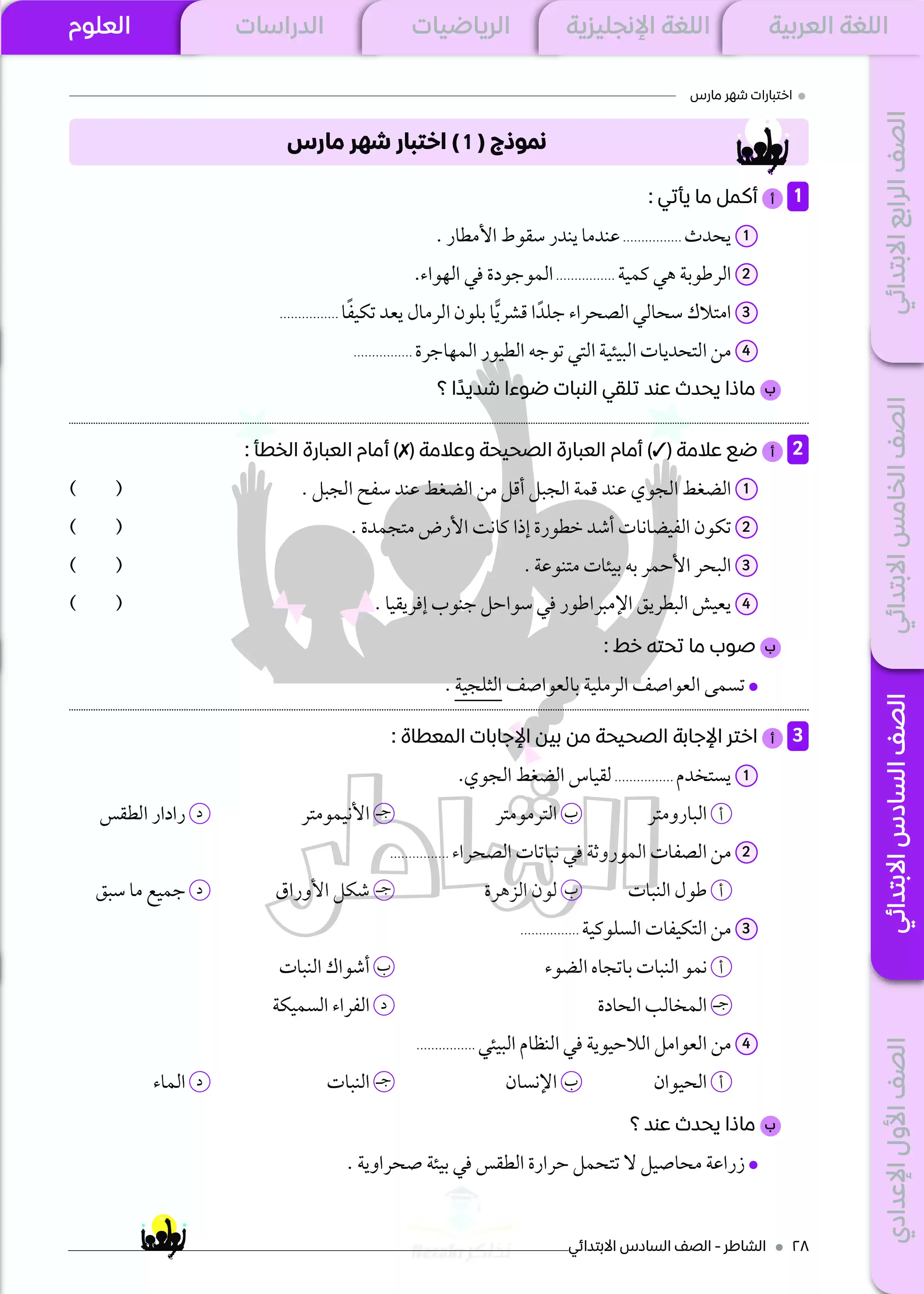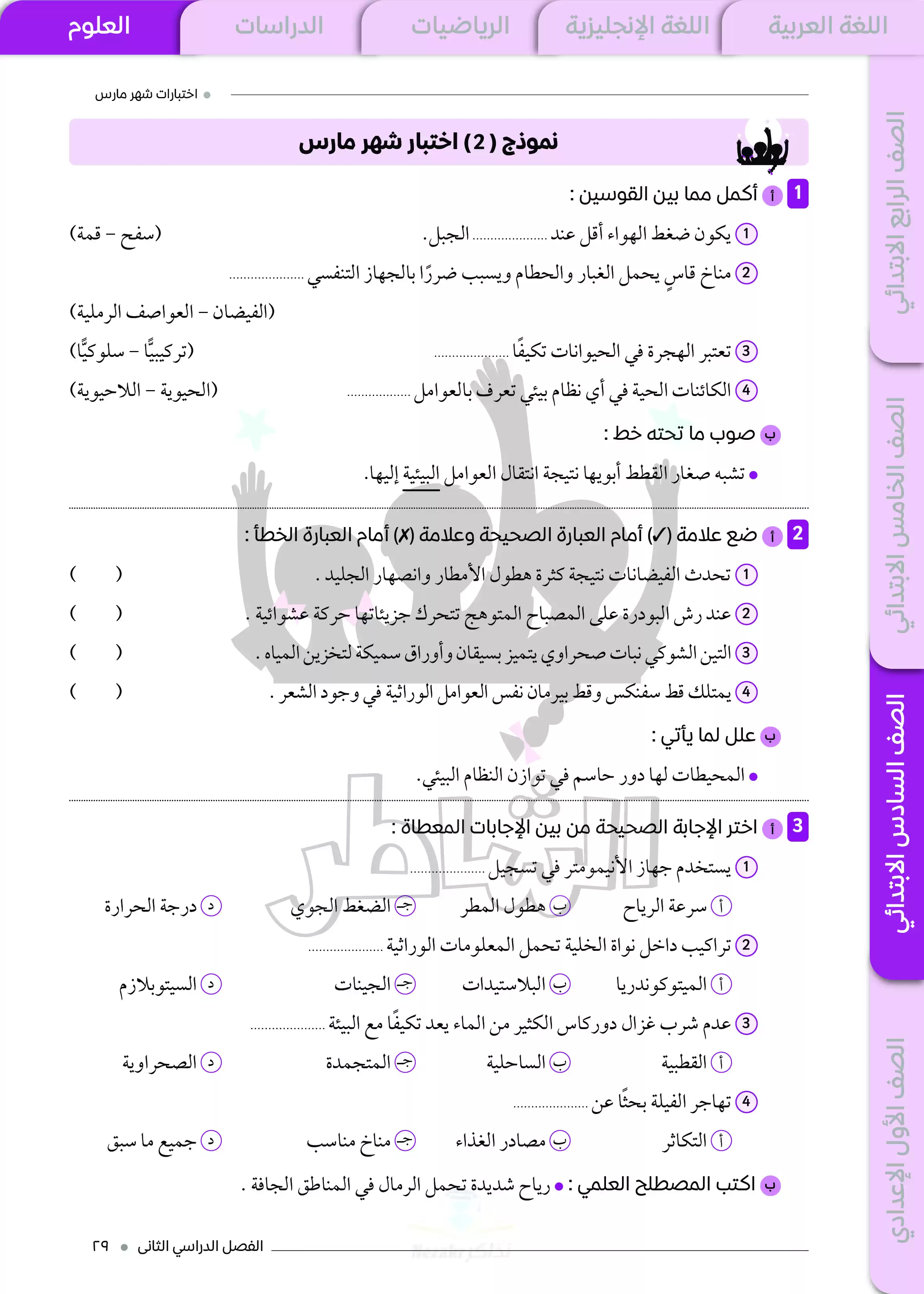 ننشر لكم المراجعة الشهرية الخاصة بشهر مارس على مقرر منهج الشهر في العلوم للصف السادس الابتدائي من كتاب الشاطر، وهي في شكل نماذج اختبارات مميزة مجابة، وكتاب الشاطر من الكتب الخارجية المميزة التي تتضمن شرح وأسئلة مميزة بأسلوب واضح وسهل، والمراجعة عبارة عن اختبارات استرشادية على مقرر شهر مارس في مادة العلوم لسادسة ابتدائي مع إجاباتها النموذجية.