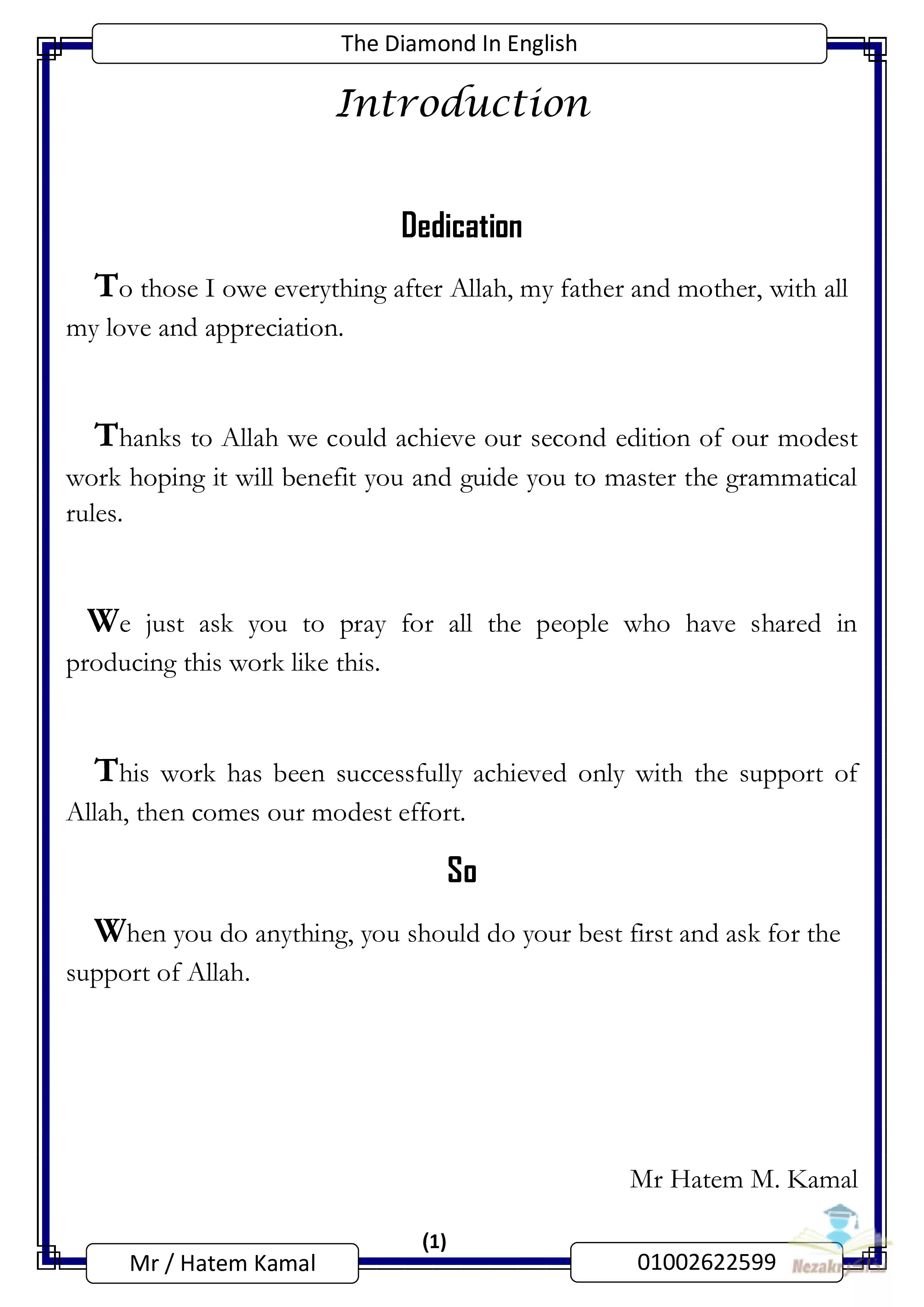 صفحة 2 من 154 صفحة من ملف: ملزمة The Diamond في قواعد اللغة الإنجليزية للثانوية العامة تضم كذلك الكلمات والملاحظات الهامة - Nezakr