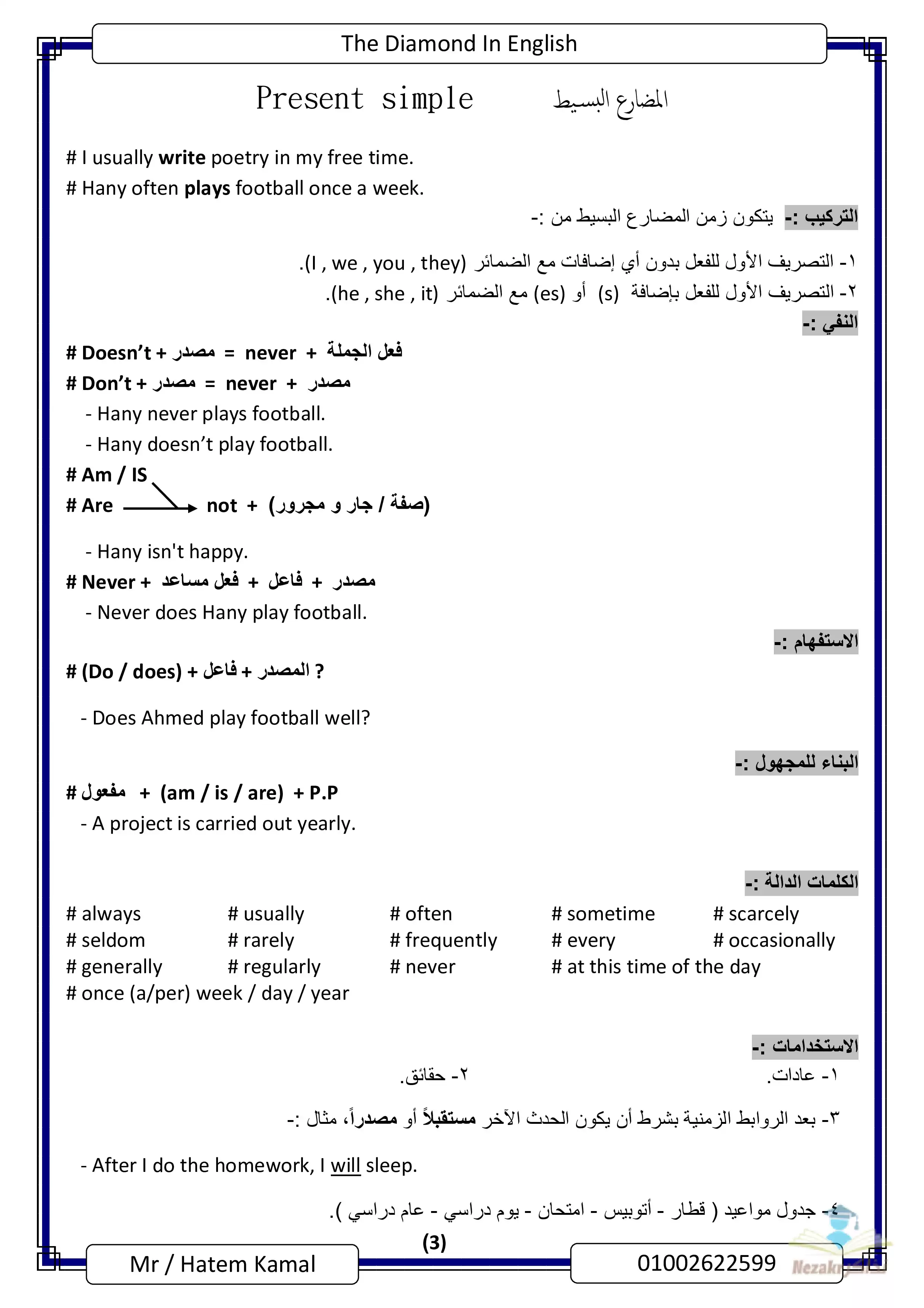 صفحة 3 من 154 صفحة من ملف: ملزمة The Diamond في قواعد اللغة الإنجليزية للثانوية العامة تضم كذلك الكلمات والملاحظات الهامة - Nezakr