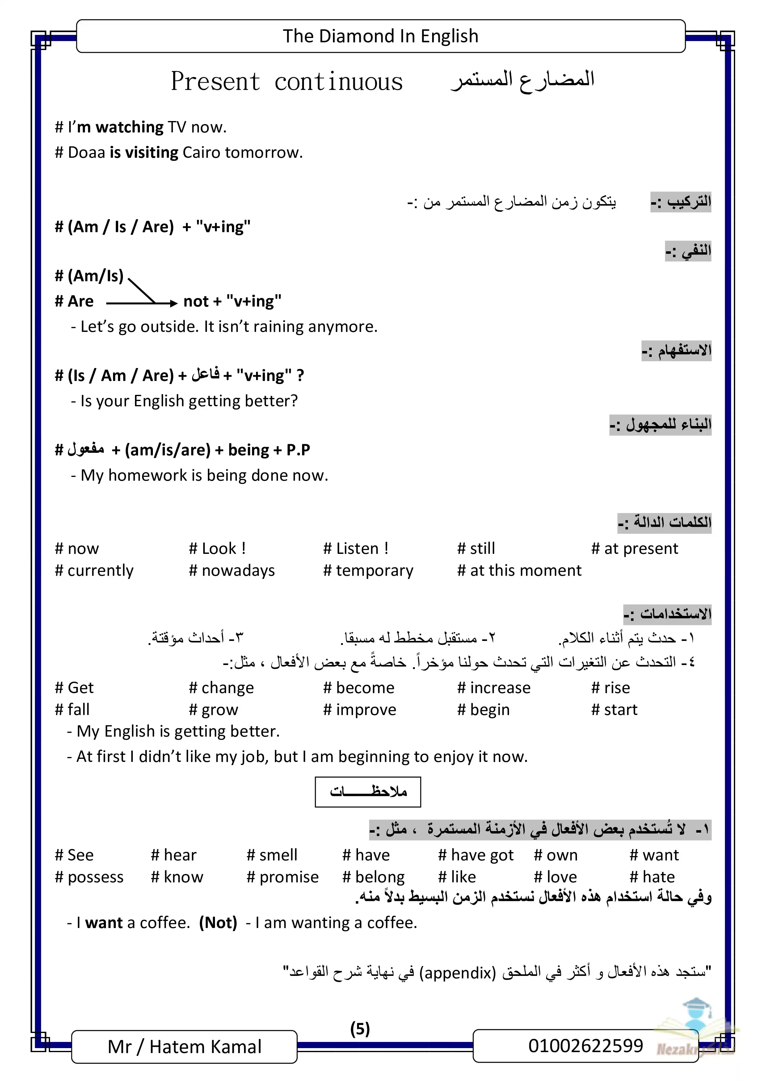 صفحة 5 من 154 صفحة من ملف: ملزمة The Diamond في قواعد اللغة الإنجليزية للثانوية العامة تضم كذلك الكلمات والملاحظات الهامة - Nezakr