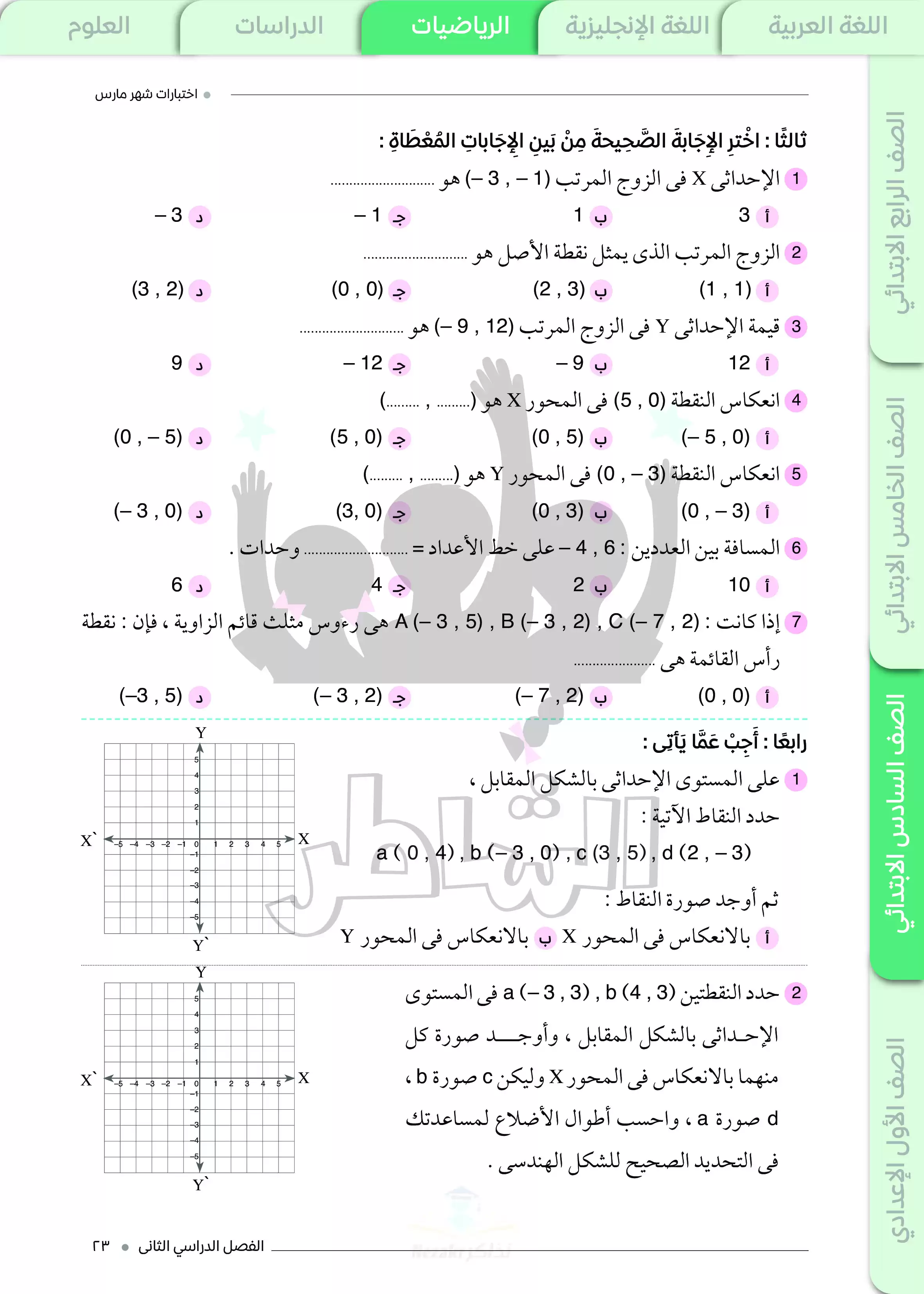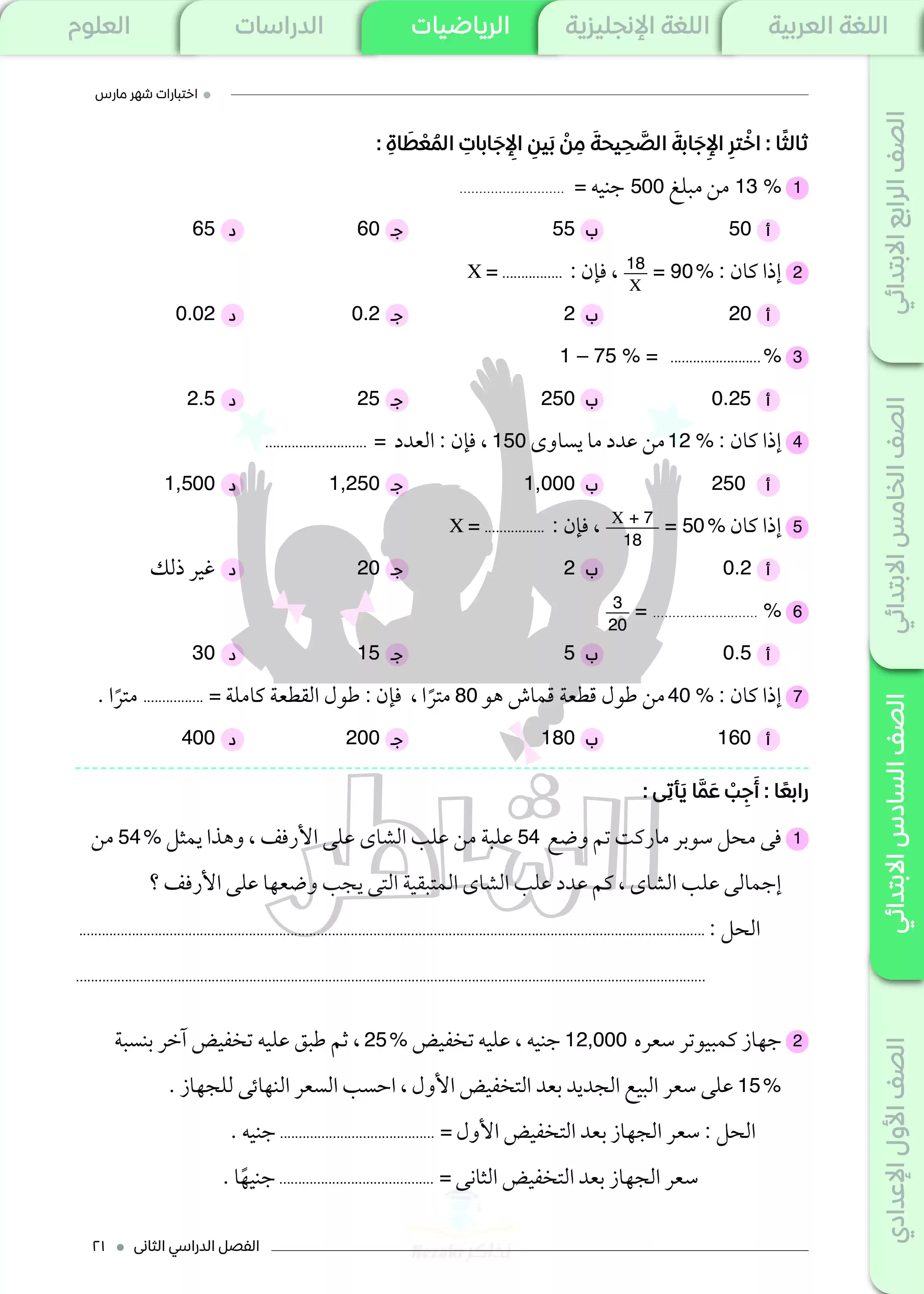 • مراجعة الرياضيات مقرر شهر مارس من كتاب الشاطر سادسة ابتدائي