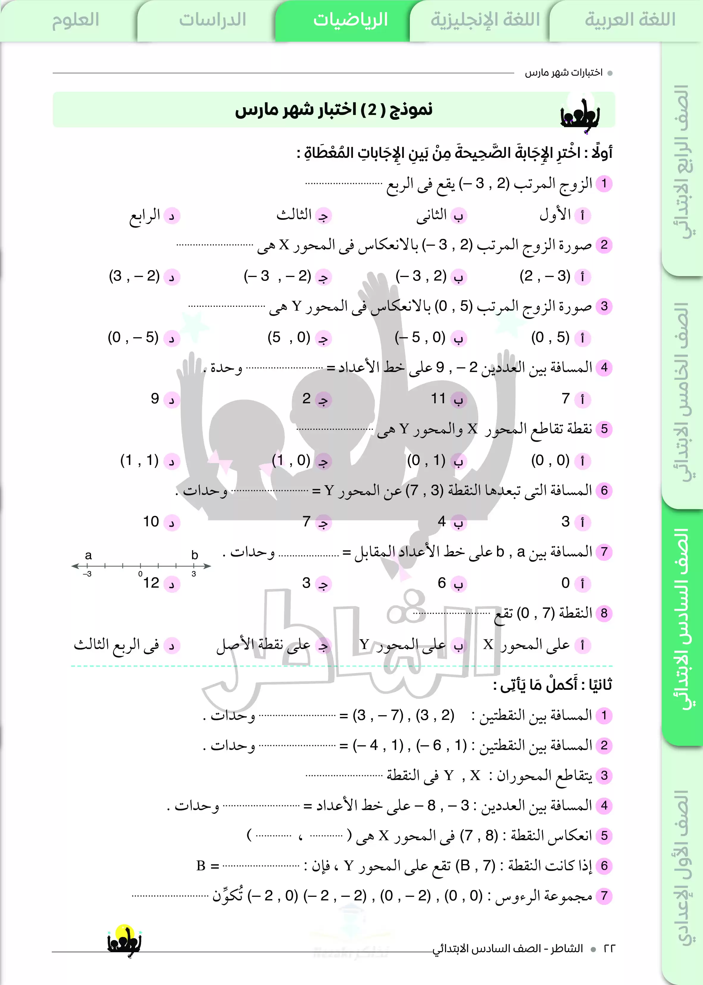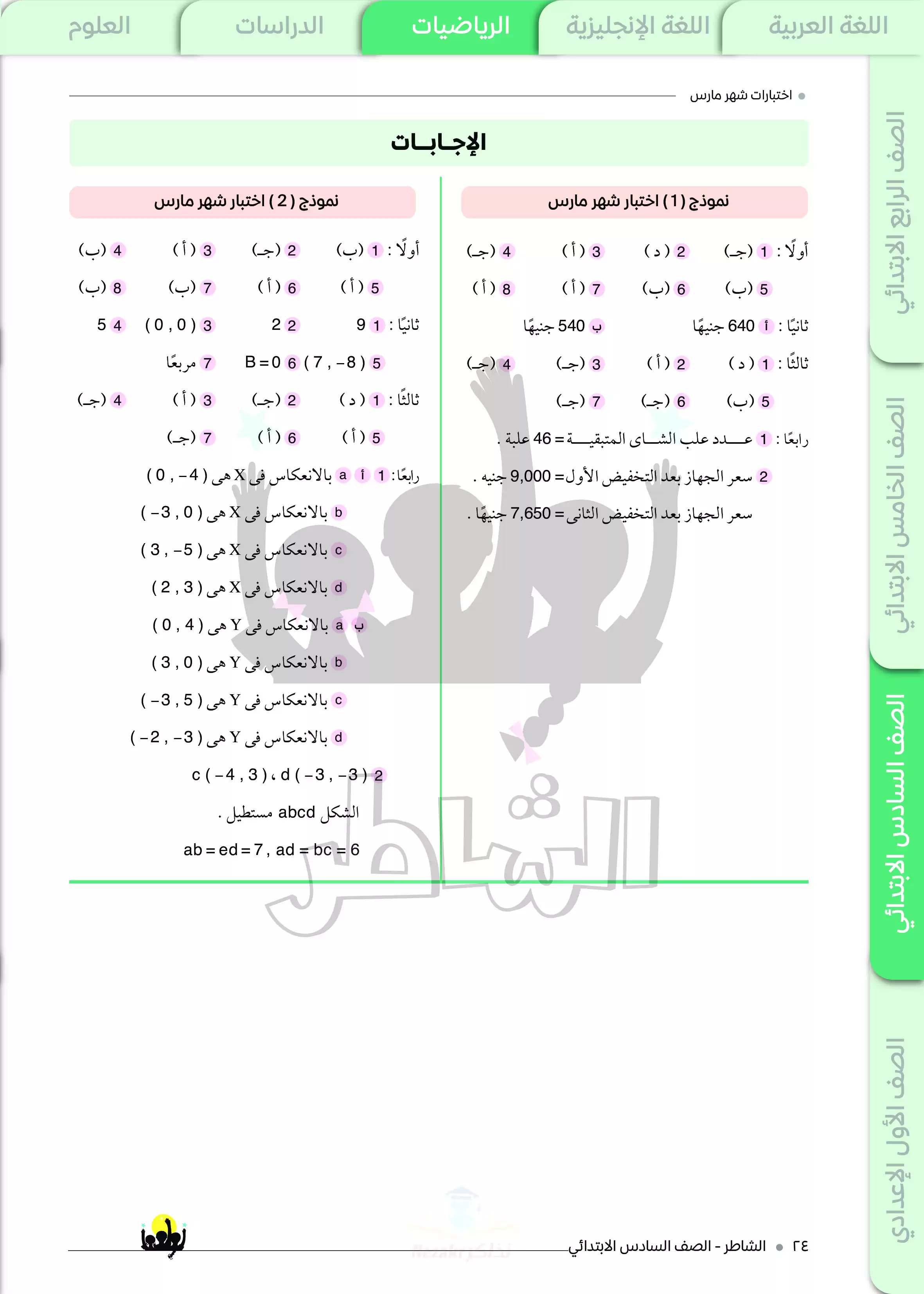 نماذج اختبارات الشاطر في الرياضيات لسادسة ابتدائي منهج شهر مارس 2025 بصيغة PDF