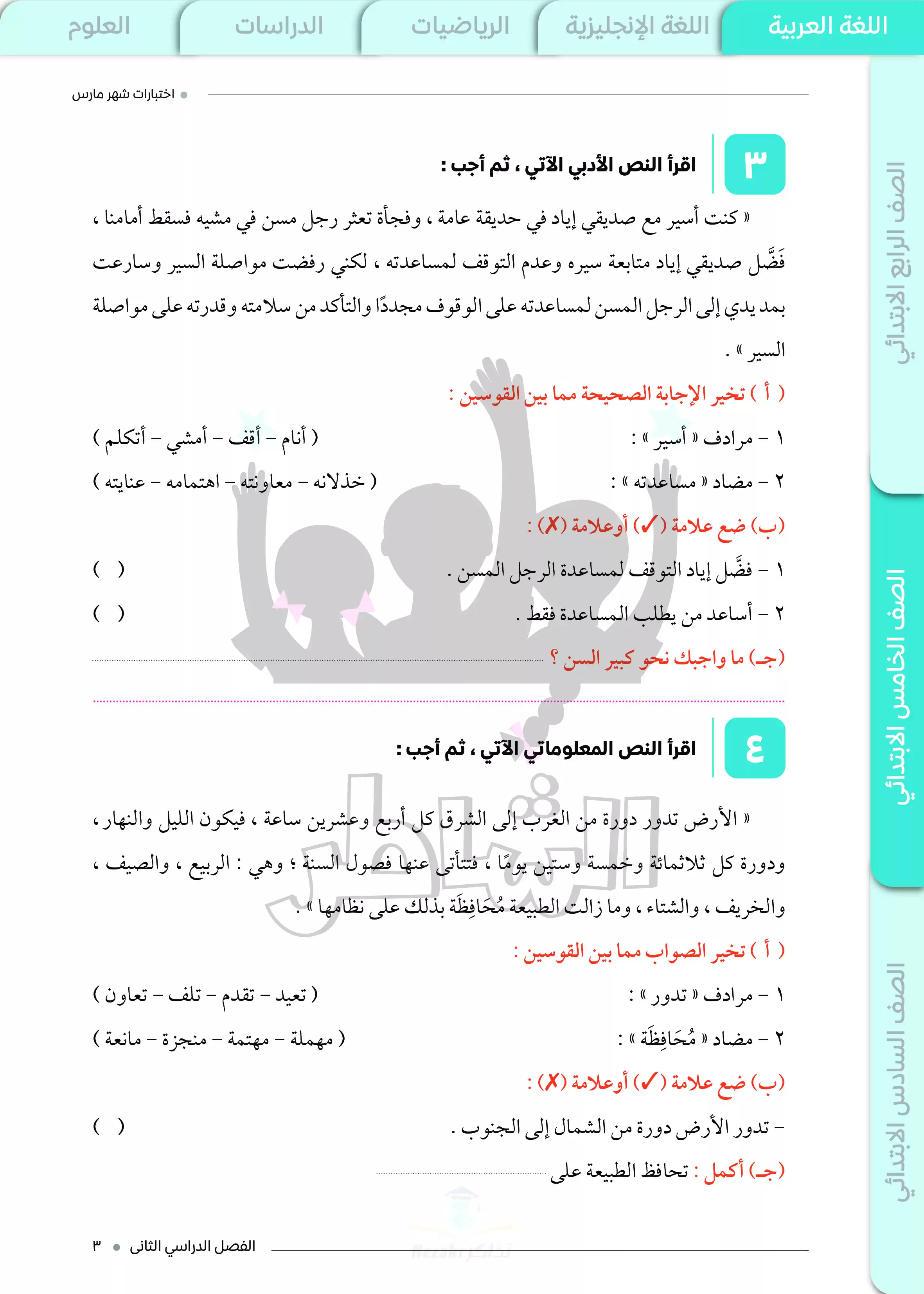 صفحة 3 من 12 صفحة من ملف: اختبارات الشاطر في العربي للصف الخامس الابتدائي مقرر شهر مارس 2025 - Nezakr