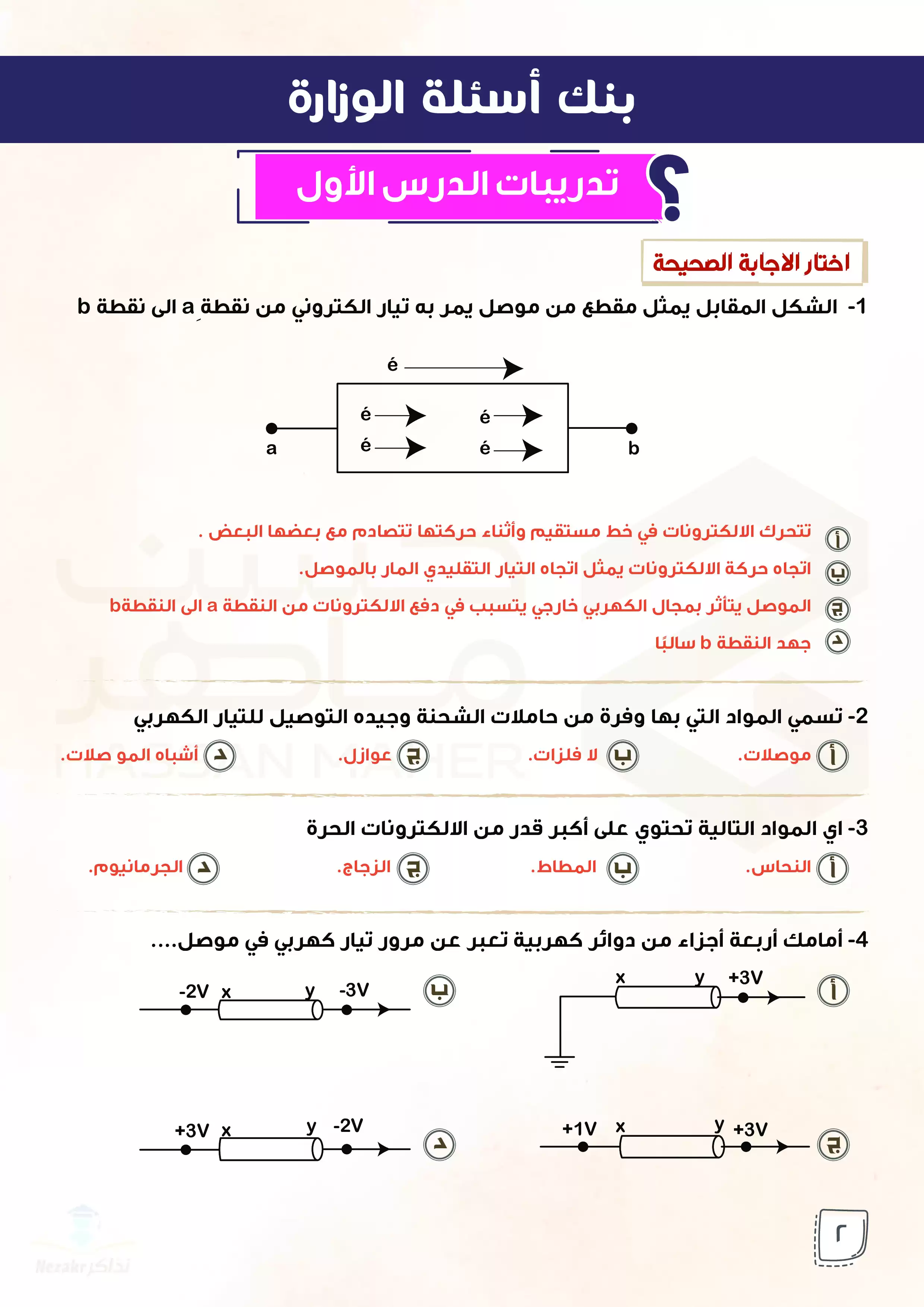 صفحة 2 من 77 صفحة من ملف: بنك أسئلة الوزارة في الفيزياء للصف الثالث الثانوي من إعداد أ حسن ماهر - Nezakr