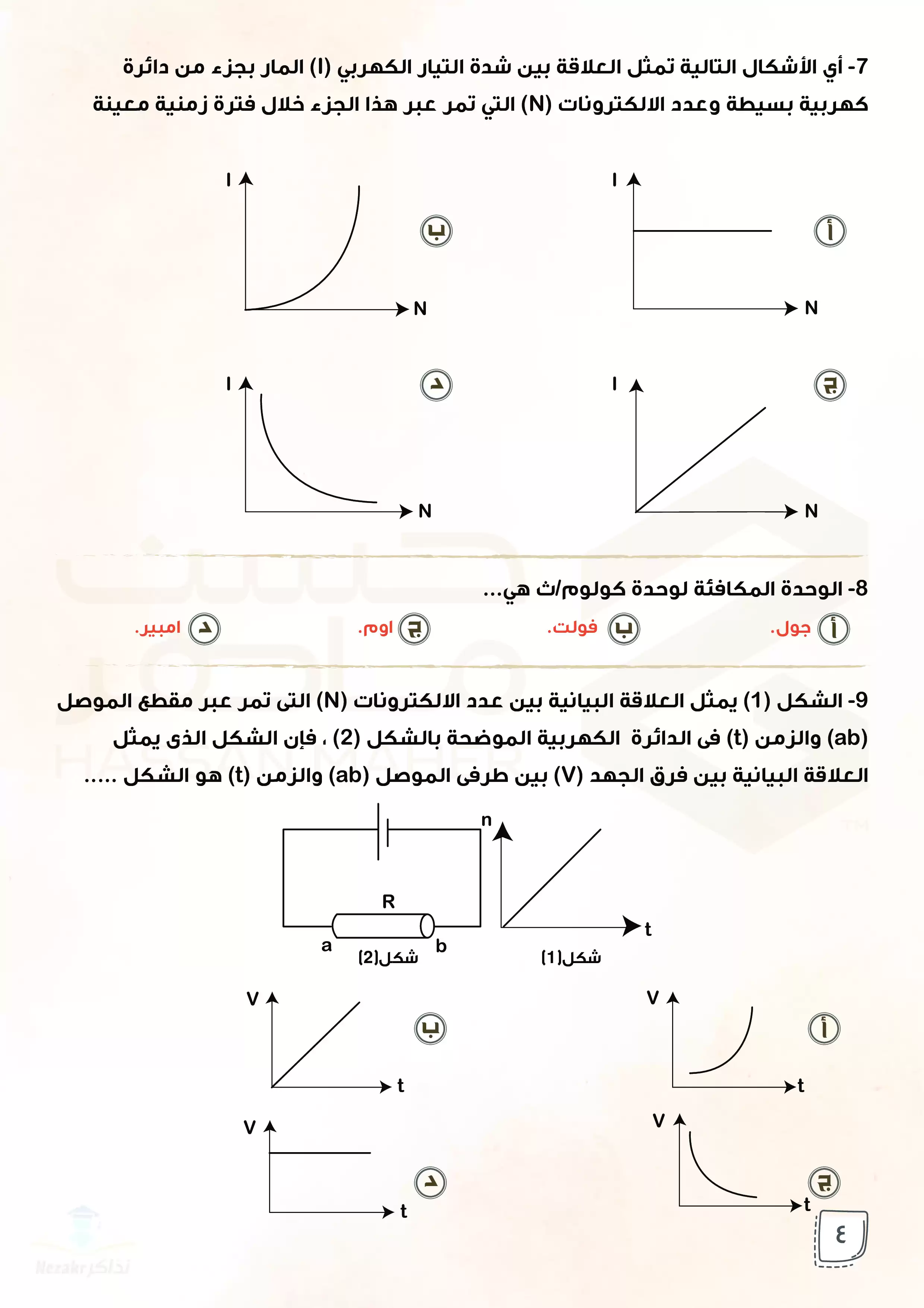 صفحة 4 من 77 صفحة من ملف: بنك أسئلة الوزارة في الفيزياء للصف الثالث الثانوي من إعداد أ حسن ماهر - Nezakr