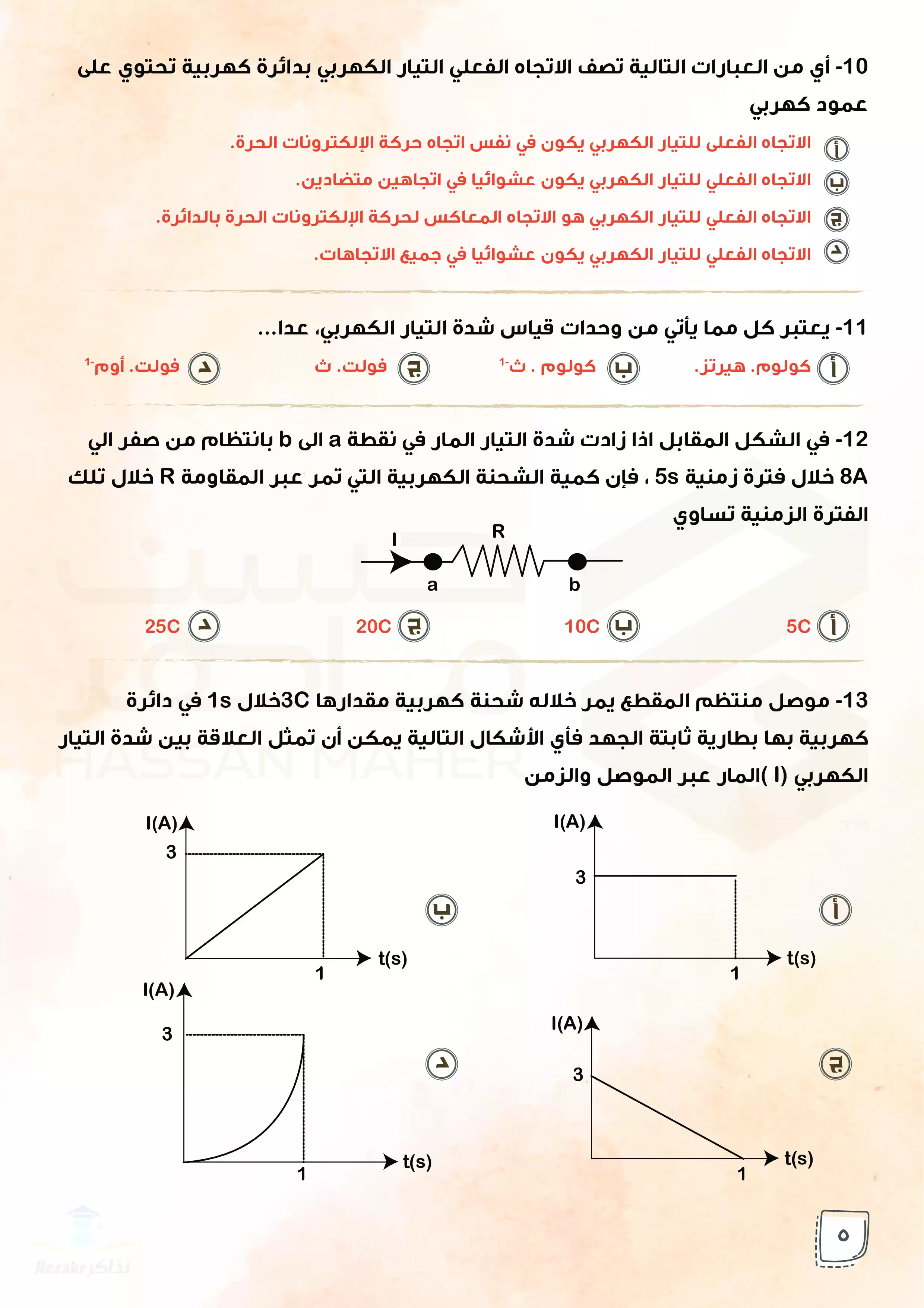 صفحة 5 من 77 صفحة من ملف: بنك أسئلة الوزارة في الفيزياء للصف الثالث الثانوي من إعداد أ حسن ماهر - Nezakr