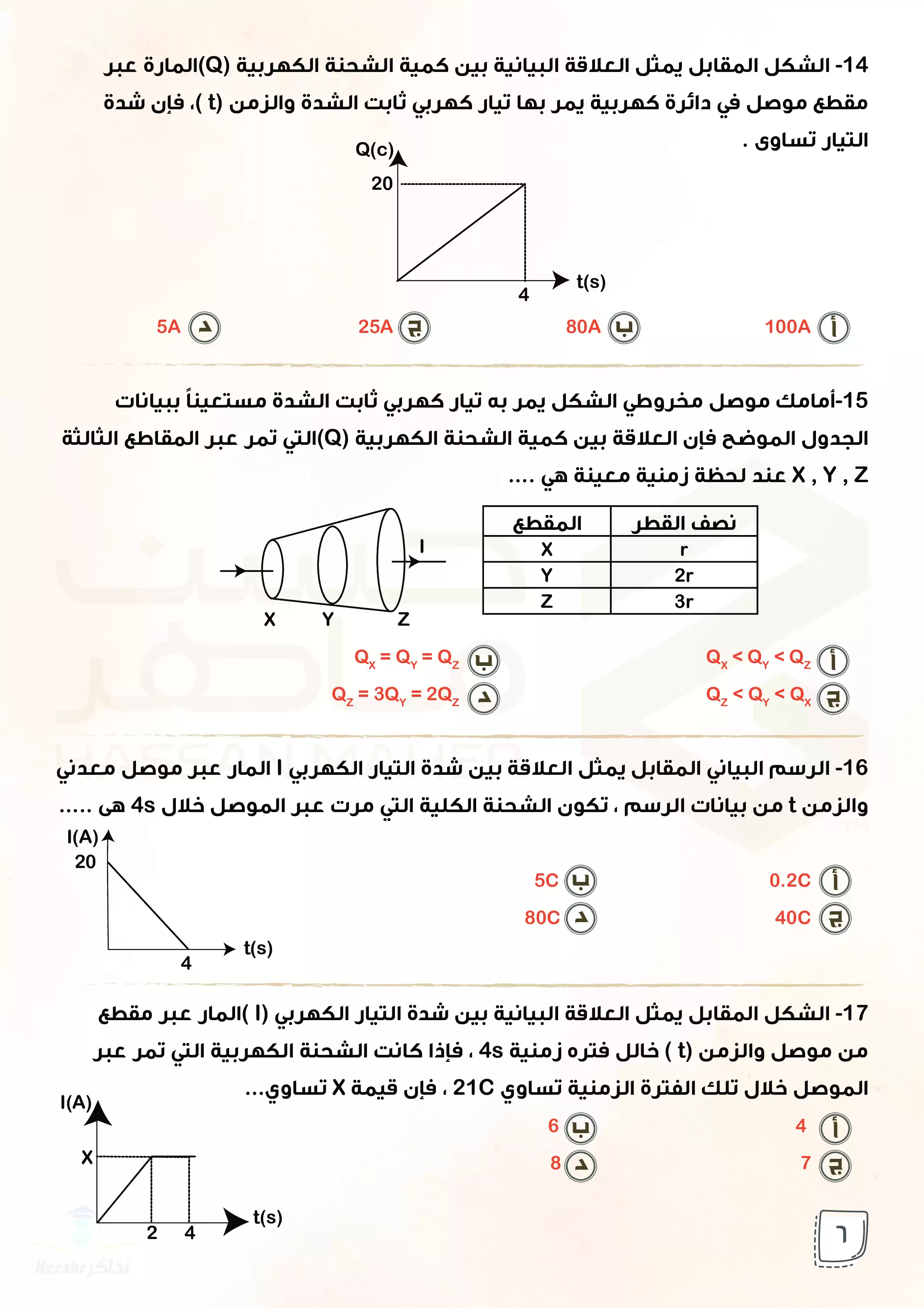 سكرين شوت من الملف: بنك أسئلة الوزارة في الفيزياء للصف الثالث الثانوي من إعداد أ حسن ماهر - Nezakr