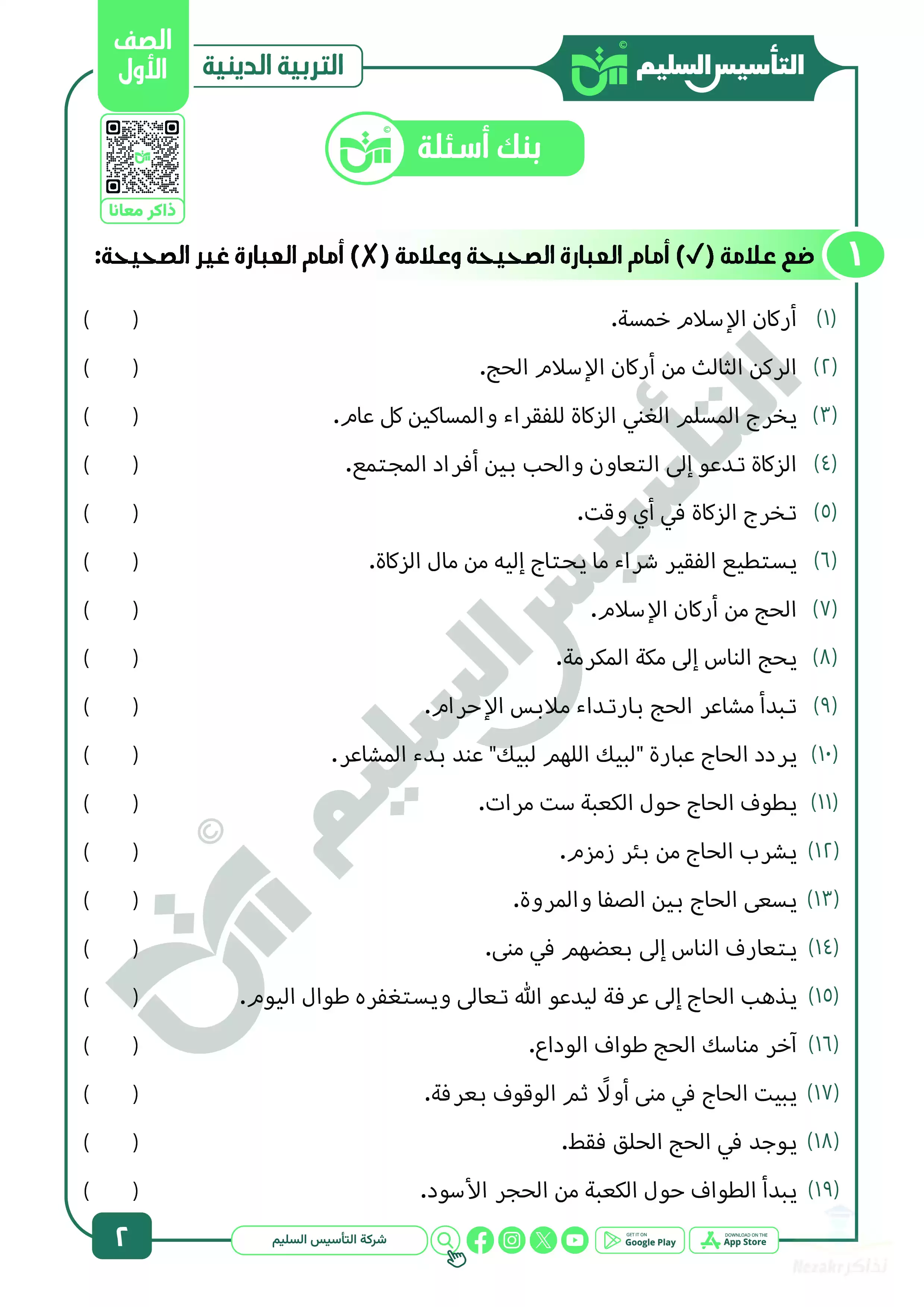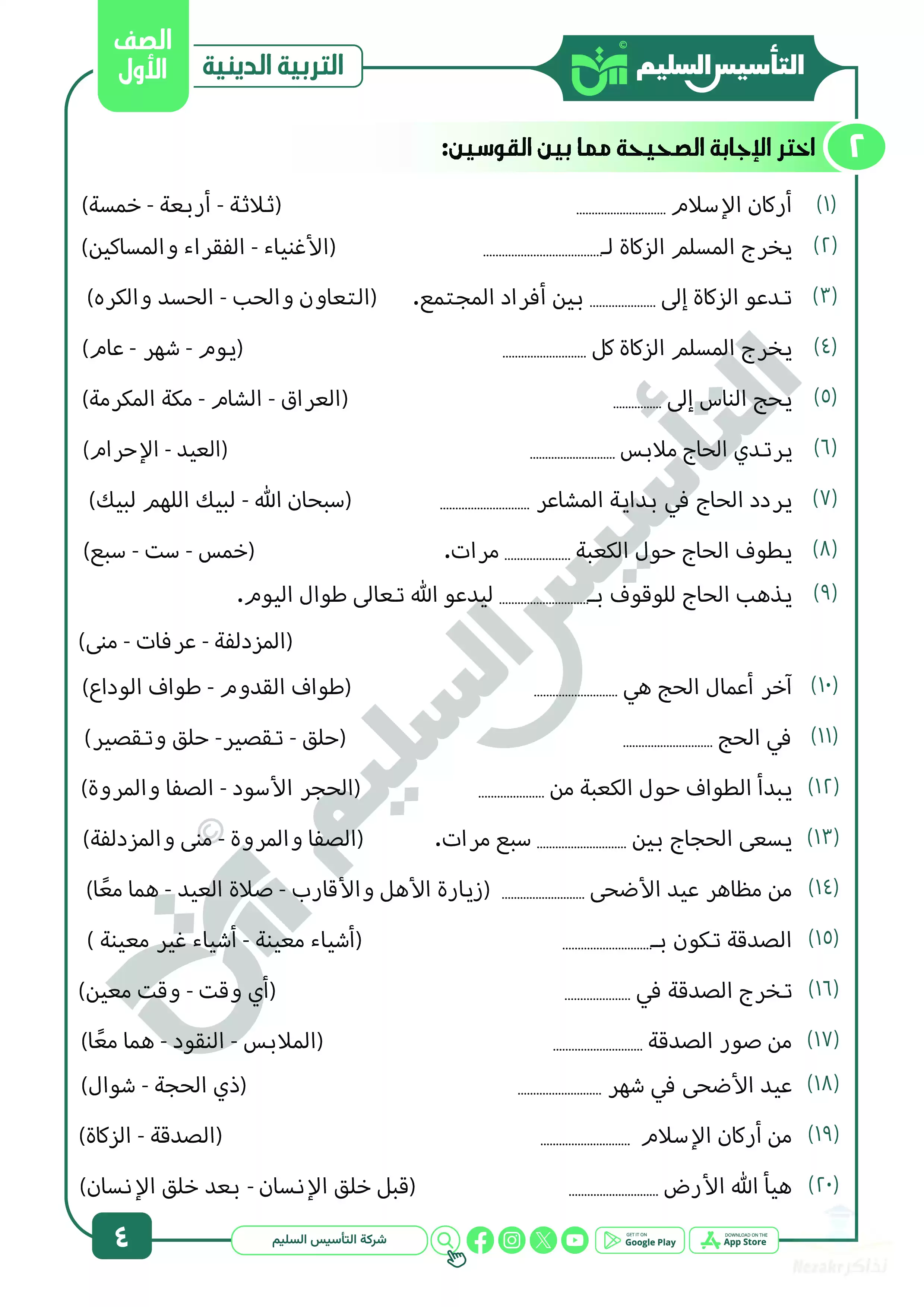 ننشر مراجعة كتاب التأسيس السليم على مقرر منهج التربية الدينية الاسلامية للصف الأول الابتدائي في شهر أبريل للعام الدراسي 2025، وهي مراجعة مميزة بصيغة PDF وبجودة عالية مجانية متاحة للتحميل والتصفح مجاناً، وتتضمن المراجعة اختبارات مجابة على مقرر مادة الدين، وكذلك بنك أسئلة مميز ومجاب على مقرر شهر أبريل في الدين ليتدرب عليها التلاميذ.