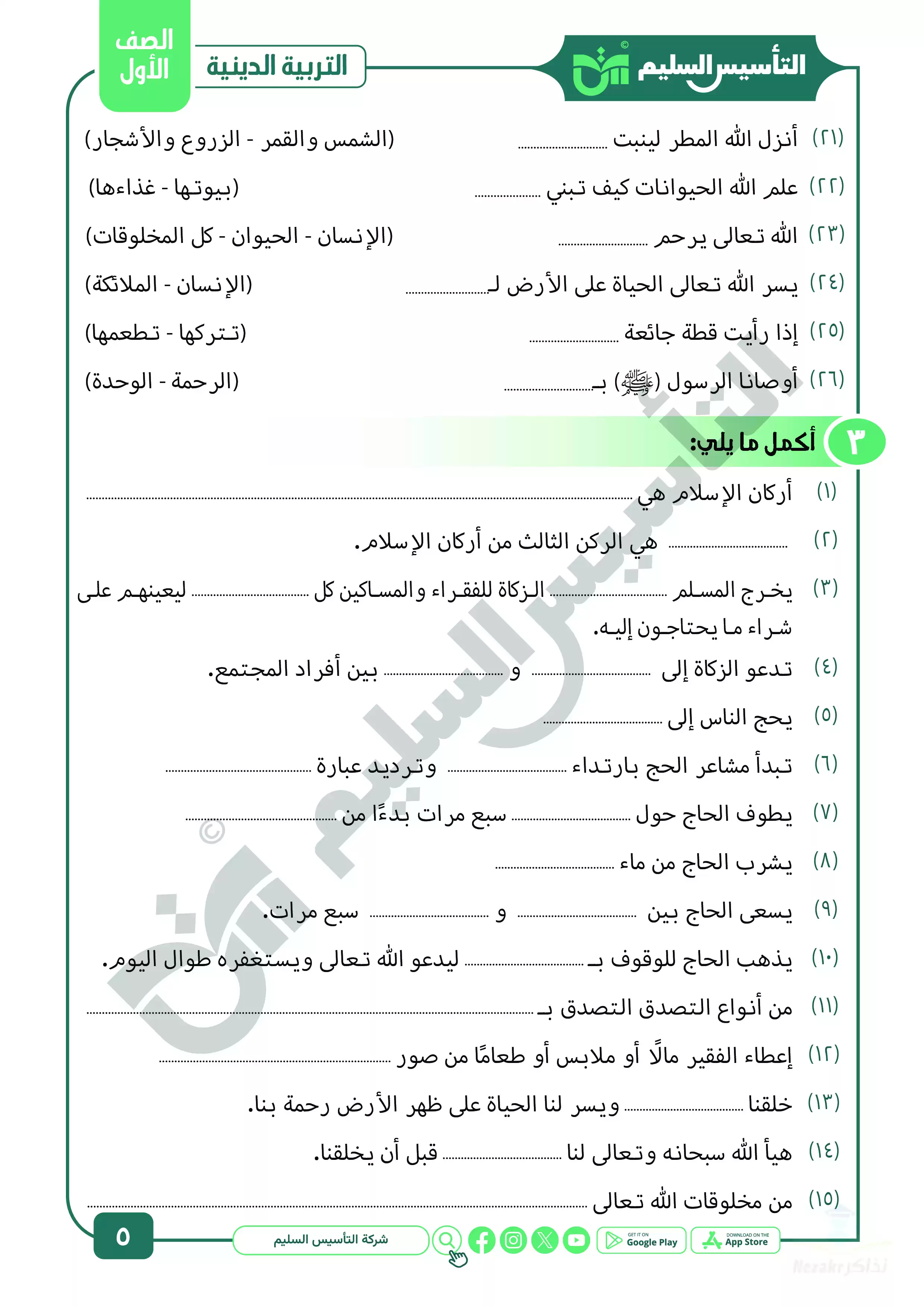 نقدم لكم المزيد من المحتوى من إعداد التأسيس السليم ومقدم إلى الصف الأول الإبتدائي للإطلاع عليه أو تحميله.