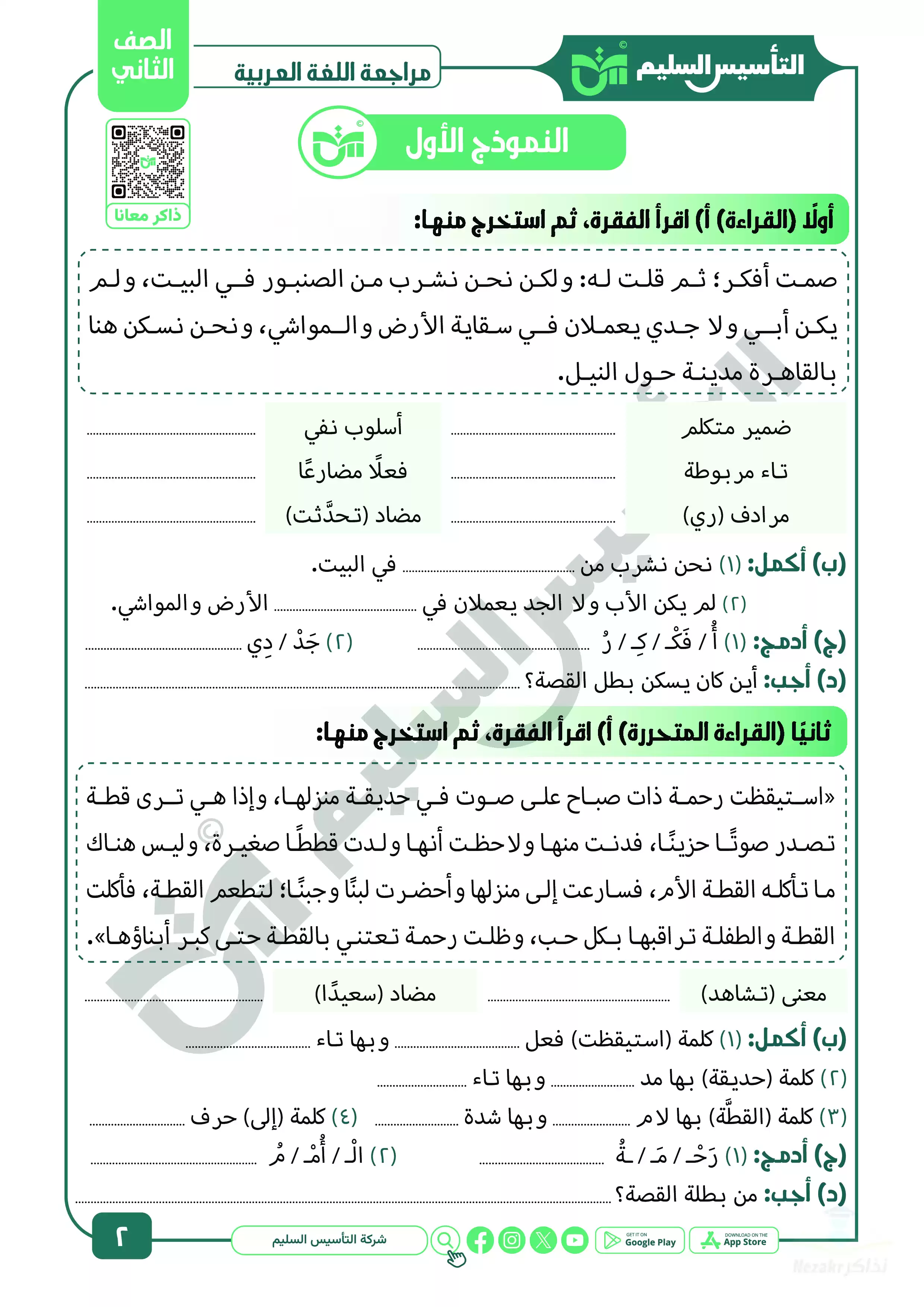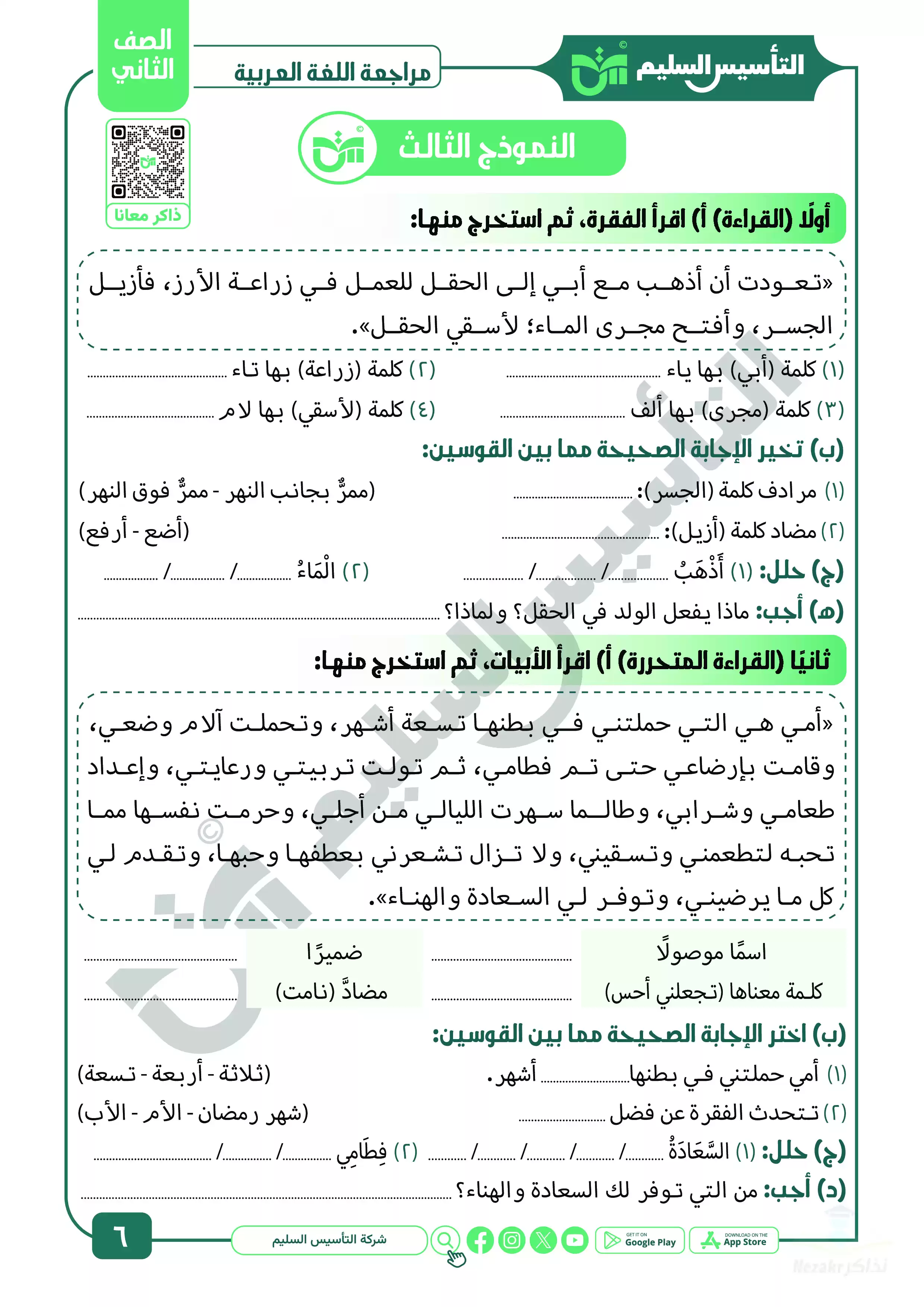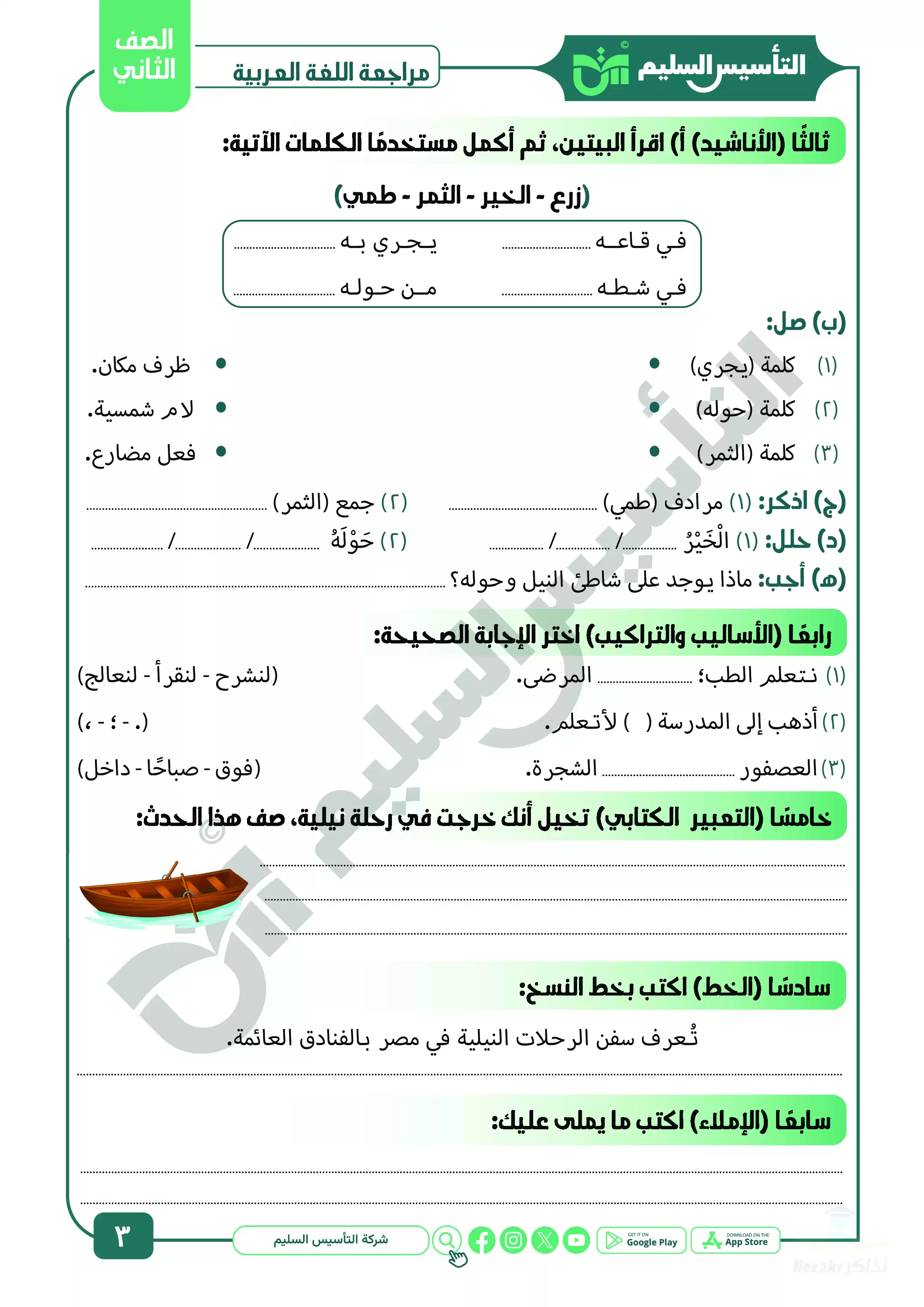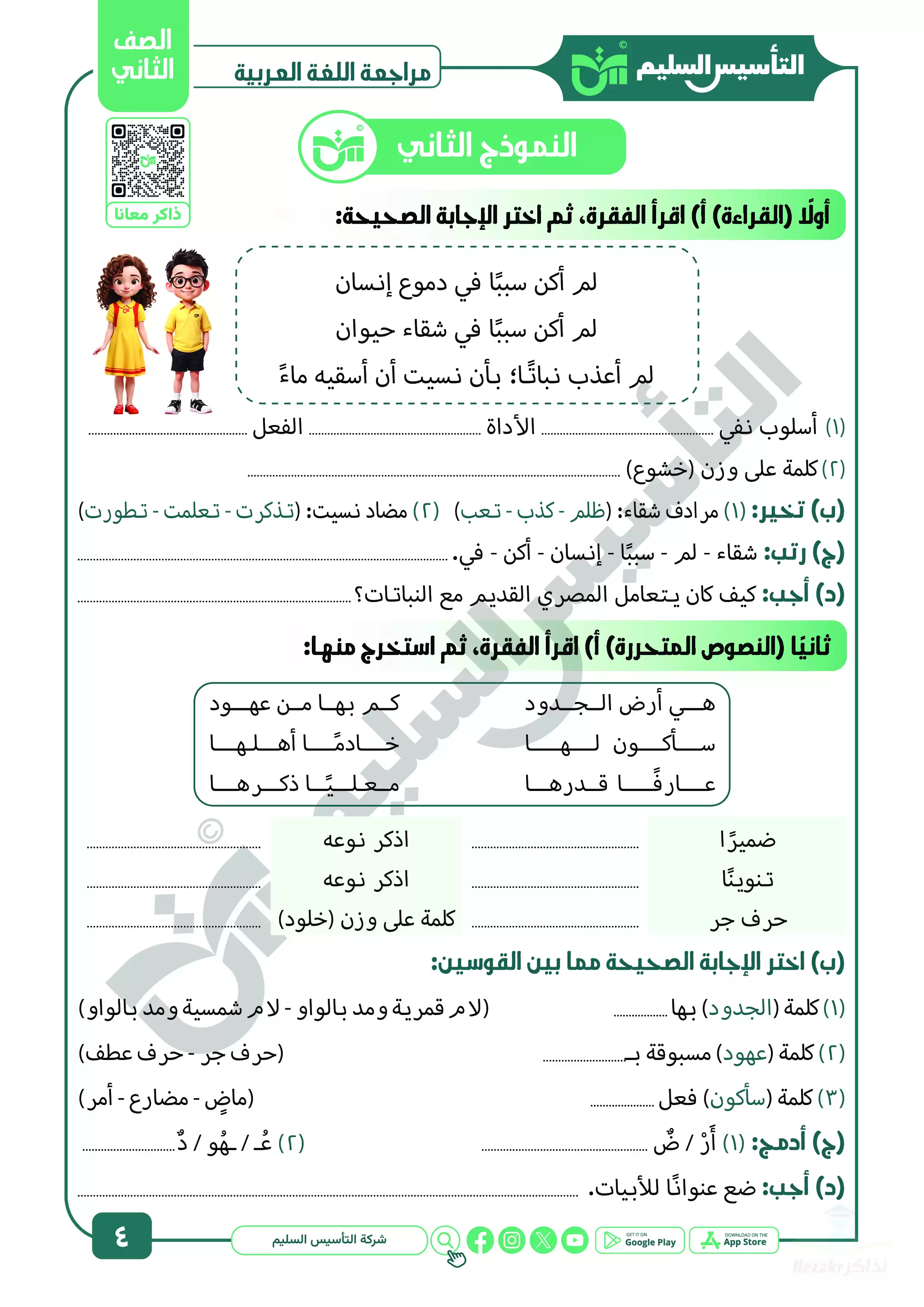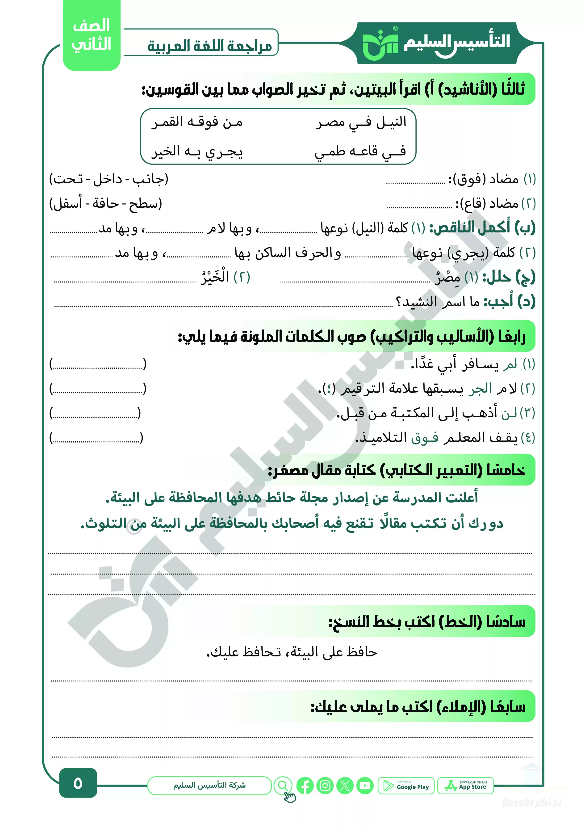 ننشر مراجعة كتاب التأسيس السليم على مقرر مادة اللغة العربية للصف الثاني الابتدائي خلال شهر أبريل للعام الدراسي 2025، وهي مراجعة مميزة من كتاب التأسيس السليم ننشرها بصيغة PDF وبجودة عالية متاحة للتحميل والتصفح مجاناً وللطباعة بسهولة نظراً لجودتها المميزة، وتتضمن المراجعة اختبارات مجابة على مقرر مادة العربي، وكذلك بنك أسئلة مميز ومجاب على مقرر شهر أبريل في اللغة العربية ليتدرب عليها تلاميذ الصف الثاني الابتدائي.
