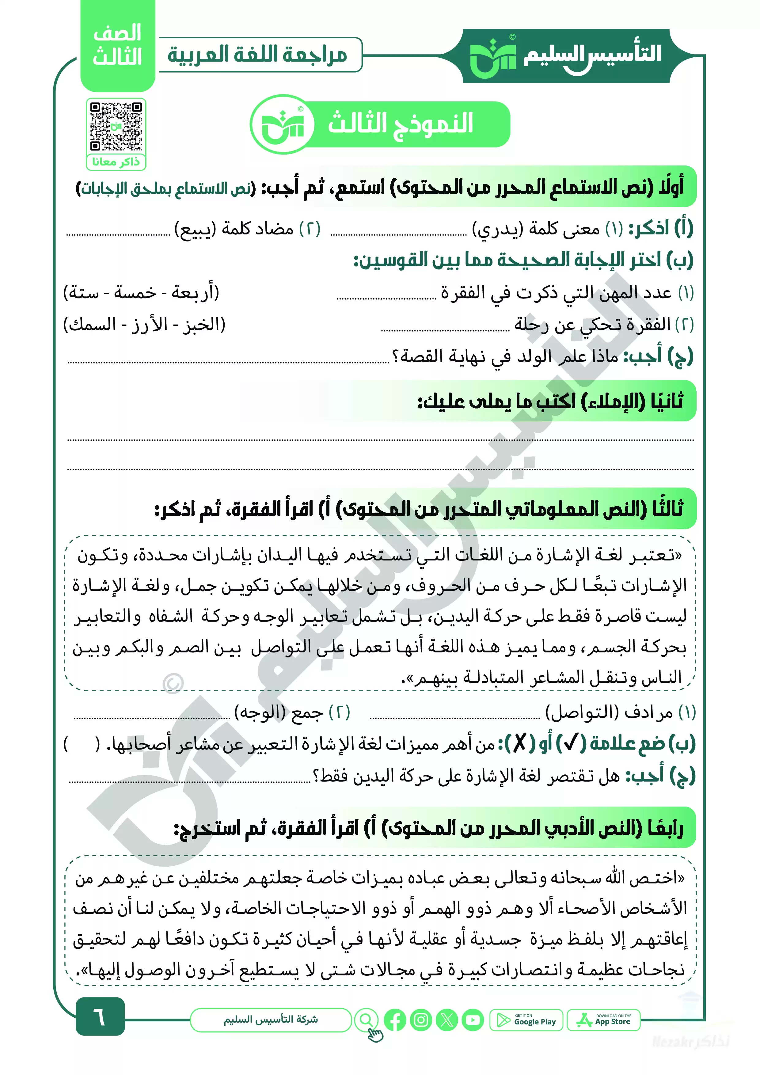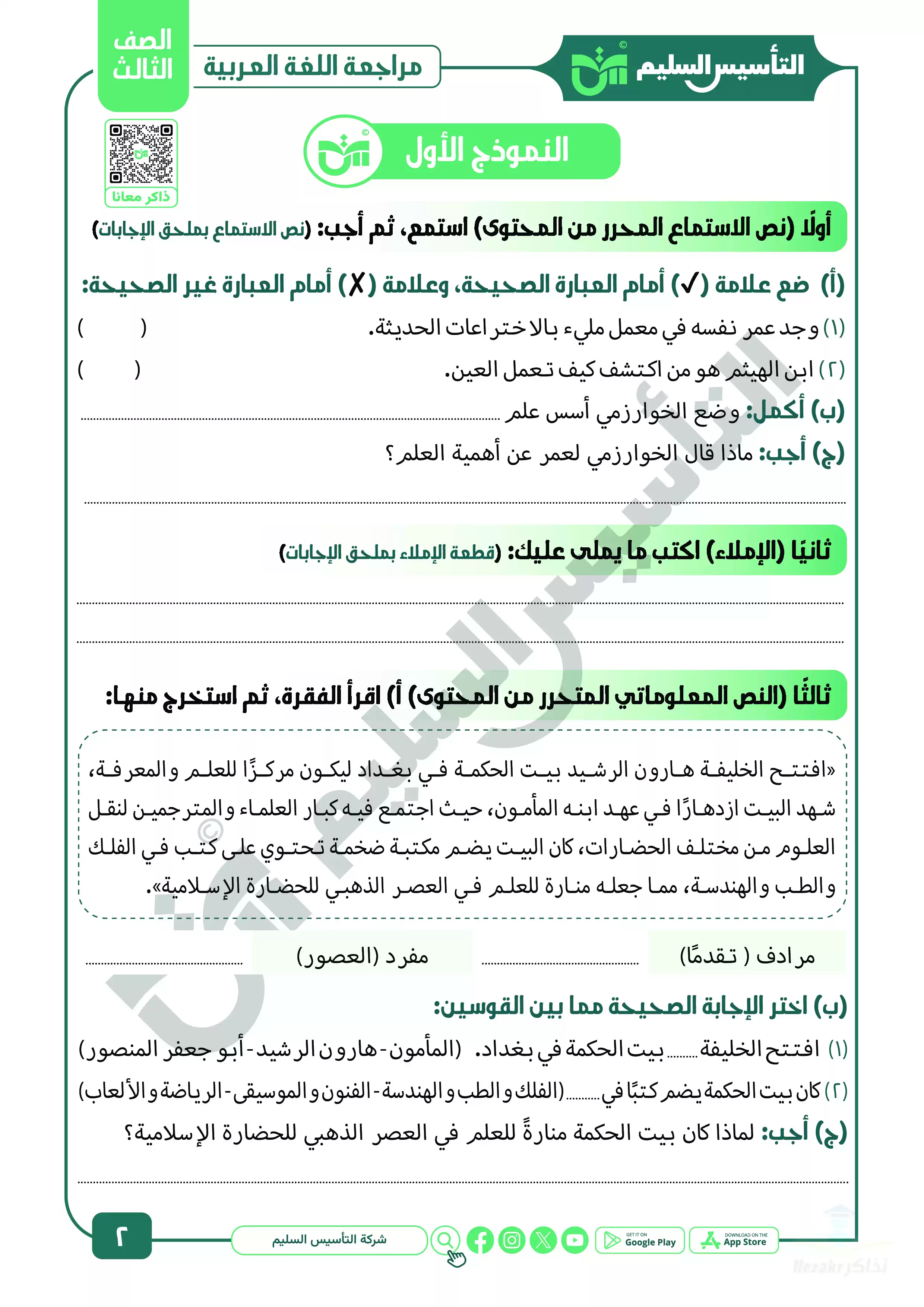 نقدم لكم المزيد من المحتوى من إعداد التأسيس السليم ومقدم إلى الصف الثالث الإبتدائي للإطلاع عليه أو تحميله.