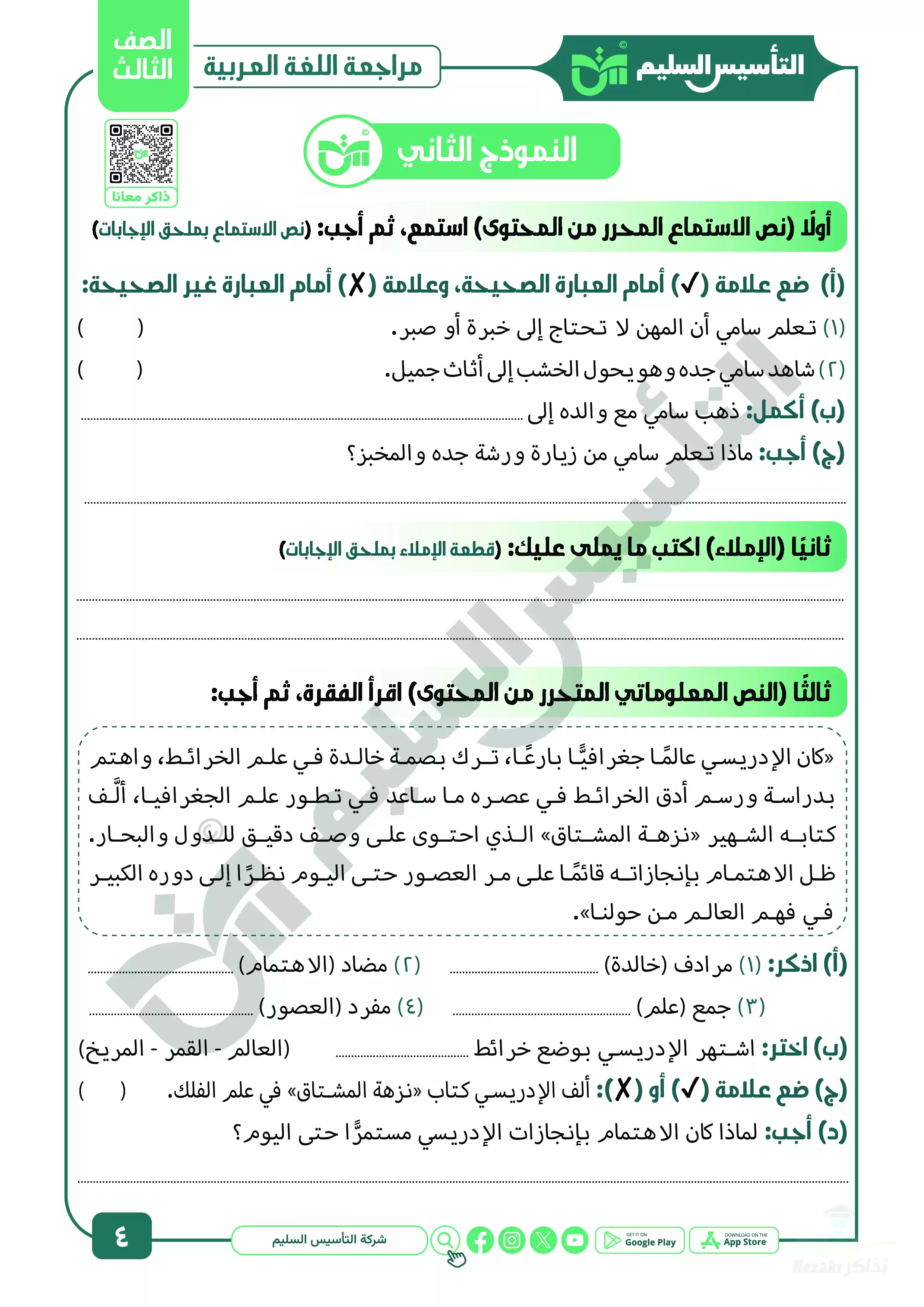 صفحة 4 من 15 صفحة من ملف: مراجعة شهر ابريل في العربي للصف الثالث الابتدائي من التأسيس السليم - Nezakr