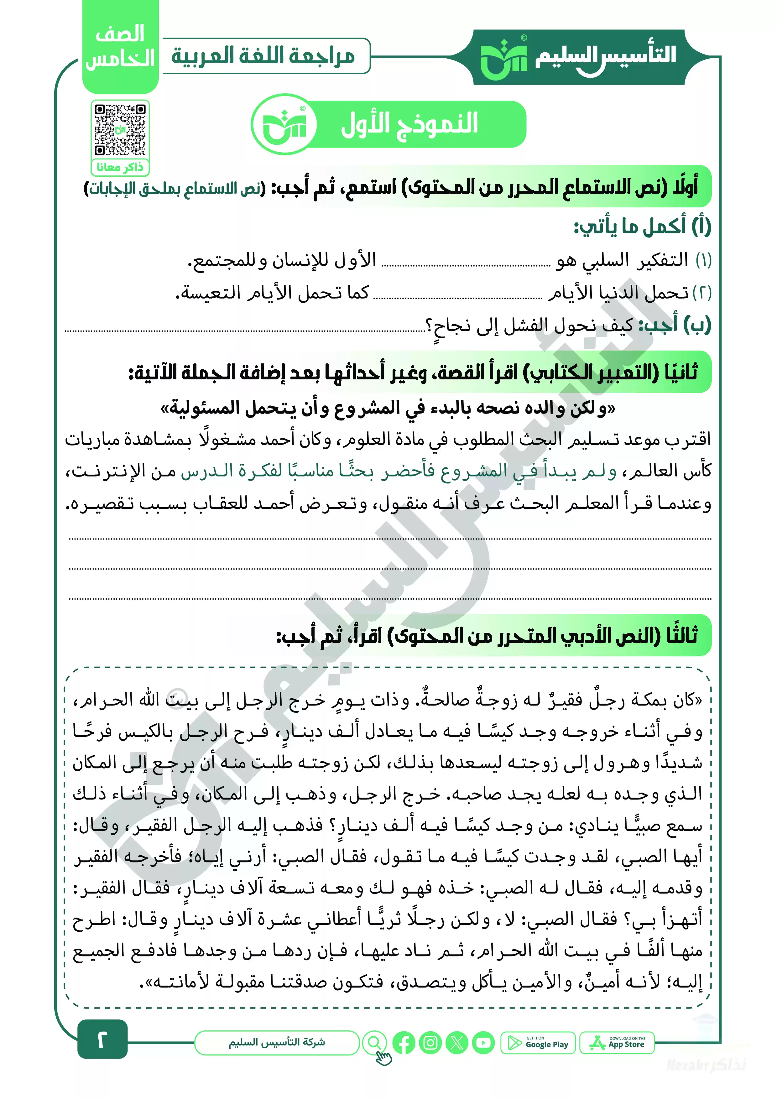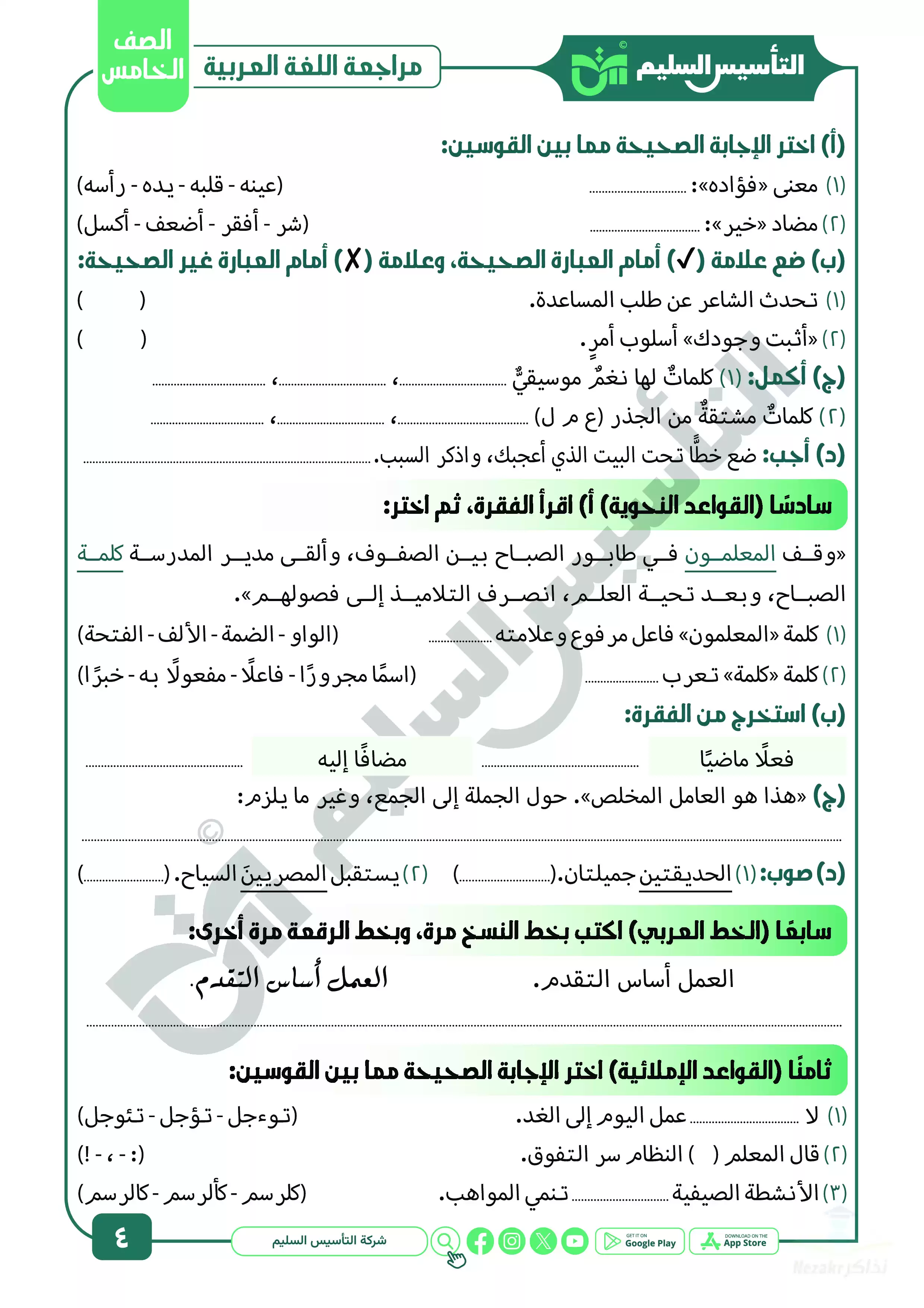 • مراجعة شهر ابريل في العربي لخامسة ابتدائي من كتاب التأسيس السليم