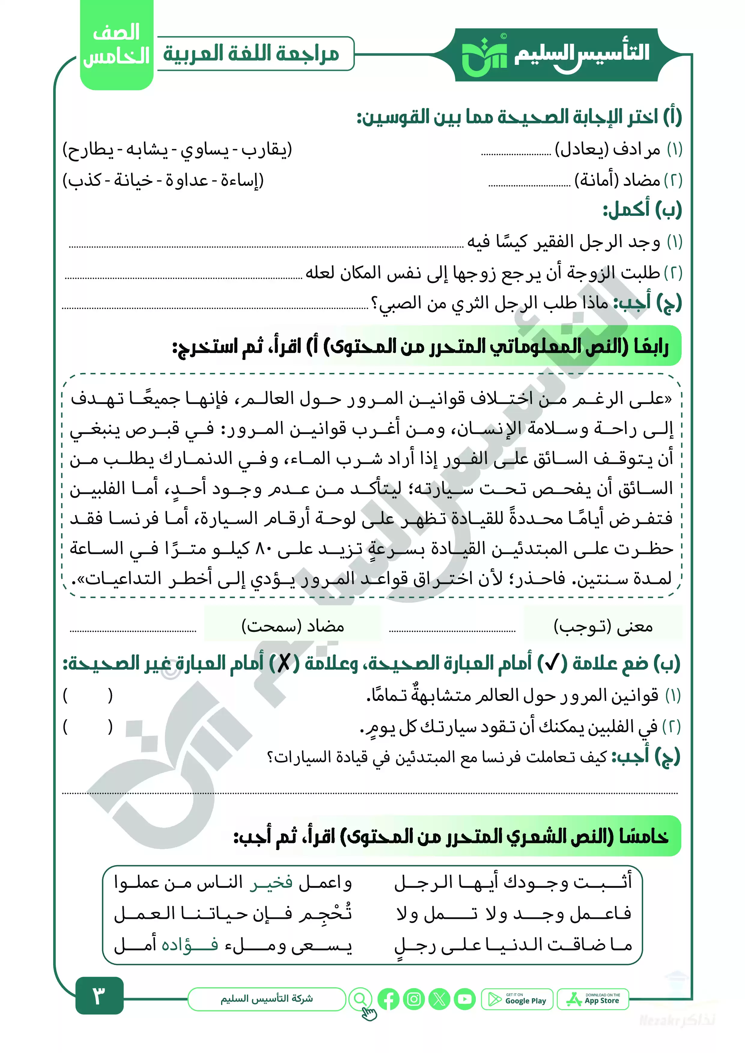 صفحة 3 من 13 صفحة من ملف: مراجعة شهر ابريل في العربي للصف الخامس الابتدائي من التأسيس السليم - Nezakr