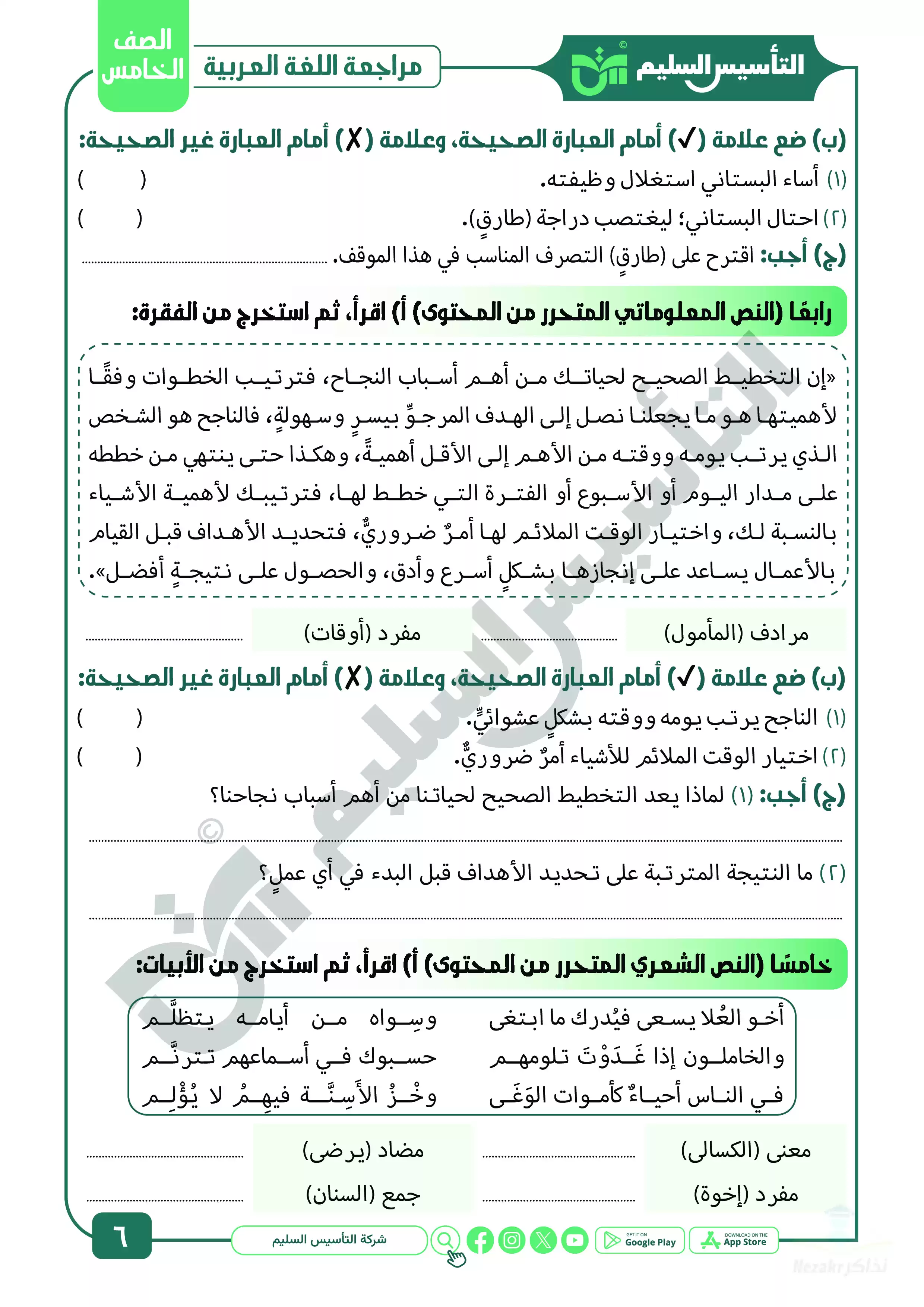 صفحة 6 من 13 صفحة من ملف: مراجعة شهر ابريل في العربي للصف الخامس الابتدائي من التأسيس السليم - Nezakr