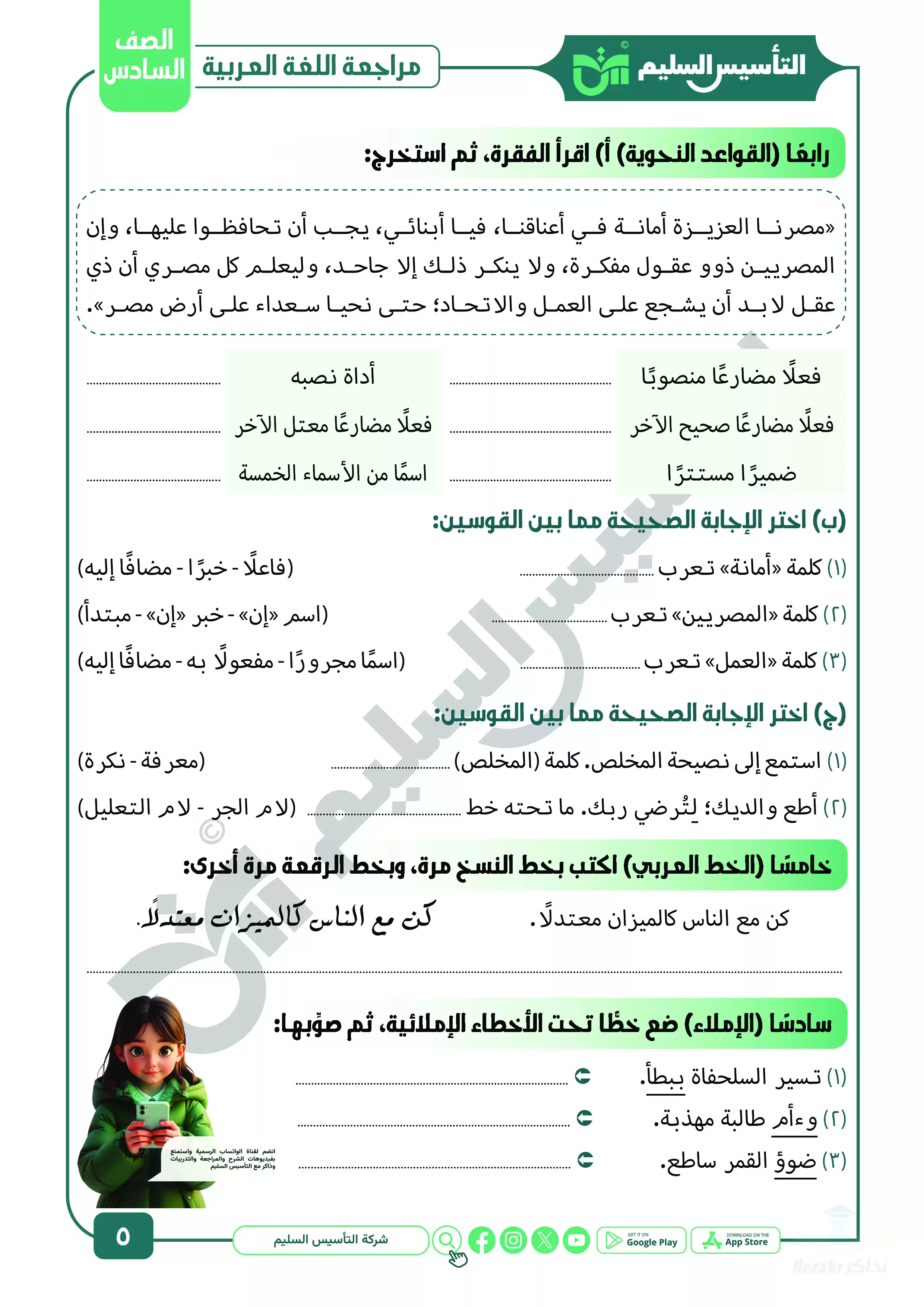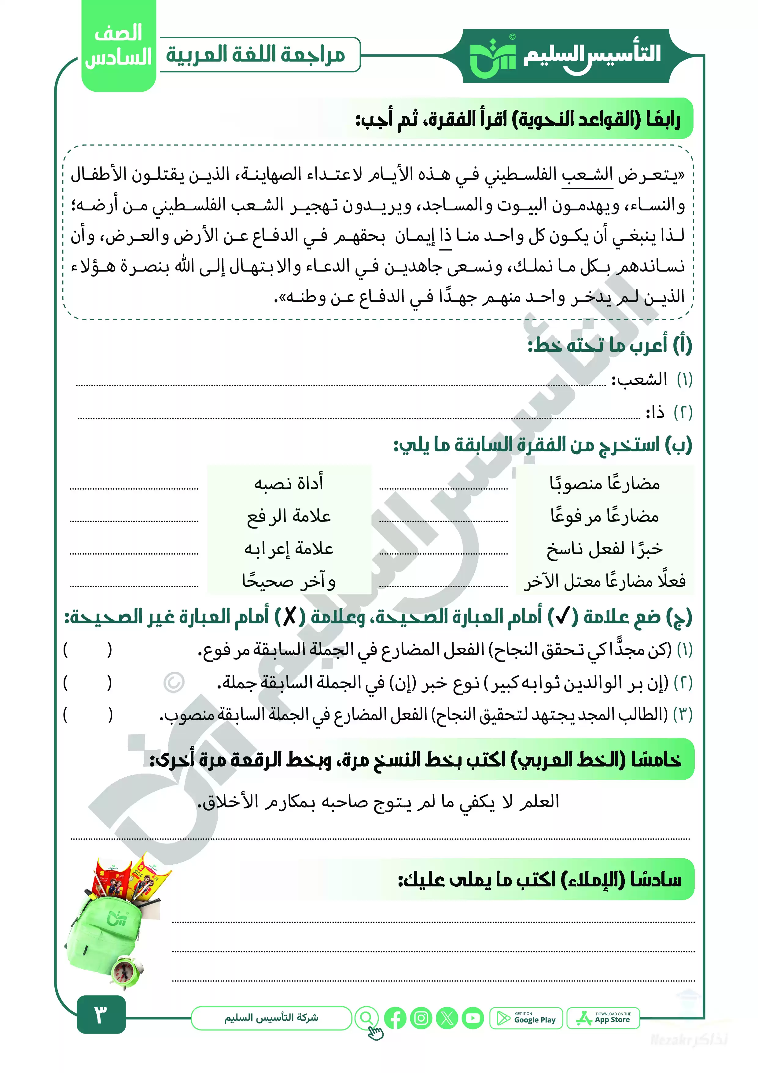 الصف السادس الإبتدائي > اللغة العربية > مراجعة مادة اللغة العربية لسادسة ابتدائي أزهري منهج شهر أبريل 2025 من كتاب التأسيس السليم بصيغة PDF