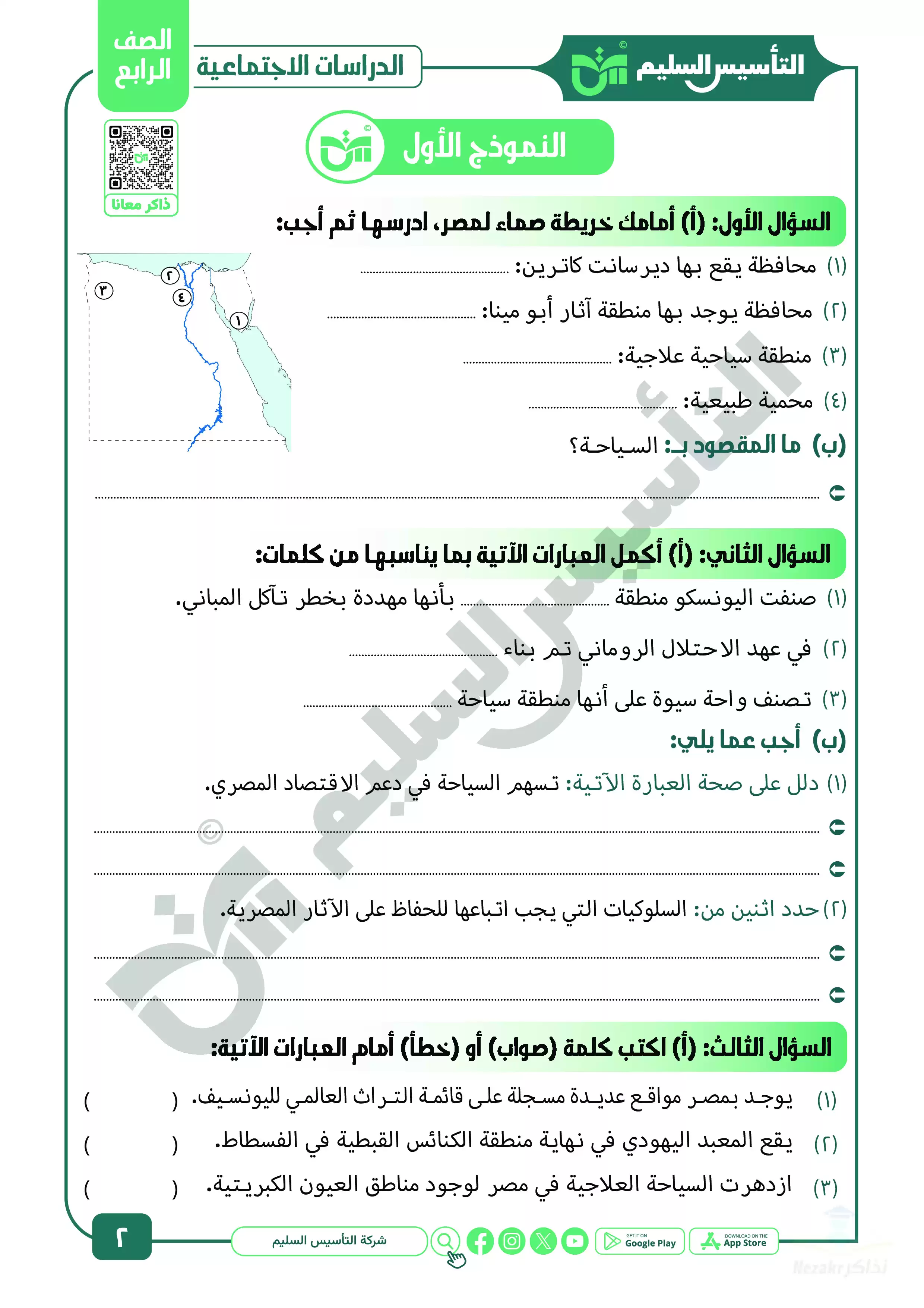 صفحة 2 من 39 صفحة من ملف: مراجعة شهر ابريل في الدراسات الاجتماعية للصف الرابع الابتدائي من التأسيس السليم - Nezakr