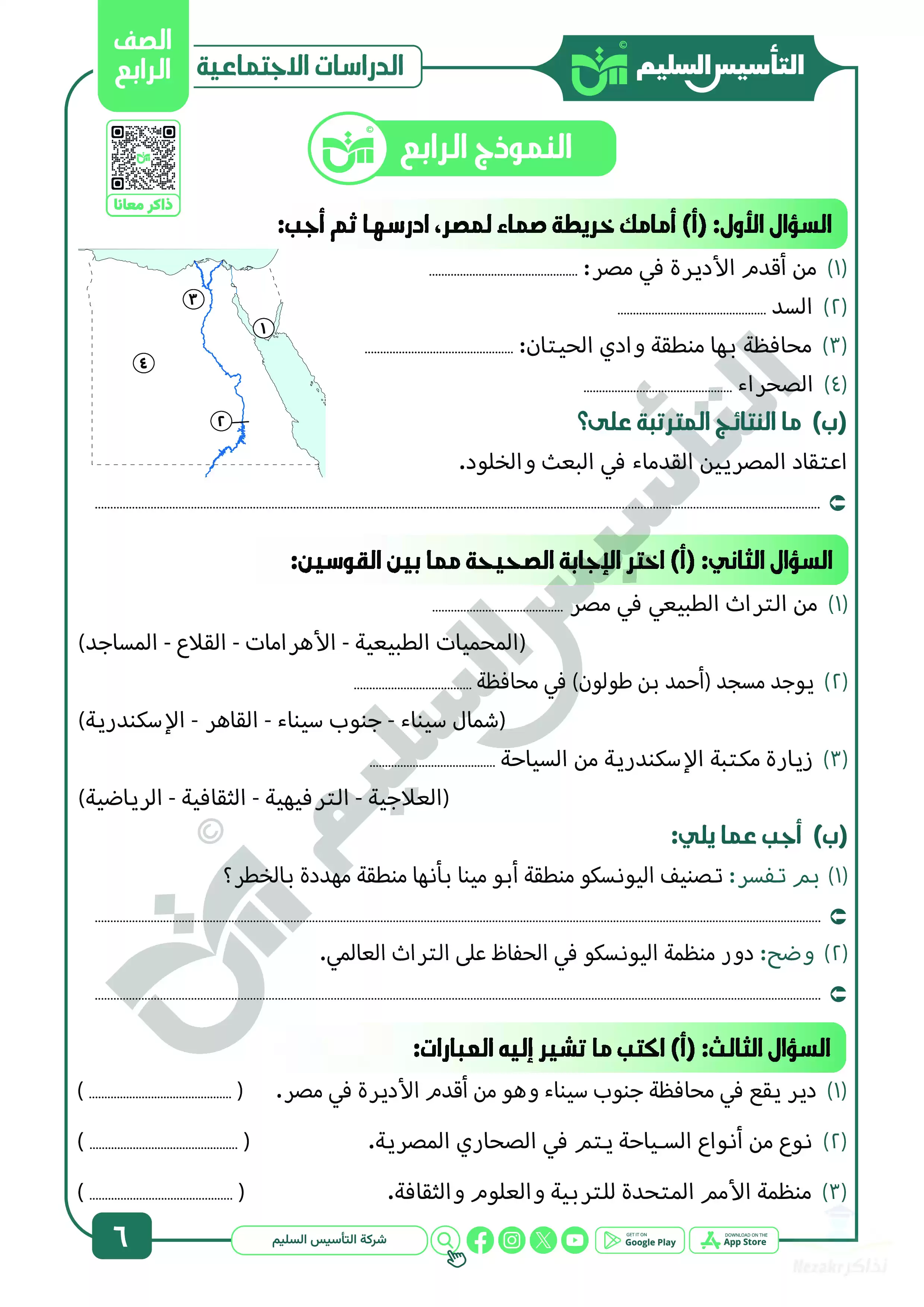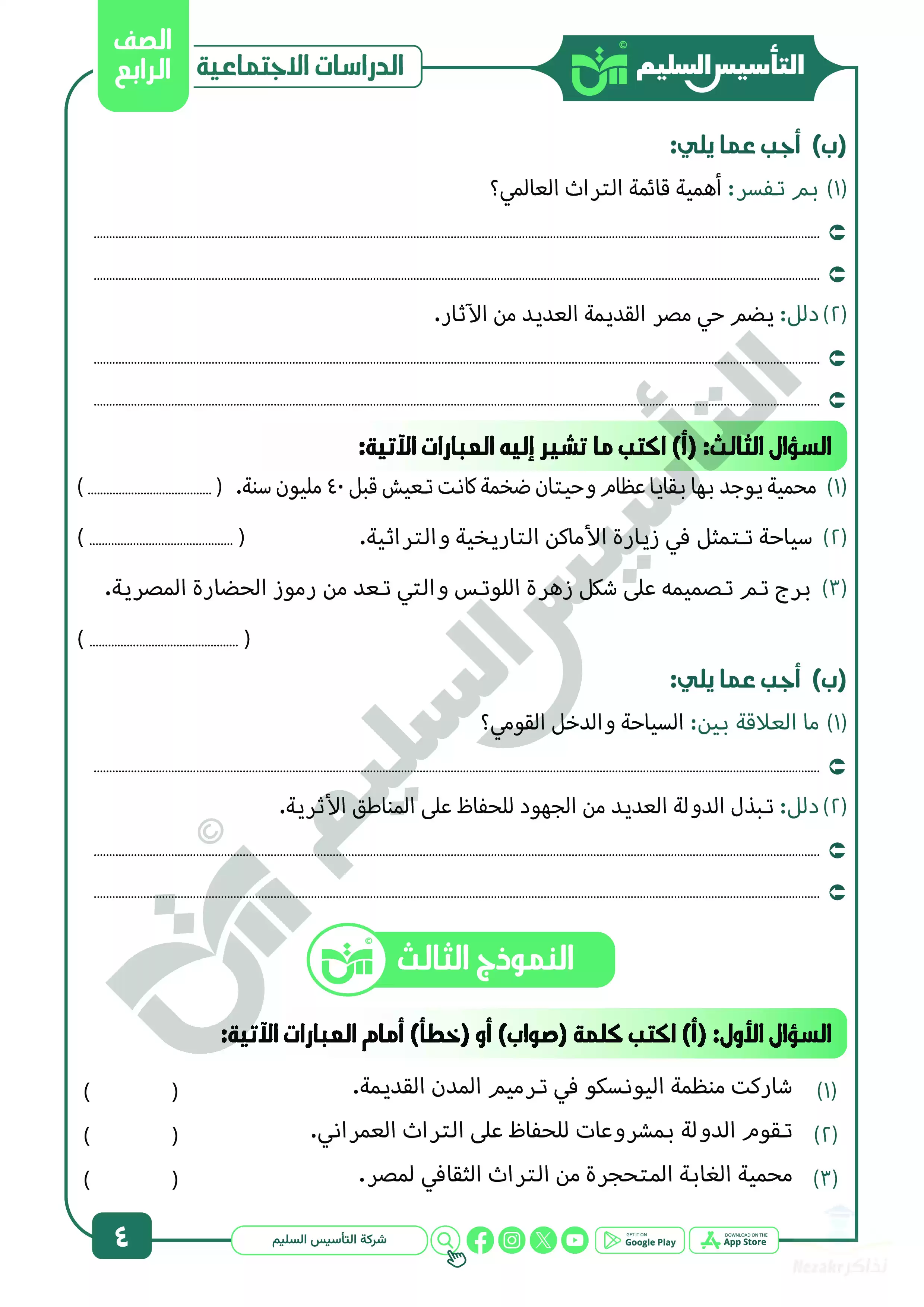 صفحة 4 من 39 صفحة من ملف: مراجعة شهر ابريل في الدراسات الاجتماعية للصف الرابع الابتدائي من التأسيس السليم - Nezakr
