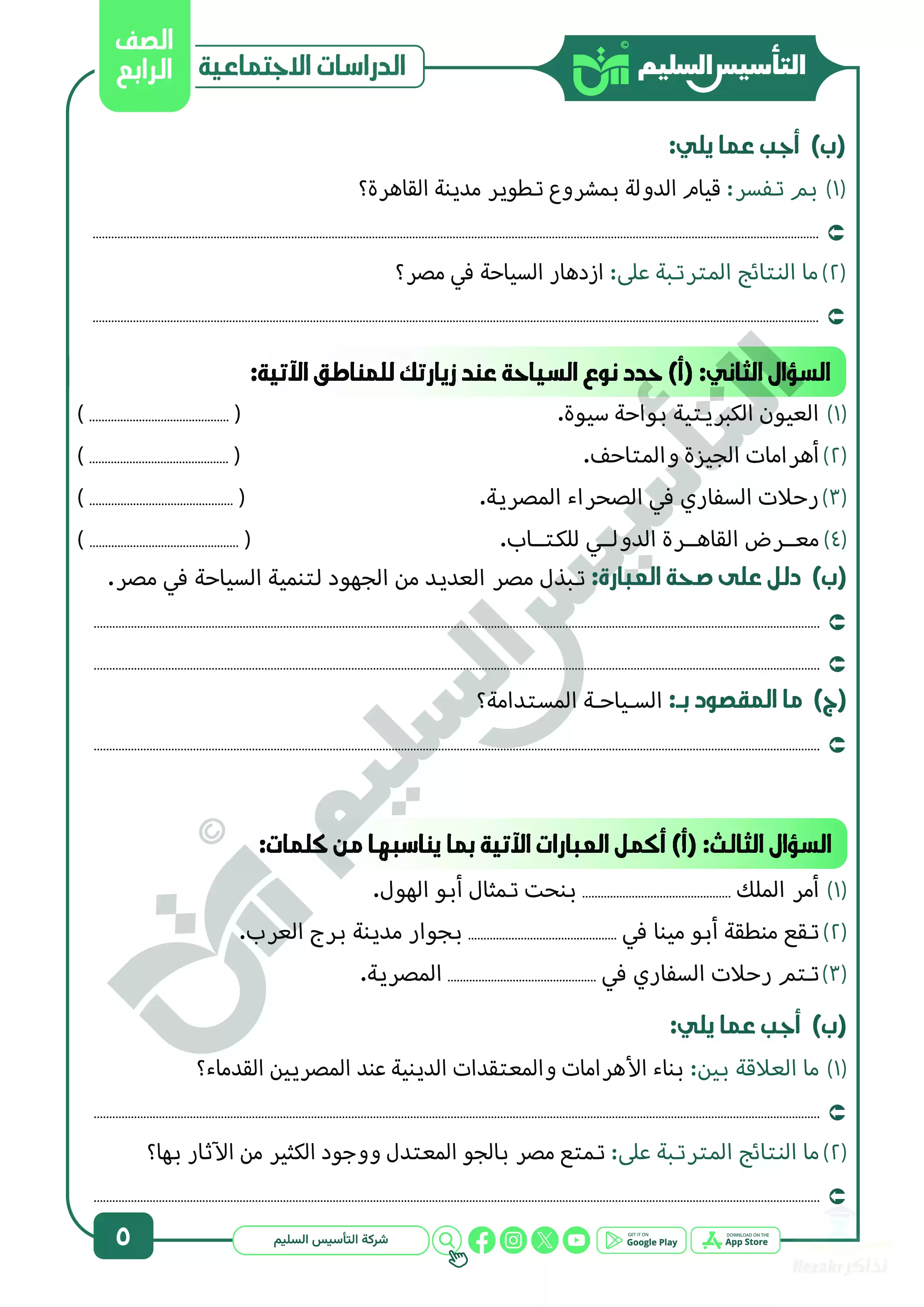 صفحة 5 من 39 صفحة من ملف: مراجعة شهر ابريل في الدراسات الاجتماعية للصف الرابع الابتدائي من التأسيس السليم - Nezakr