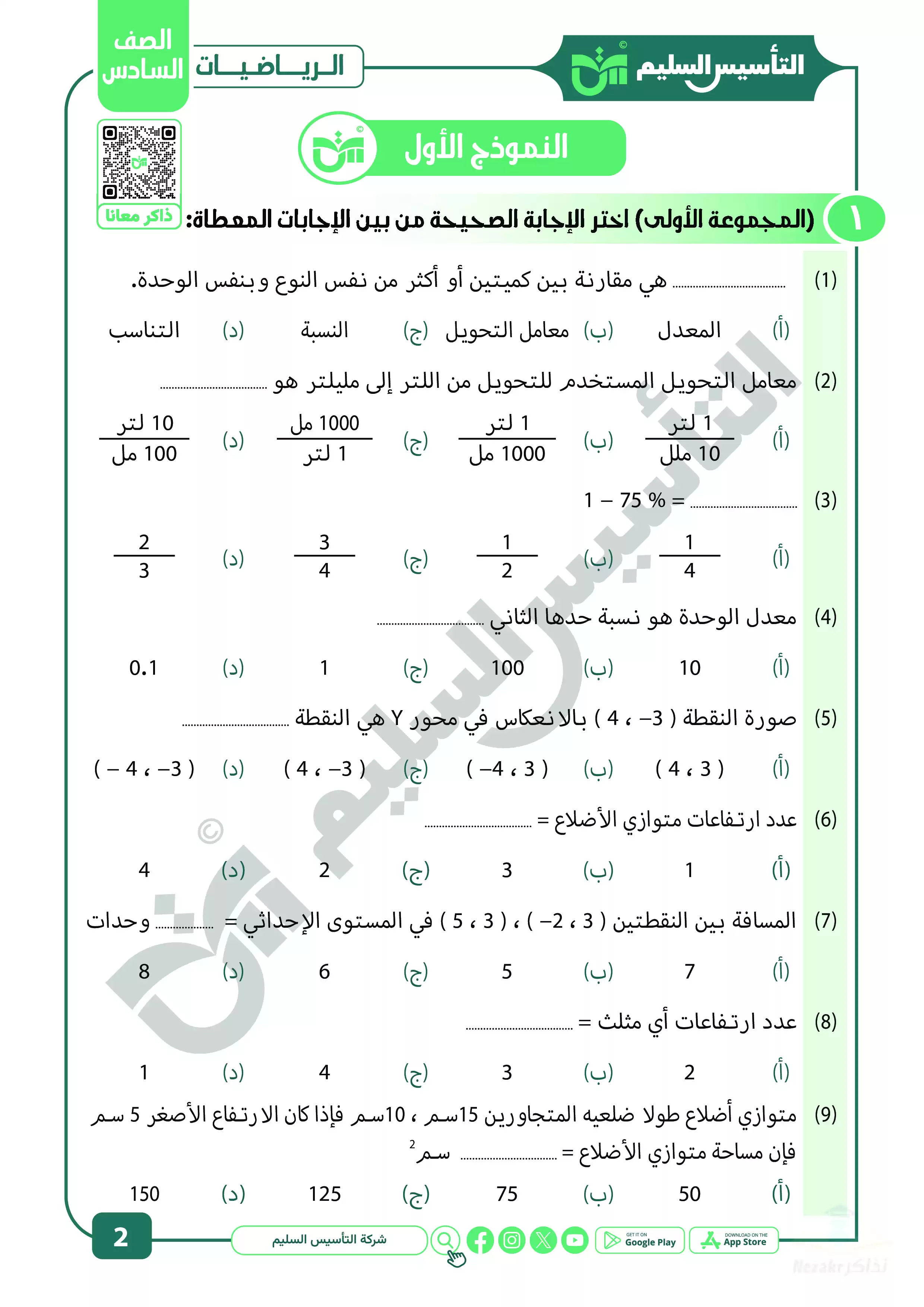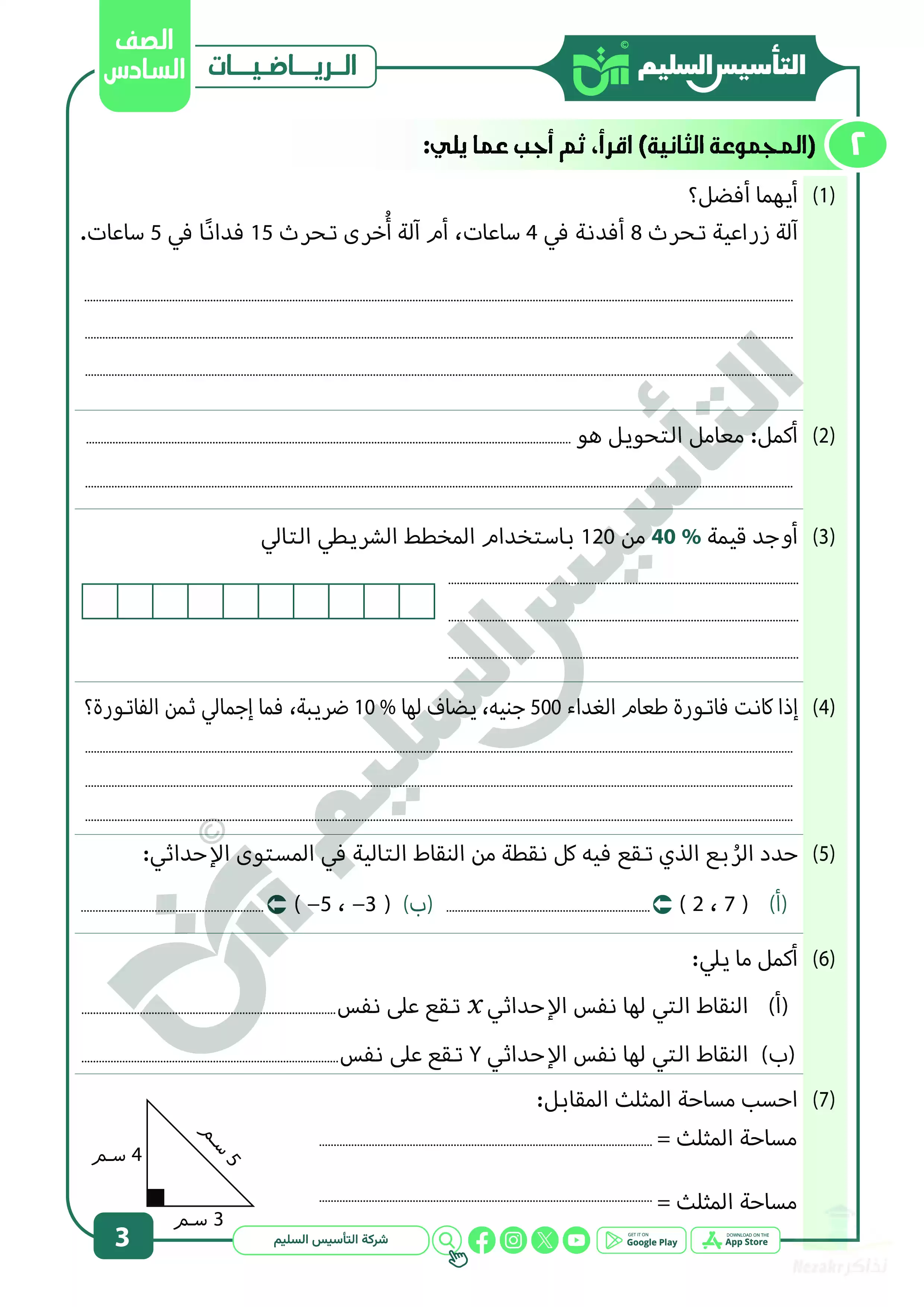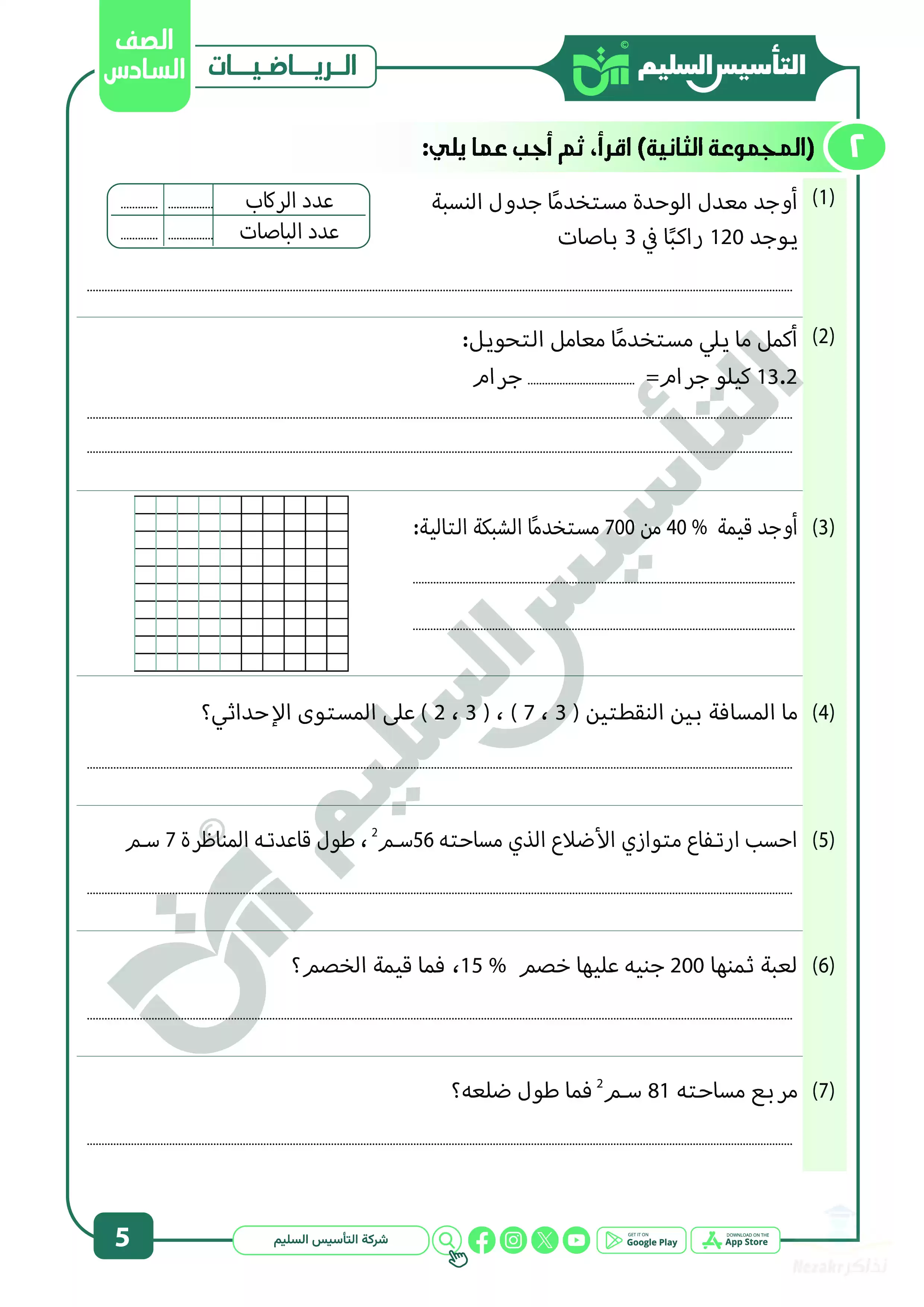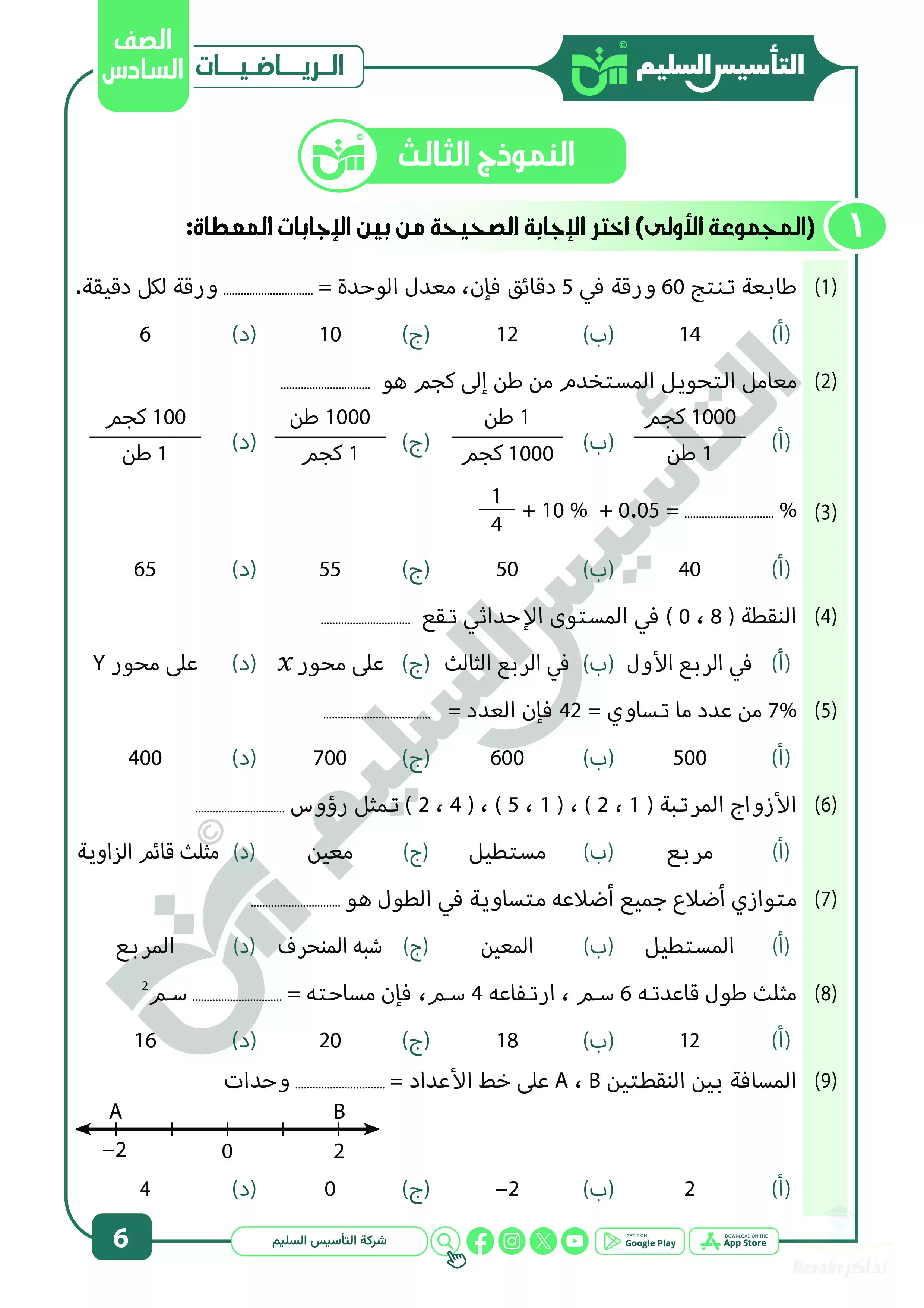 | بيانات الملف: (مراجعة شهر ابريل في الرياضيات للصف السادس الابتدائي من التأسيس السليم - Nezakr) | |
