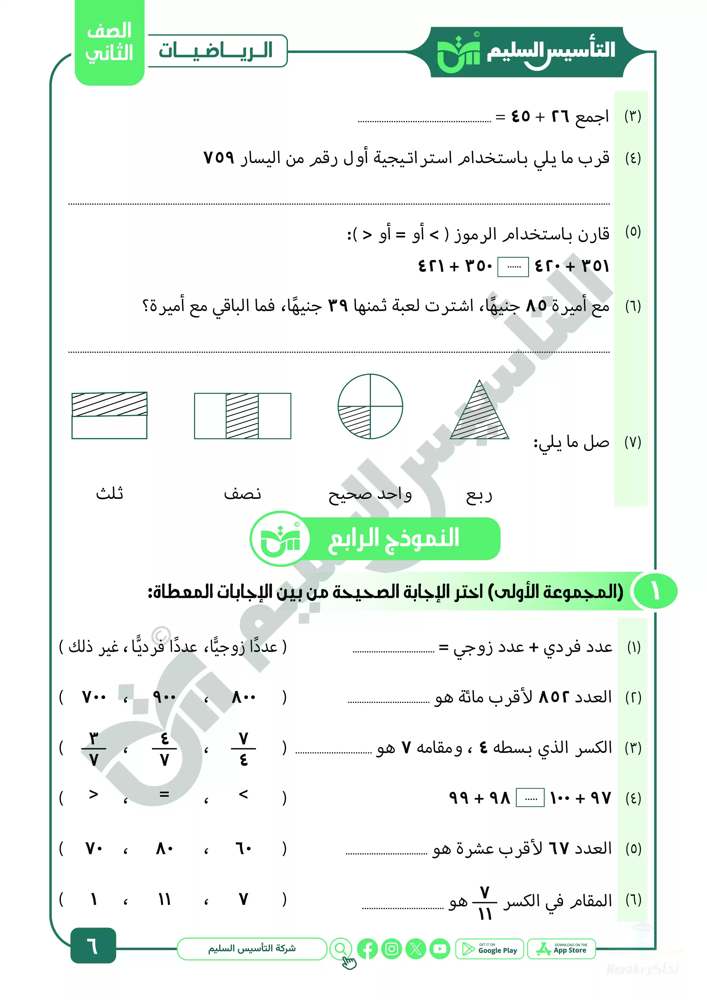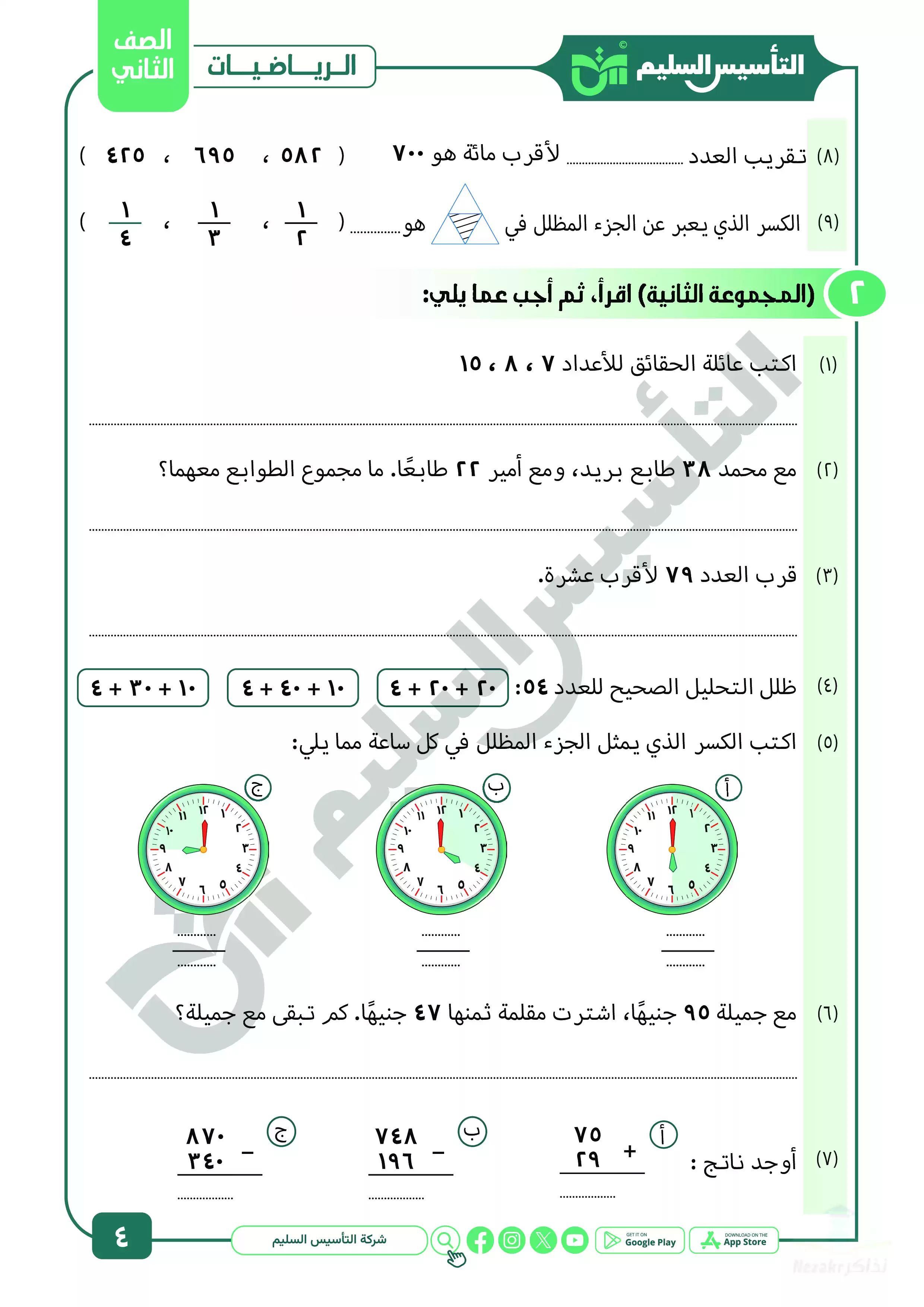 | بيانات الملف: (مراجعة شهر ابريل في الرياضيات للصف الثاني الابتدائي من التأسيس السليم - Nezakr) | |