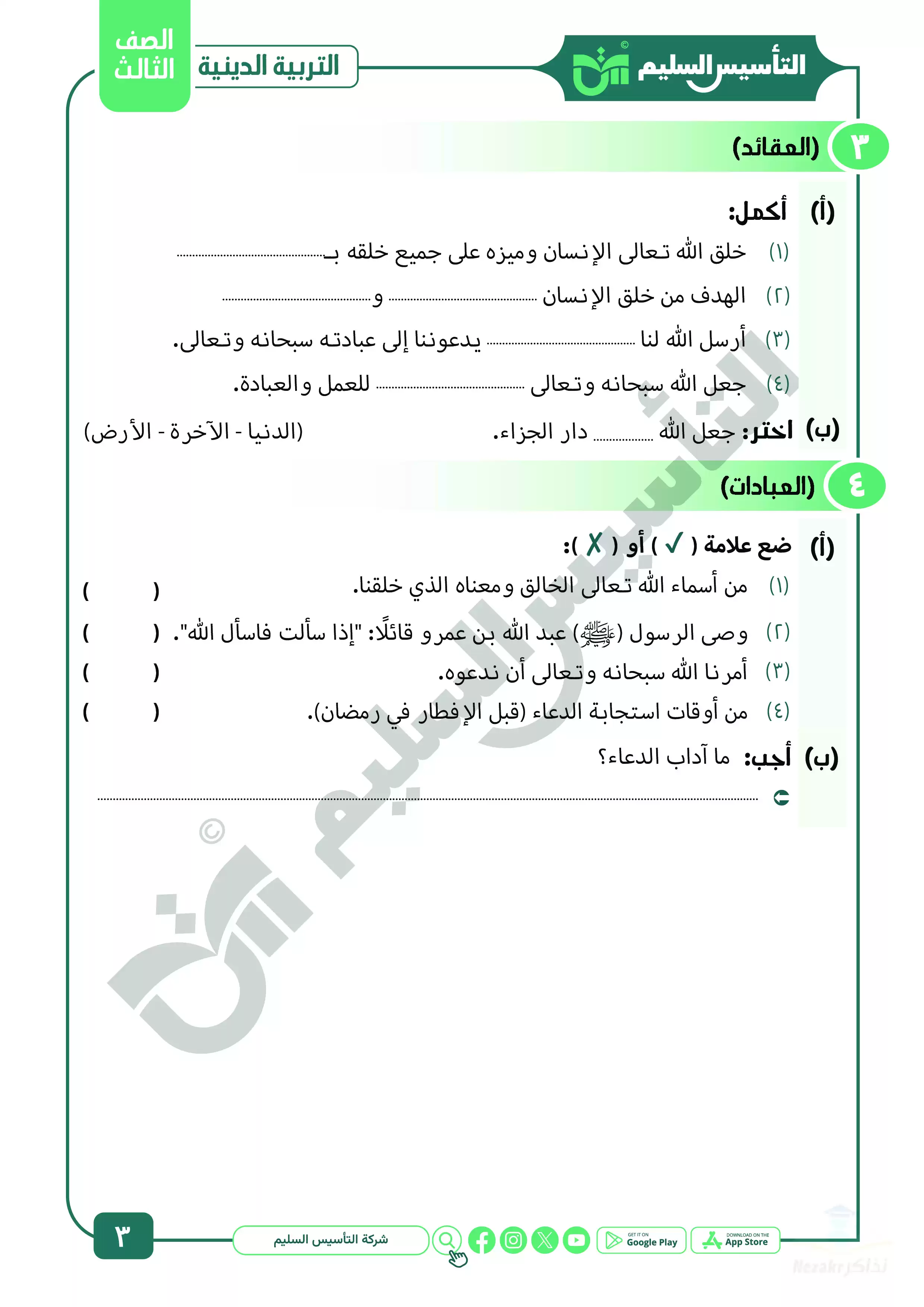 نقدم لكم المزيد من المحتوى من إعداد التأسيس السليم ومقدم إلى الصف الثالث الإبتدائي للإطلاع عليه أو تحميله.