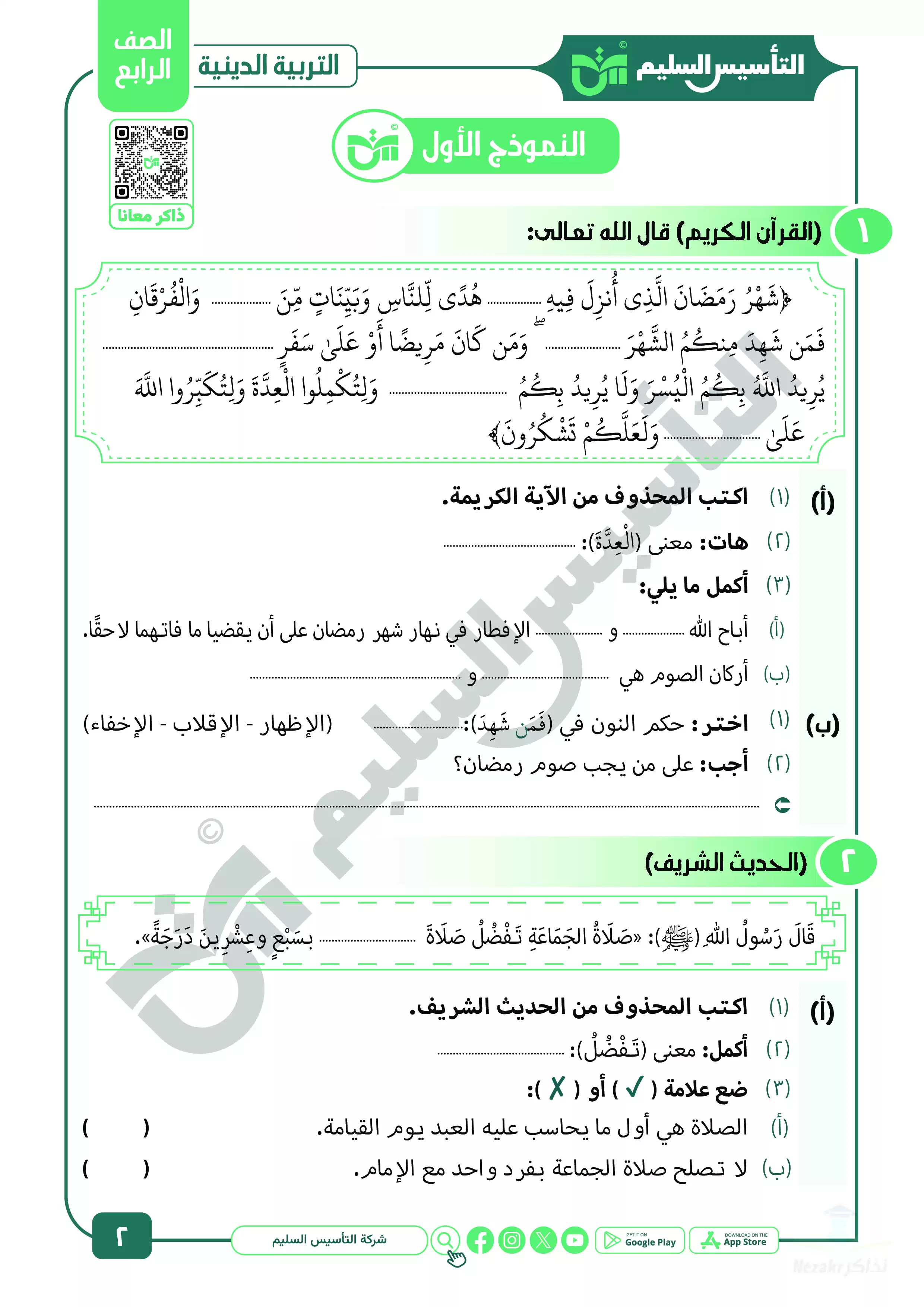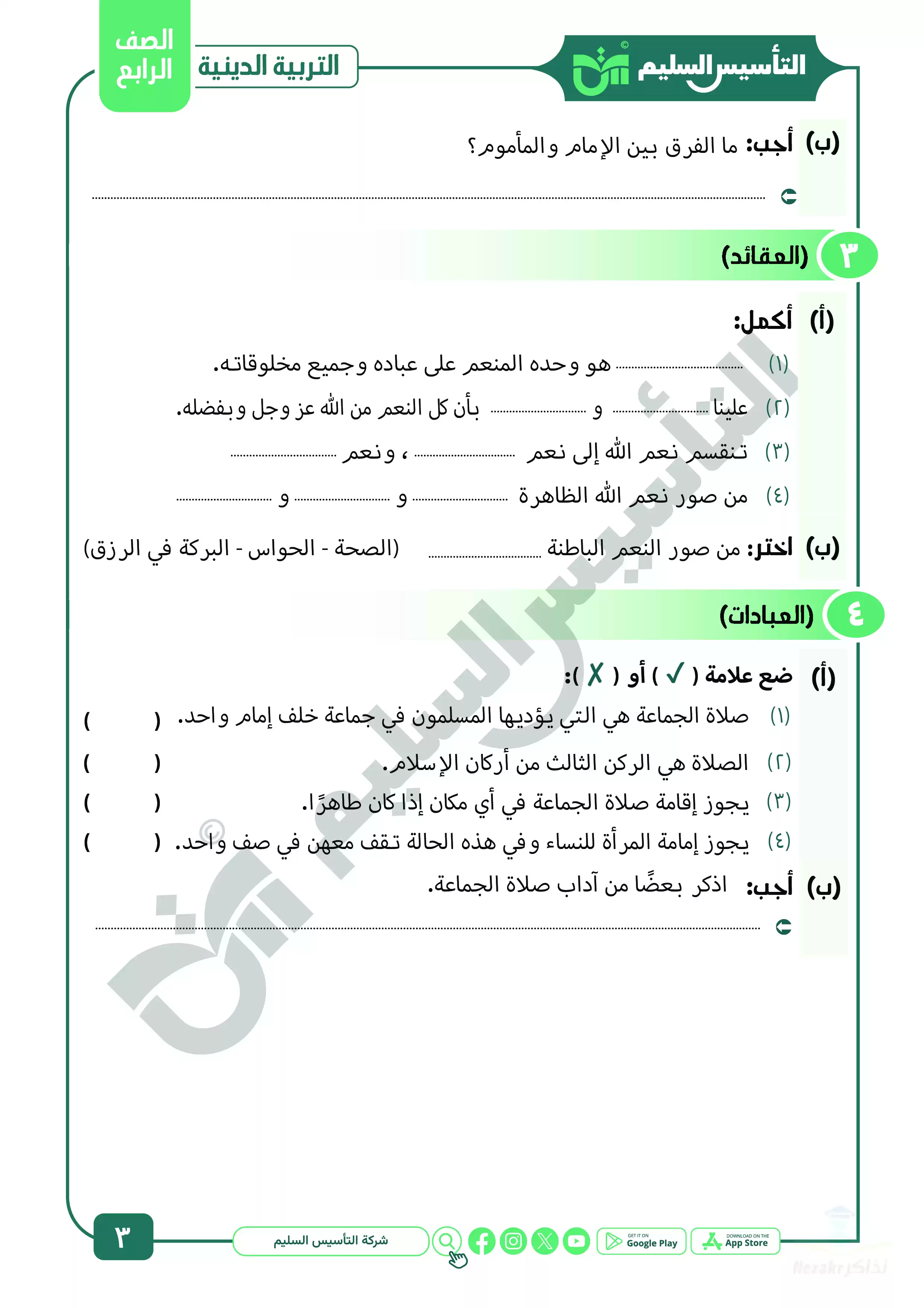 نقدم لكم المزيد من المحتوى من إعداد التأسيس السليم ومقدم إلى الصف الرابع الإبتدائي للإطلاع عليه أو تحميله.