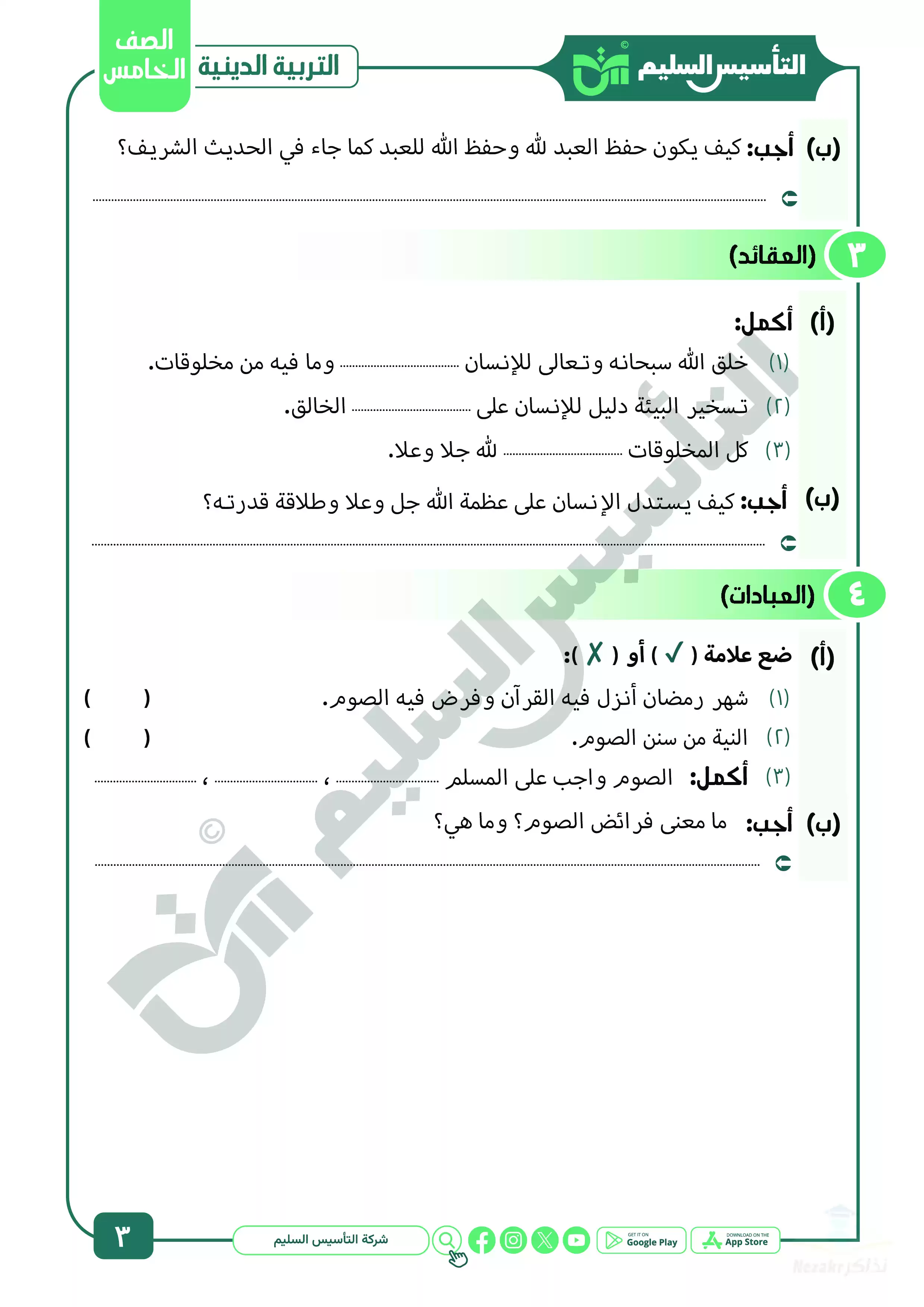 صفحة 3 من 39 صفحة من ملف: مراجعة شهر ابريل في التربية الدينية للصف الخامس الابتدائي من التأسيس السليم - Nezakr